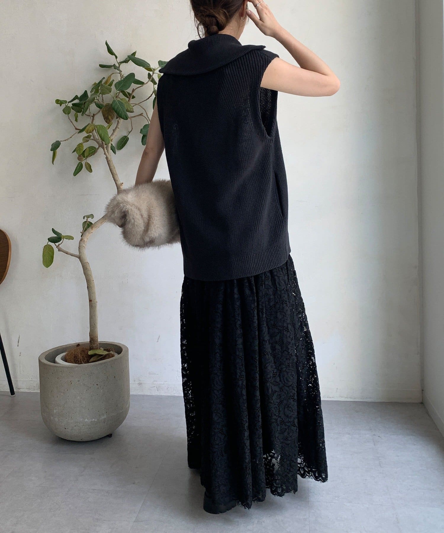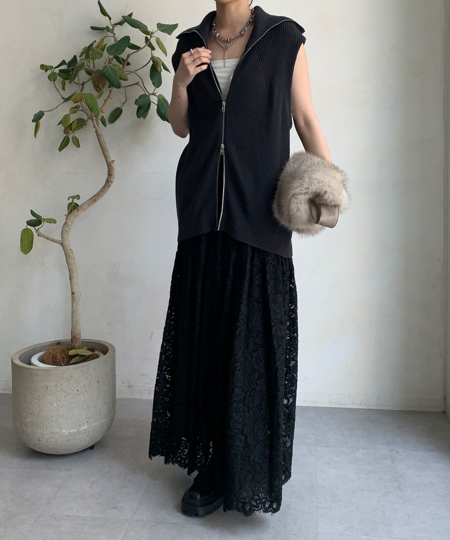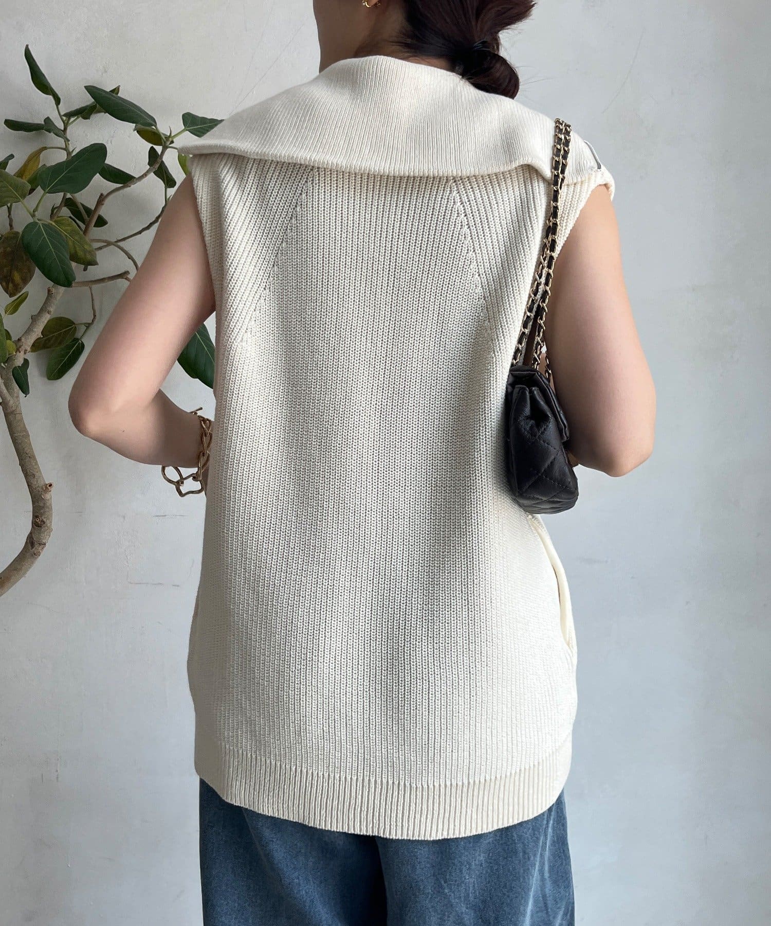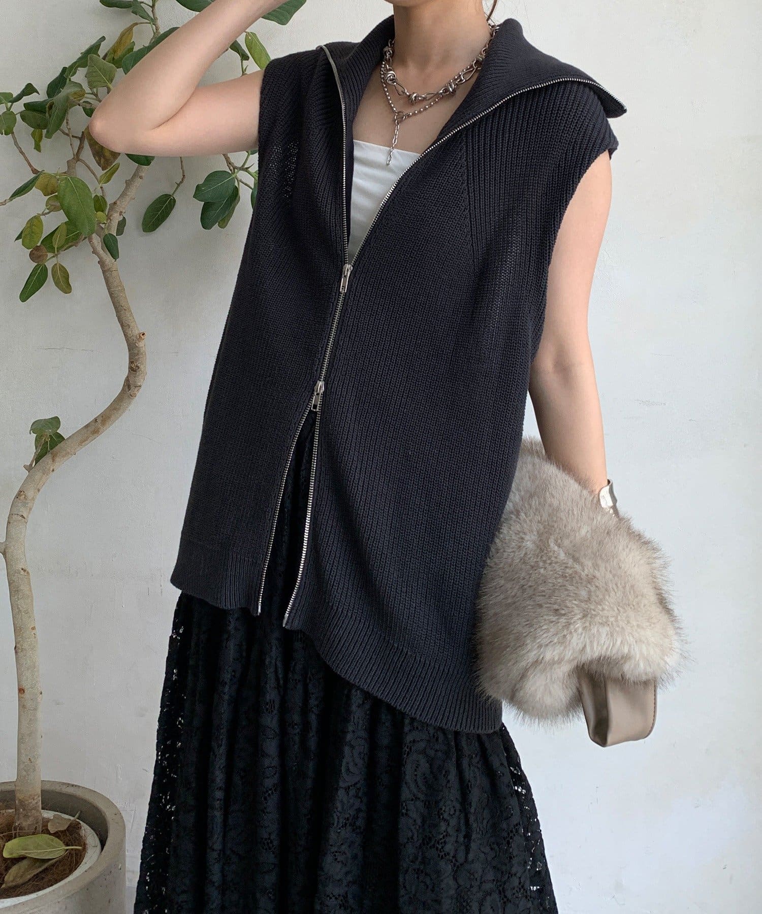 DOUDOU(ドゥドゥ) 【WEB限定】畦編みジップニットベスト