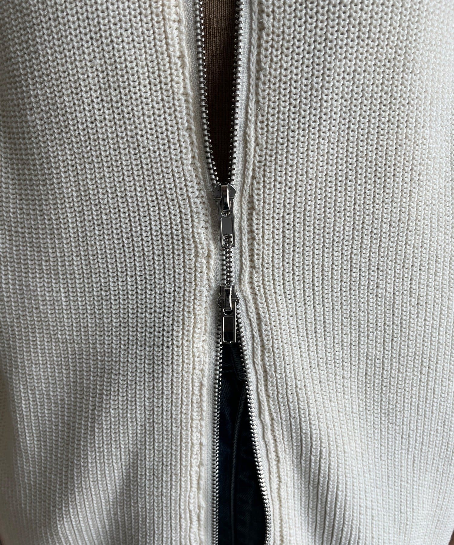シンプルなデザインながらも、フロントジップがアクセントになり、着こなしにエッジを効かせてくれます。