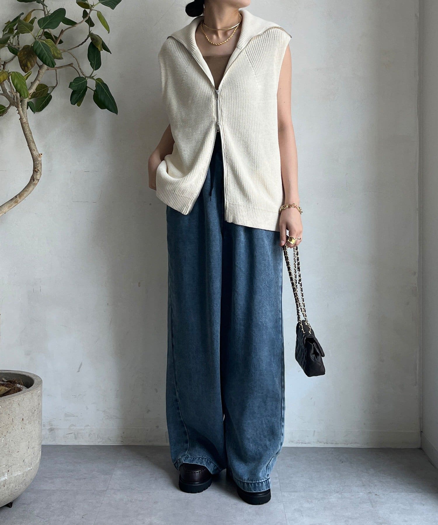 こなれ感UP!大人のカジュアルスタイルを格上げするニットジップアップベスト