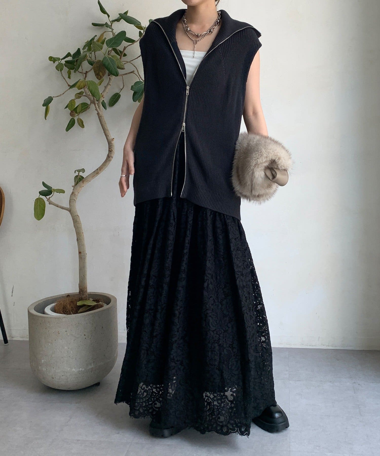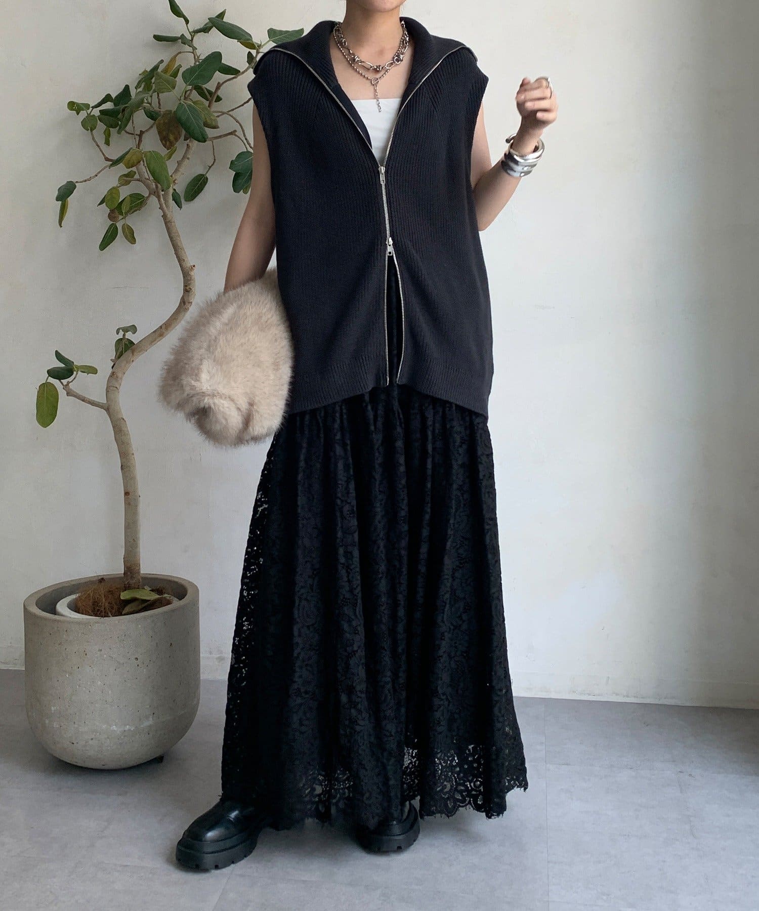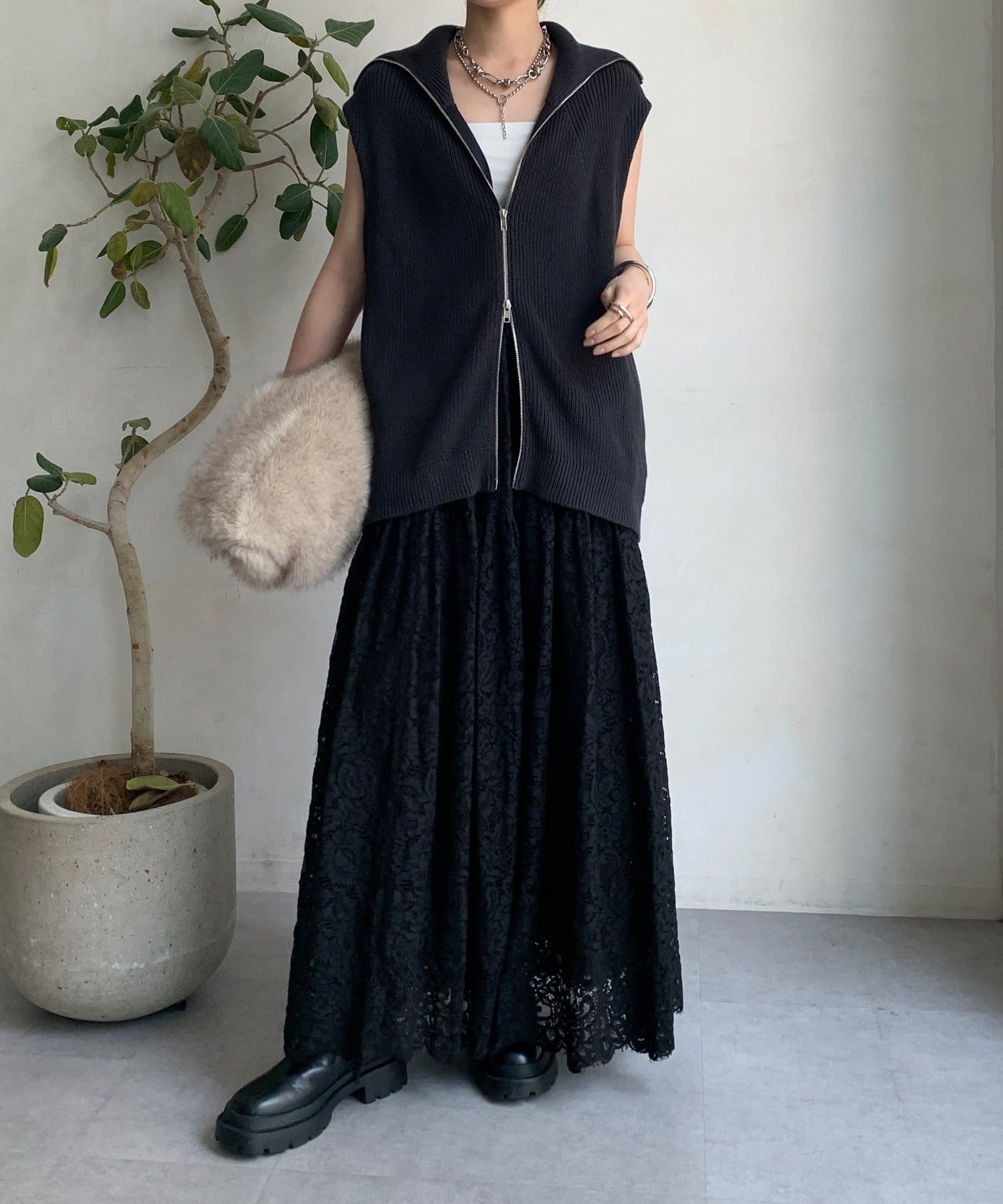 いつものコーデにプラスするだけで、旬なレイヤードスタイルが完成するニットジップアップベスト。