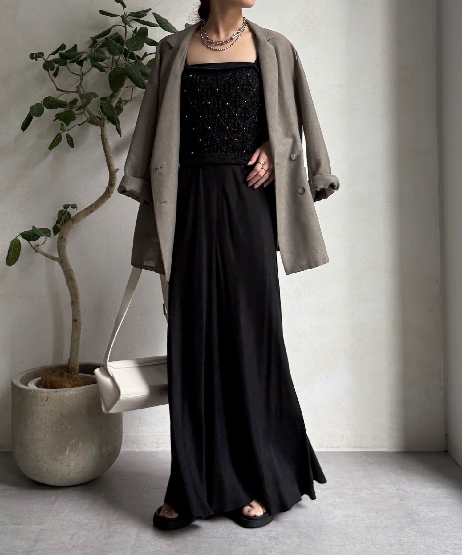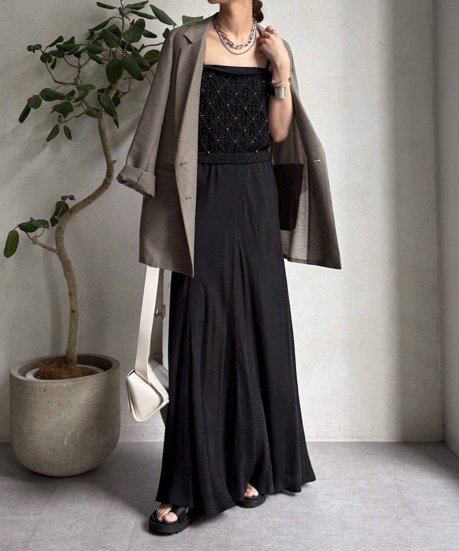 光の加減でさりげなく輝き、パーティーシーンや特別な日にも◎