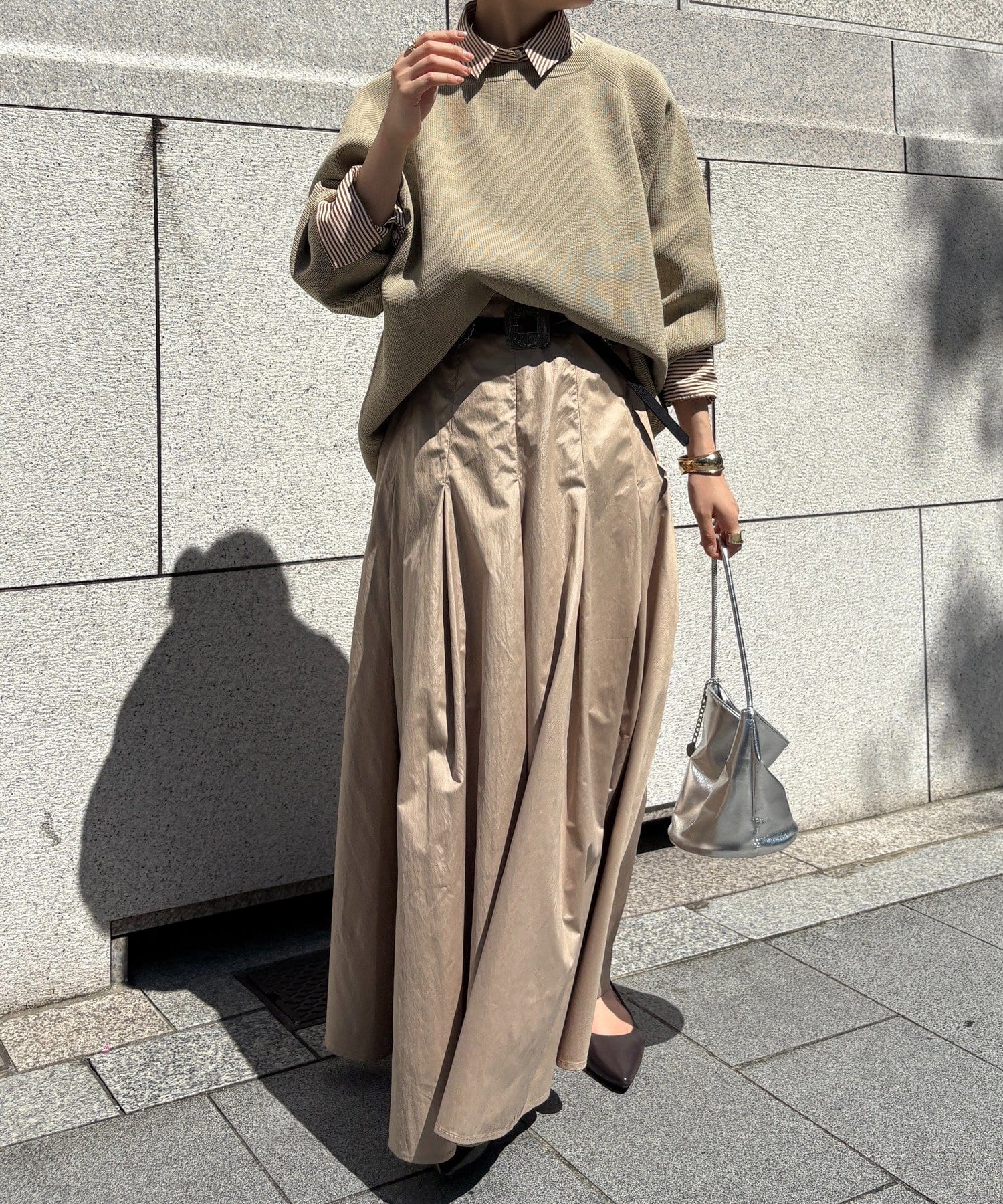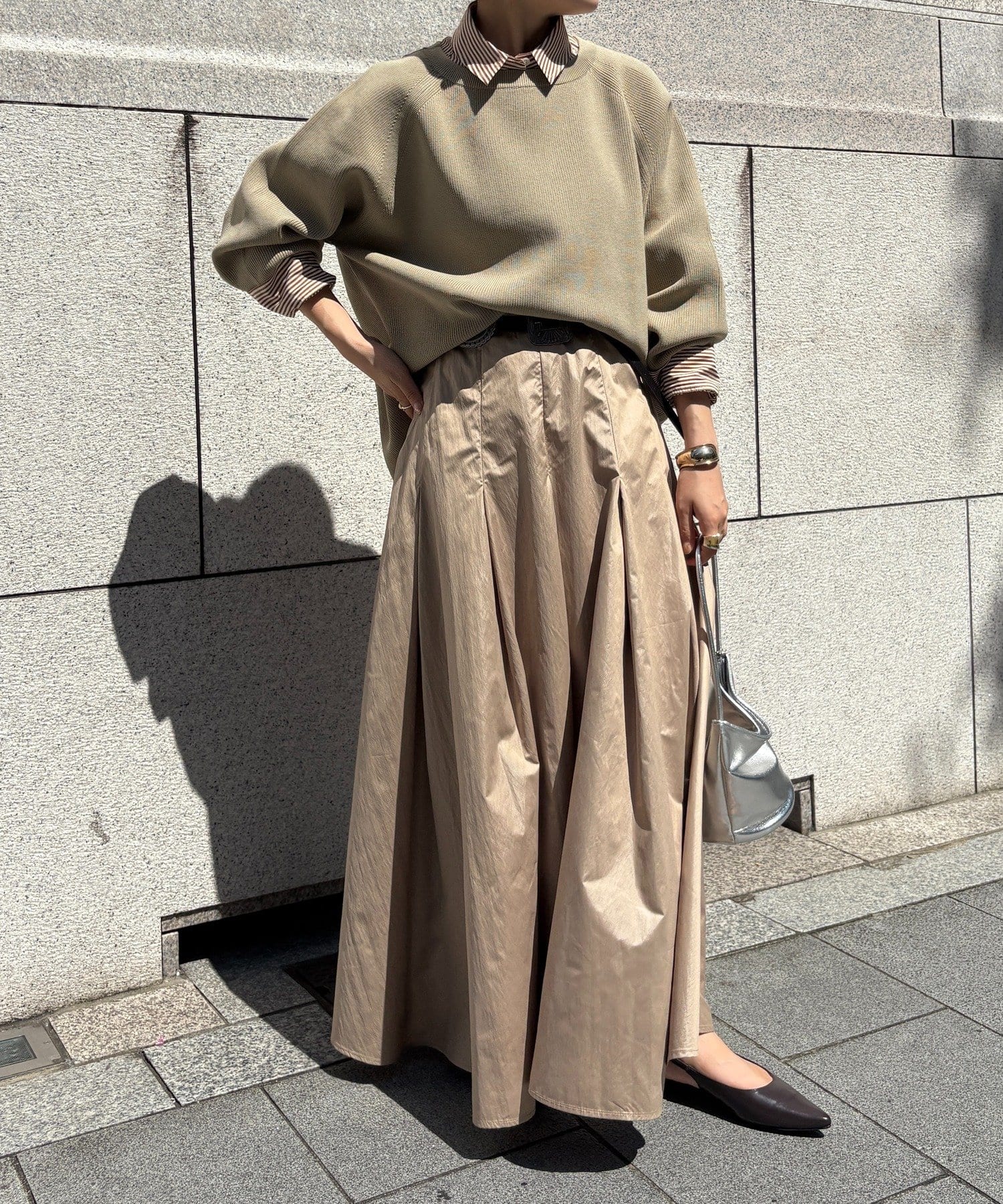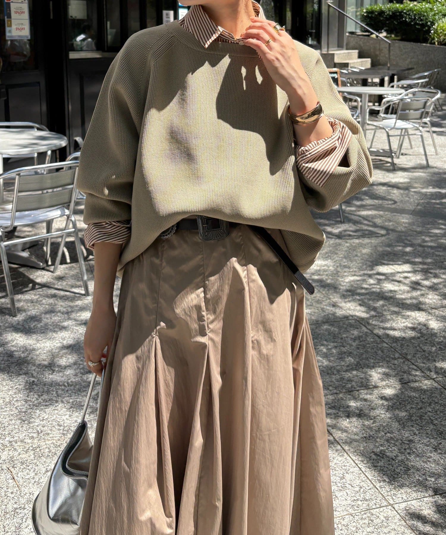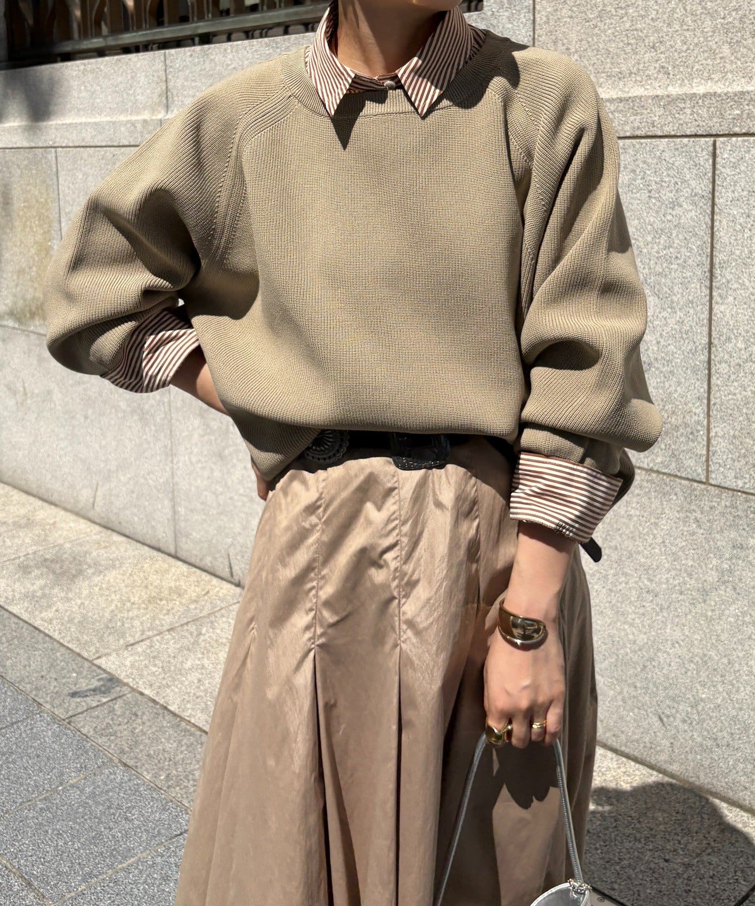 1枚で着るのはもちろん、シンプルなデザインを活かしてシャツや薄手のカットソーを重ねたレイヤードスタイルも素敵ですよ。