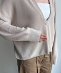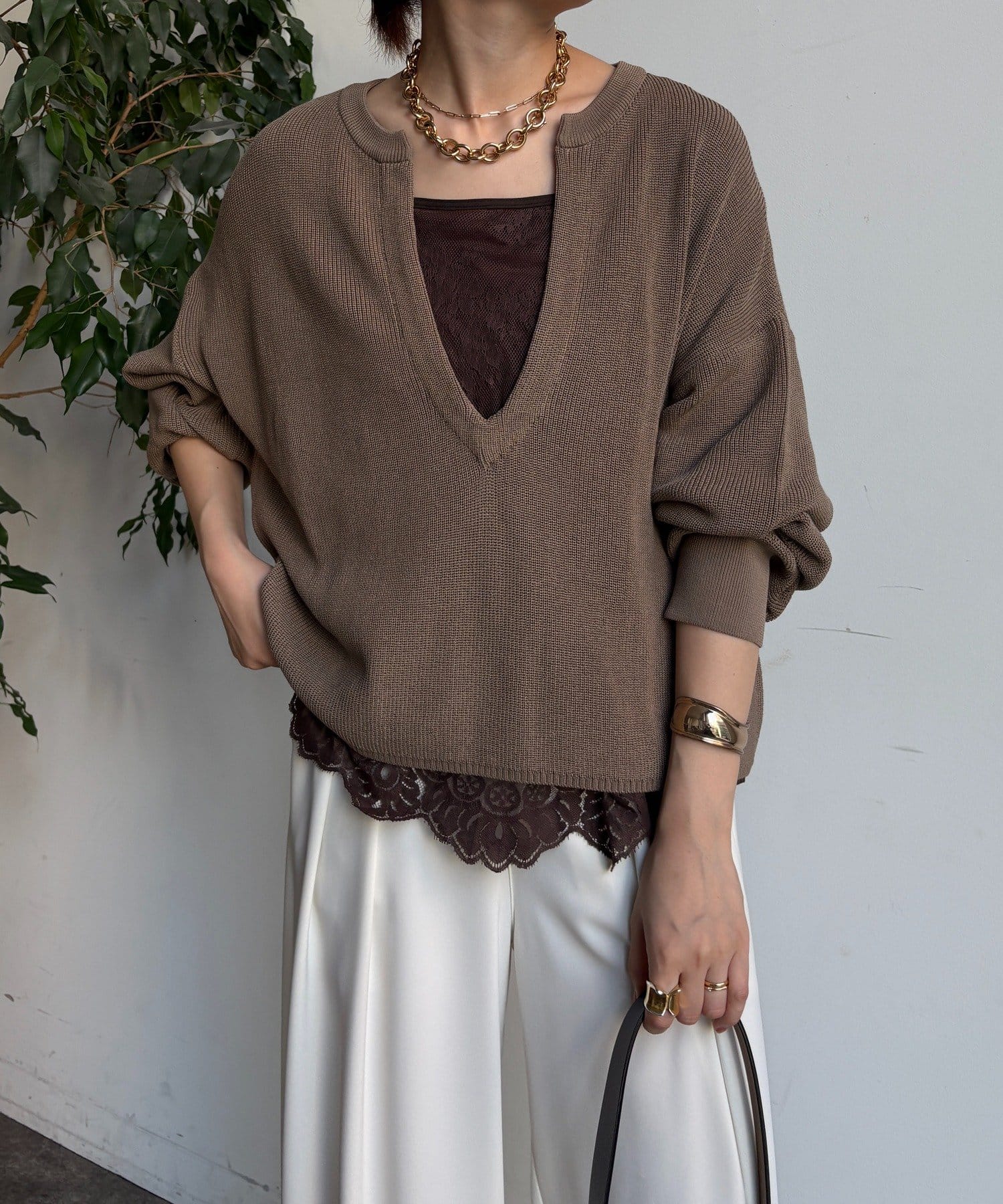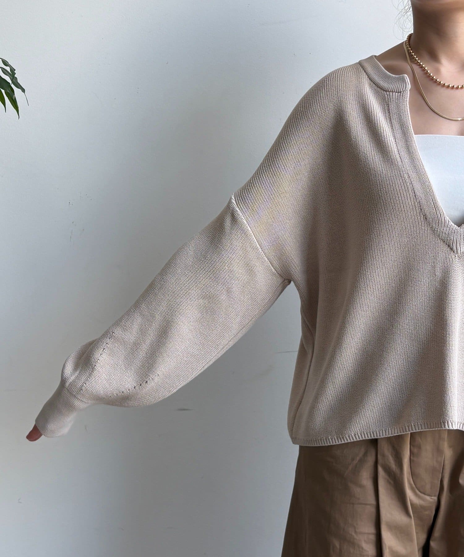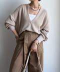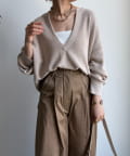 顔周りをすっきりと見せてくれるVネックデザイン。