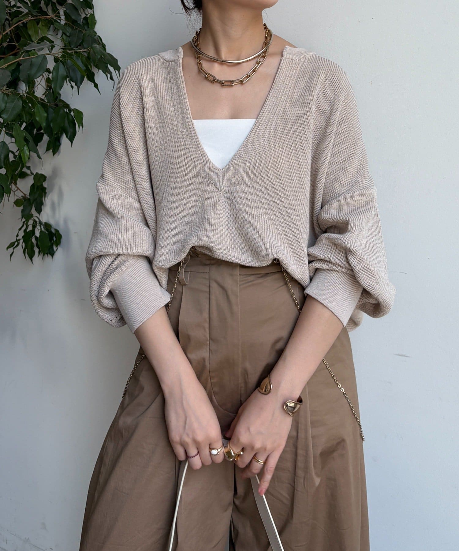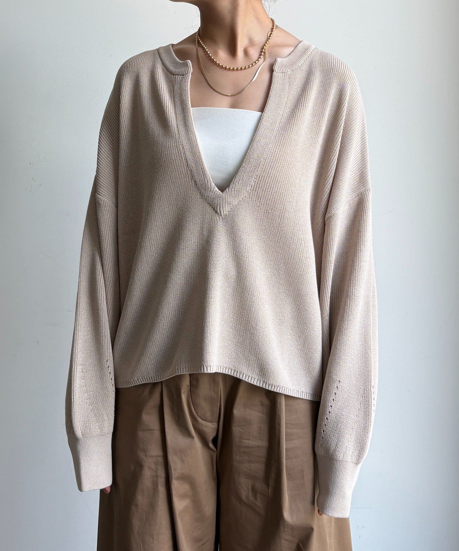 ・Vネックでお顔周りすっきり