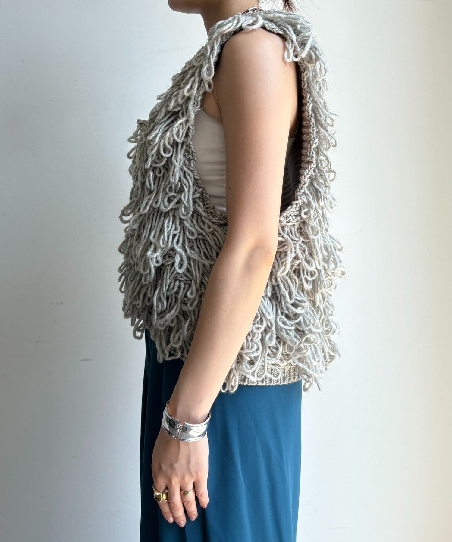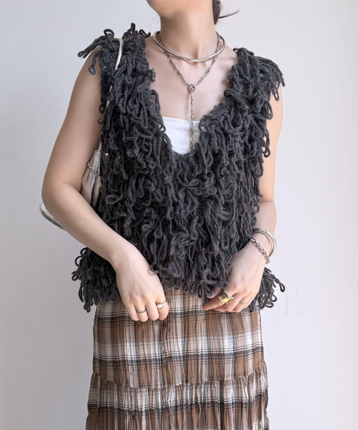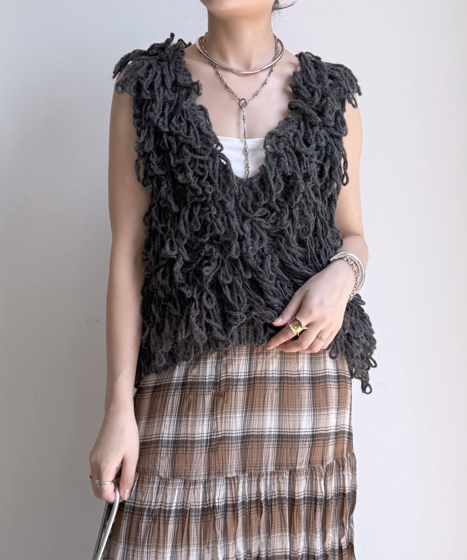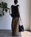 ループ状の生地を贅沢あしらったデザインは、身にまとうだけで華やかに!