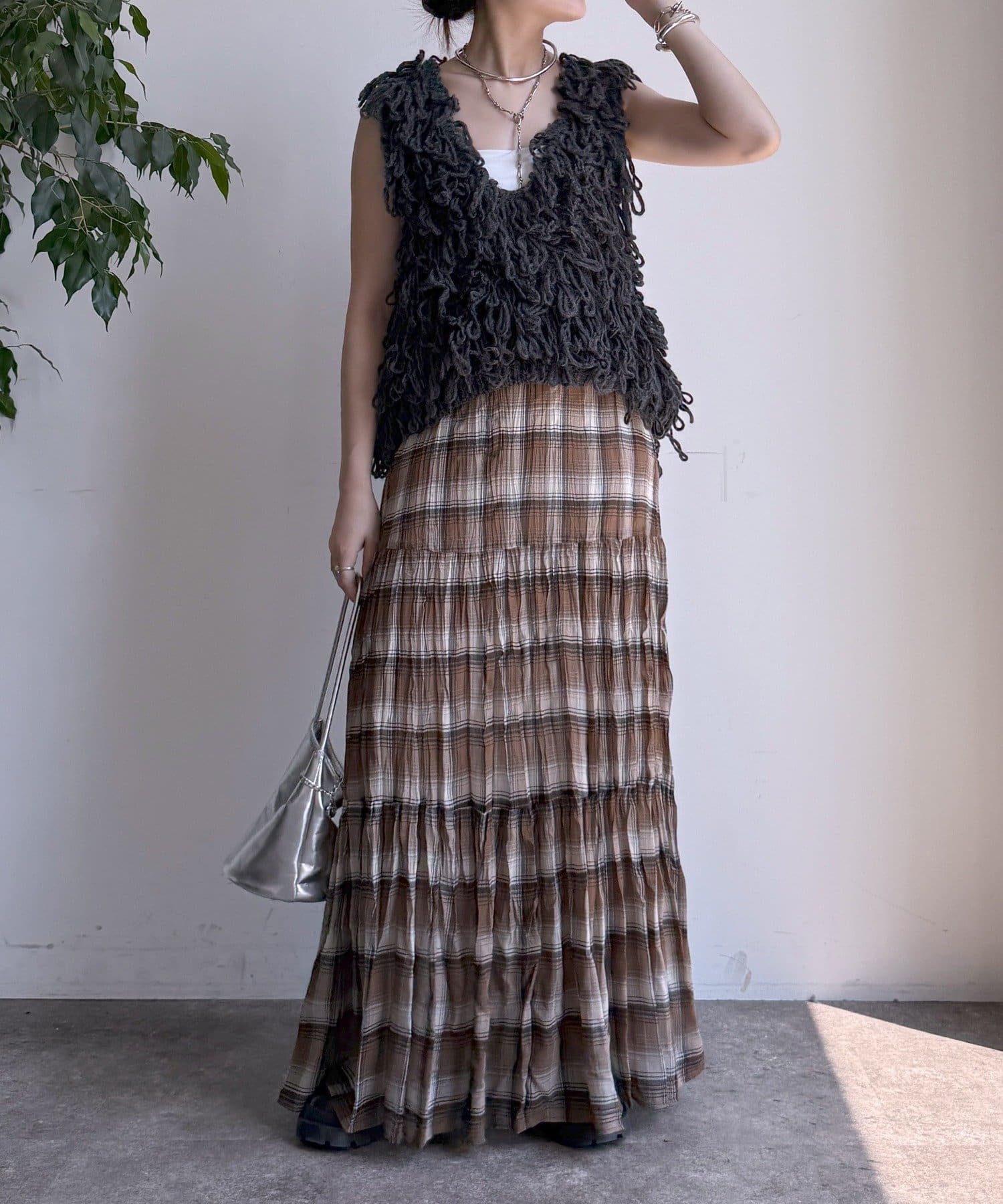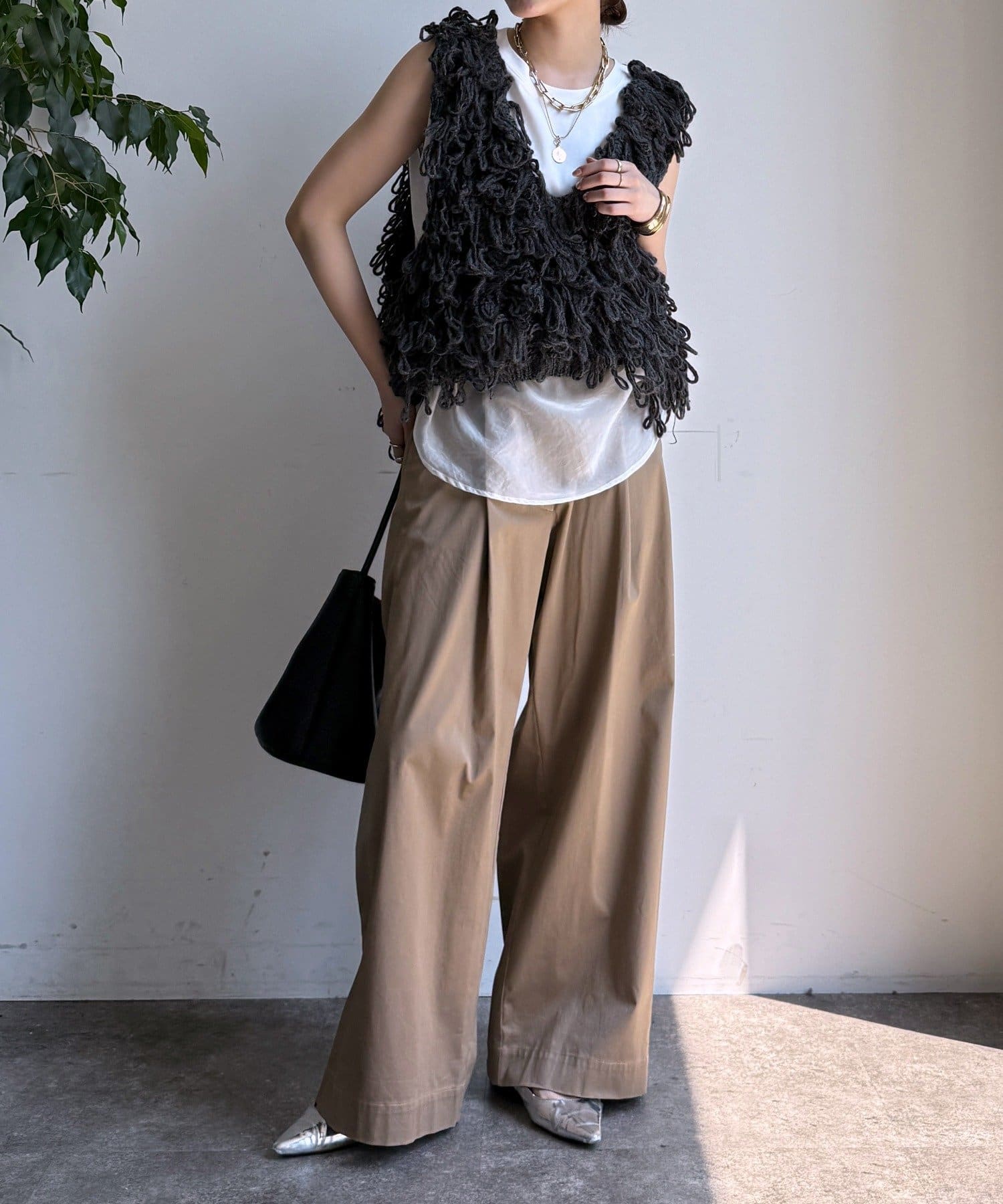 インナー次第で様々な表情を見せてくれるのもこのベストの魅力です◎