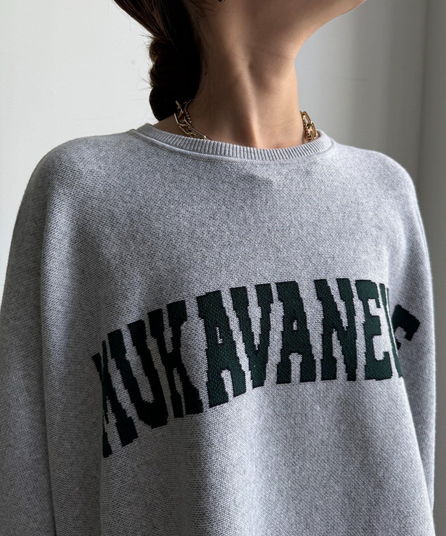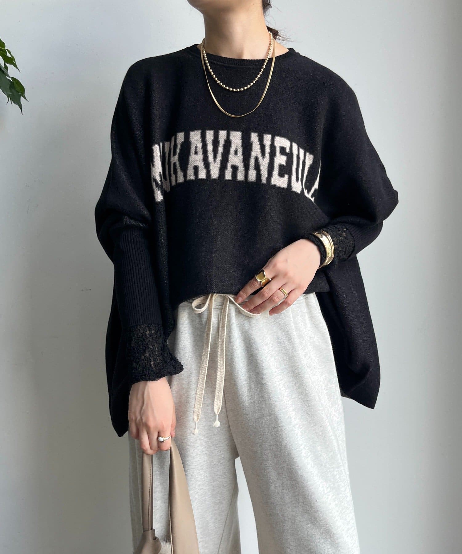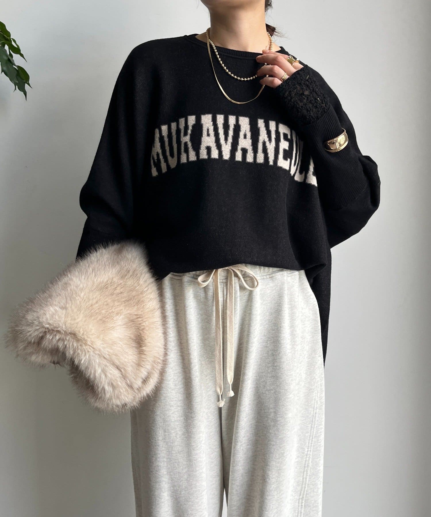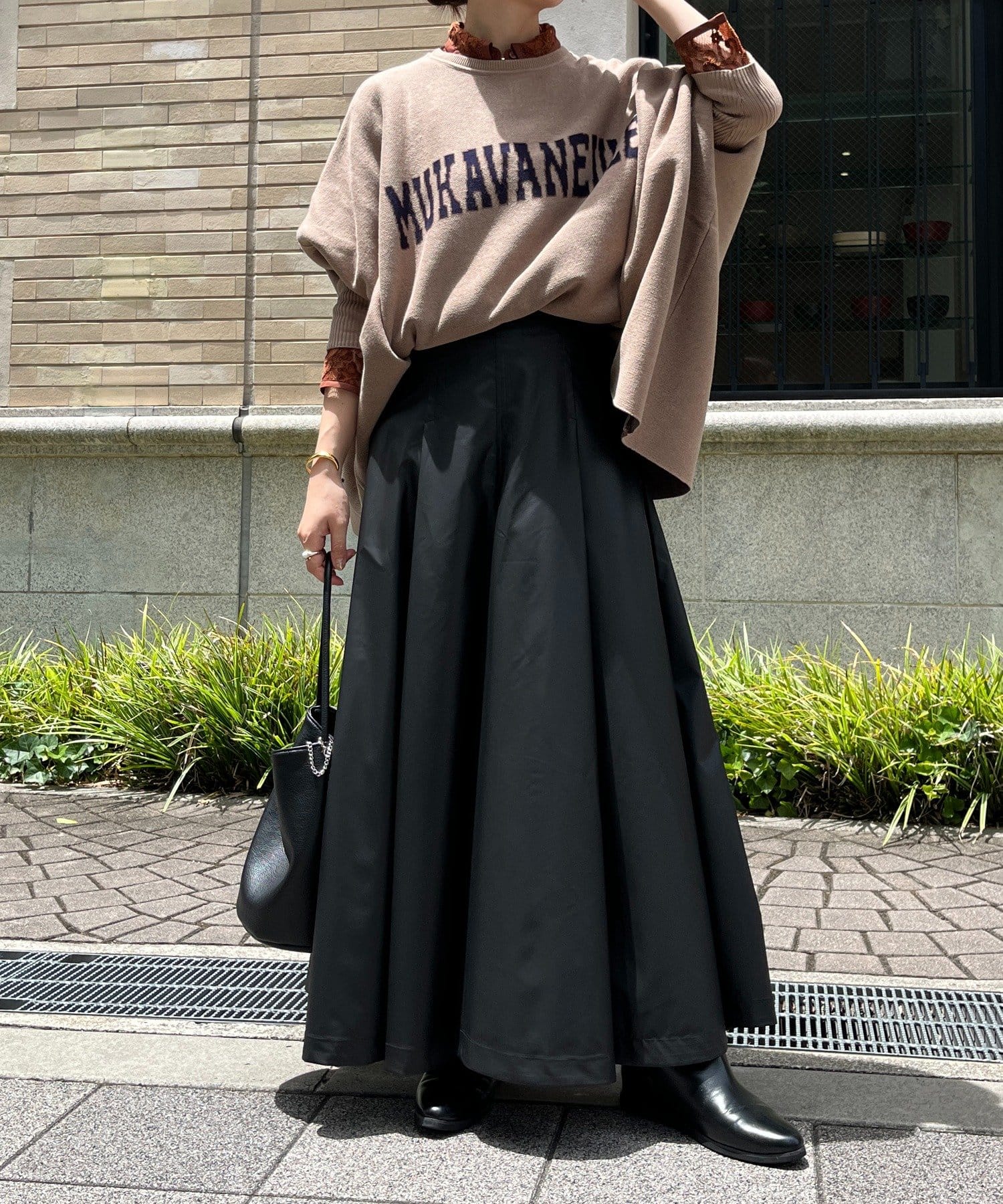 インターシャ編みでコーディネートしやすいニットはスウェットほどカジュアルにはなりすぎず、大人らしく着られるのがポイント。