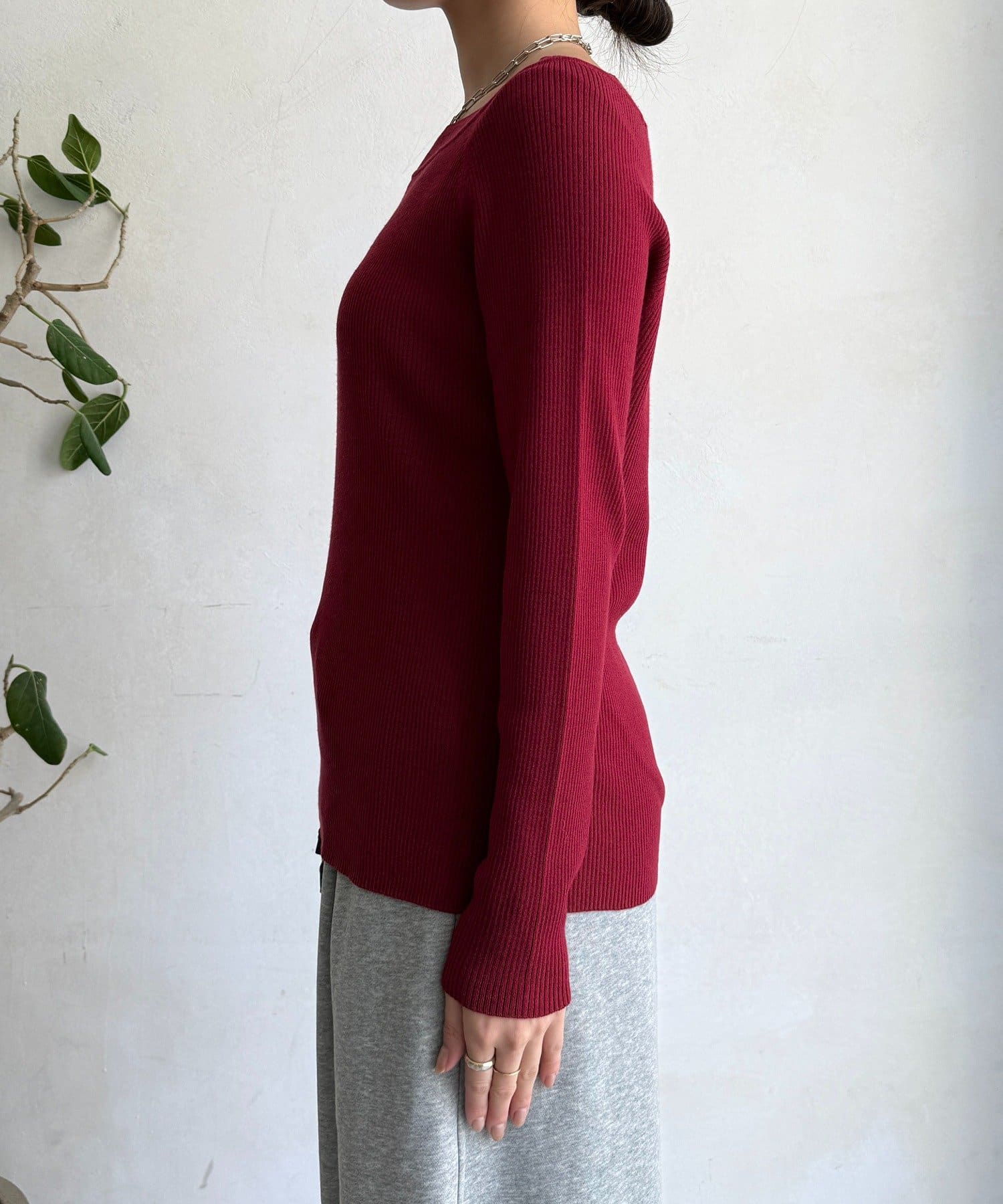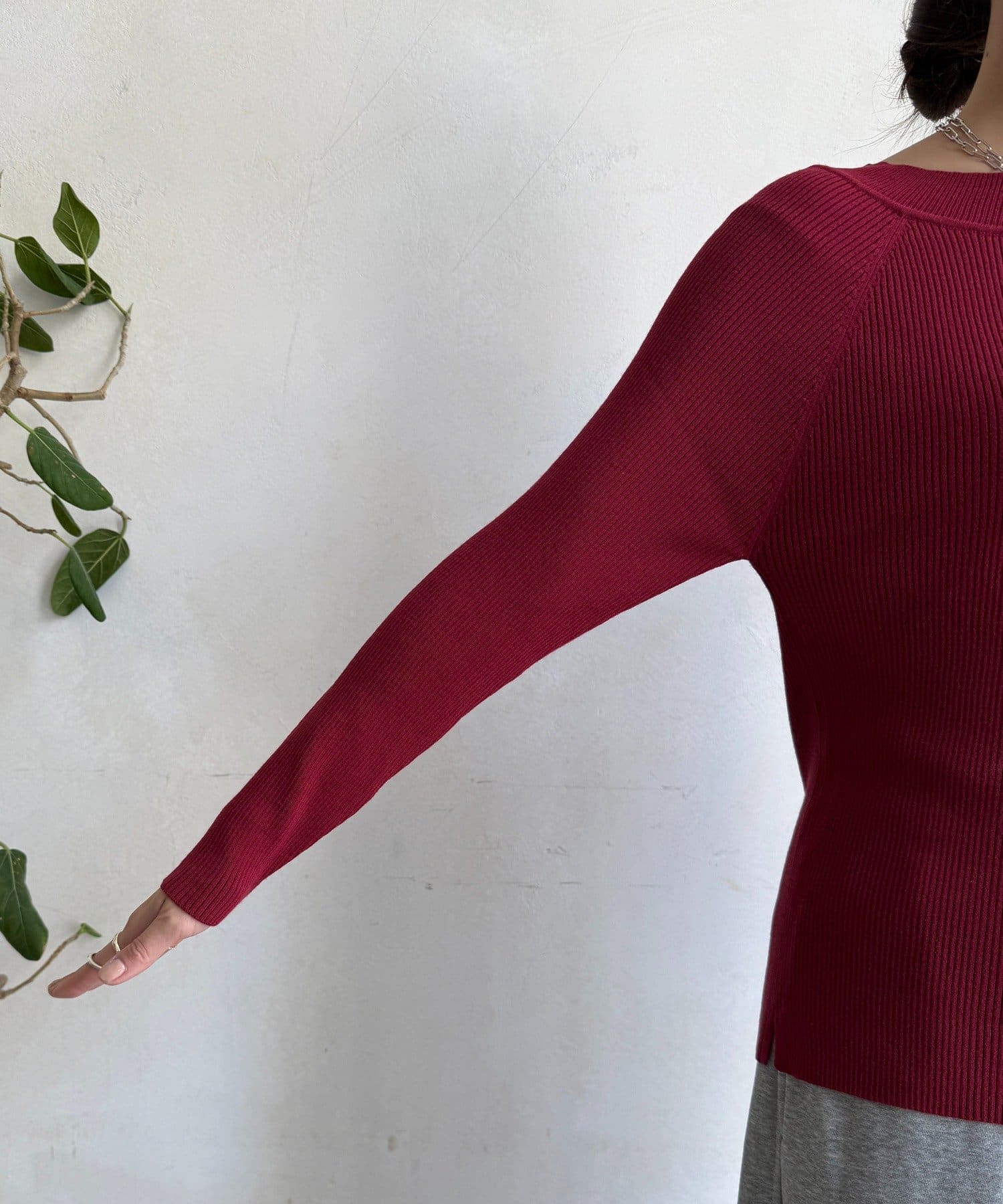 DOUDOU(ドゥドゥ) ボートネックリブニット