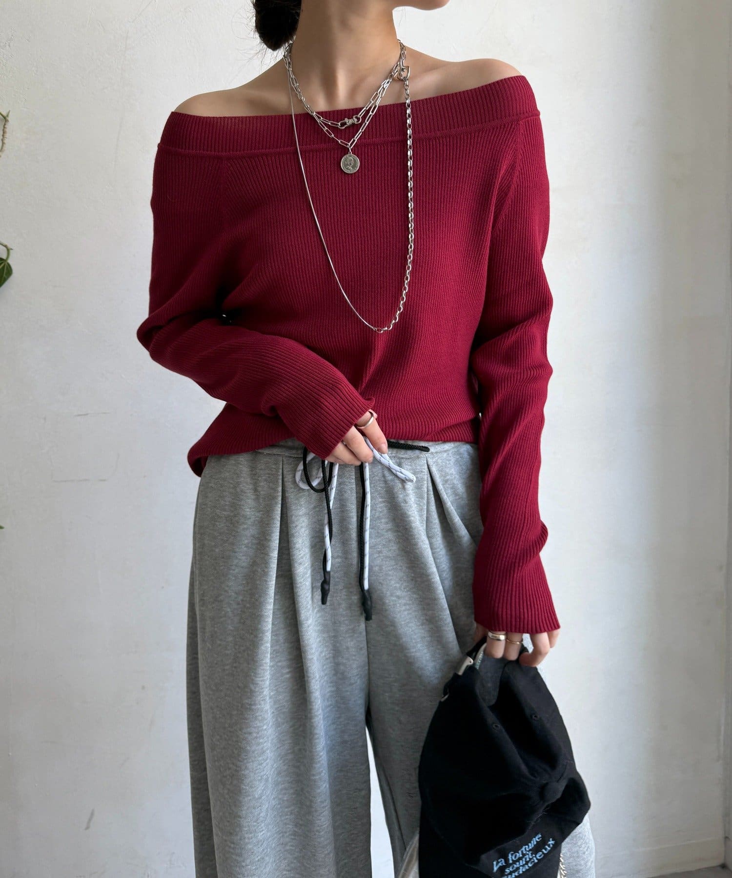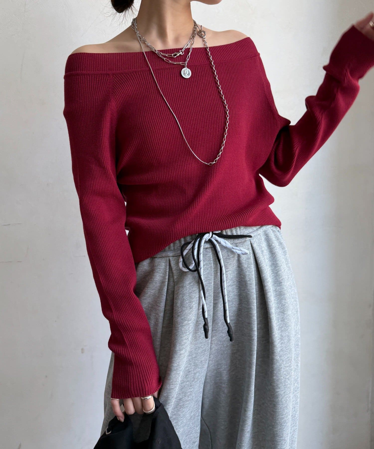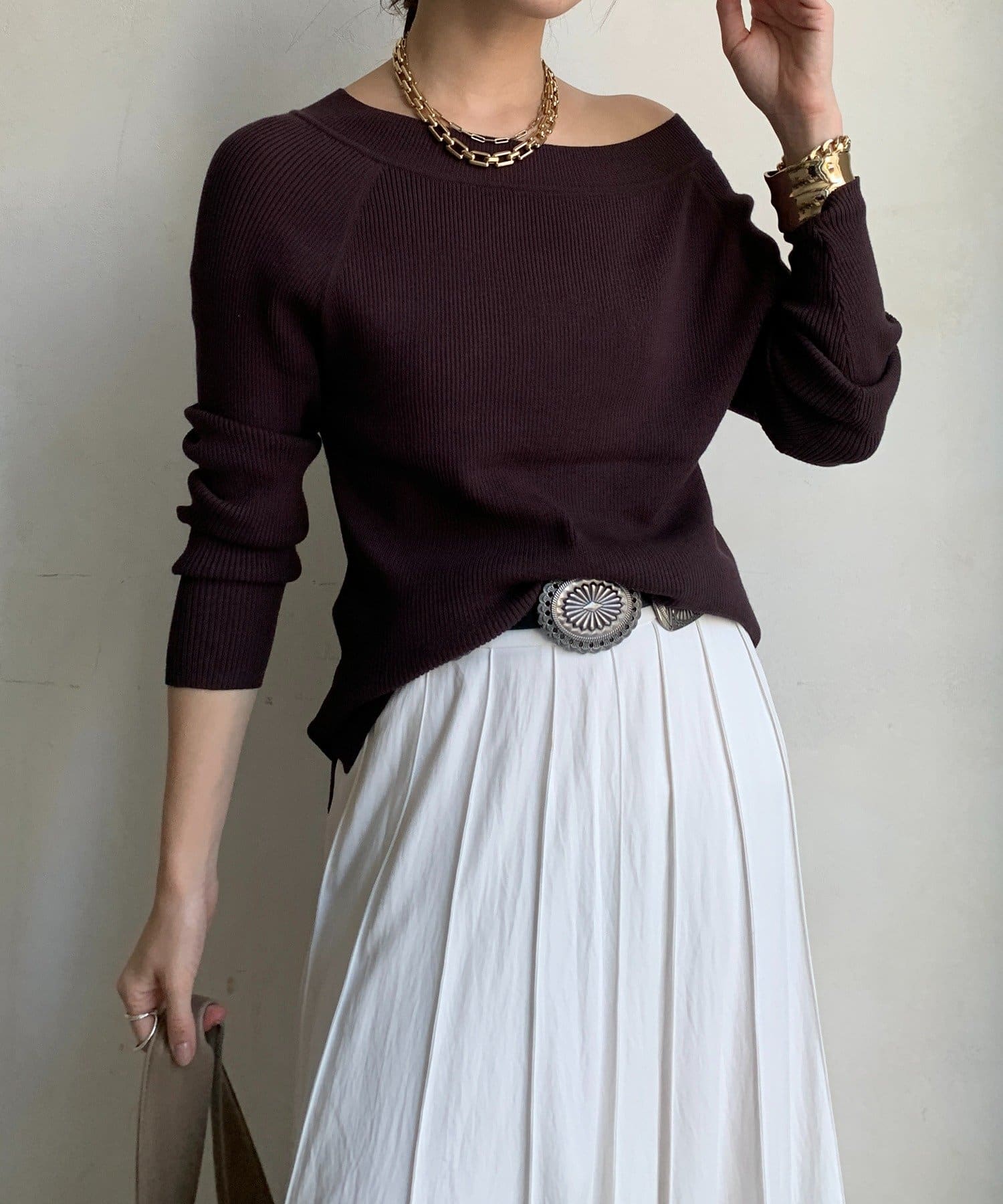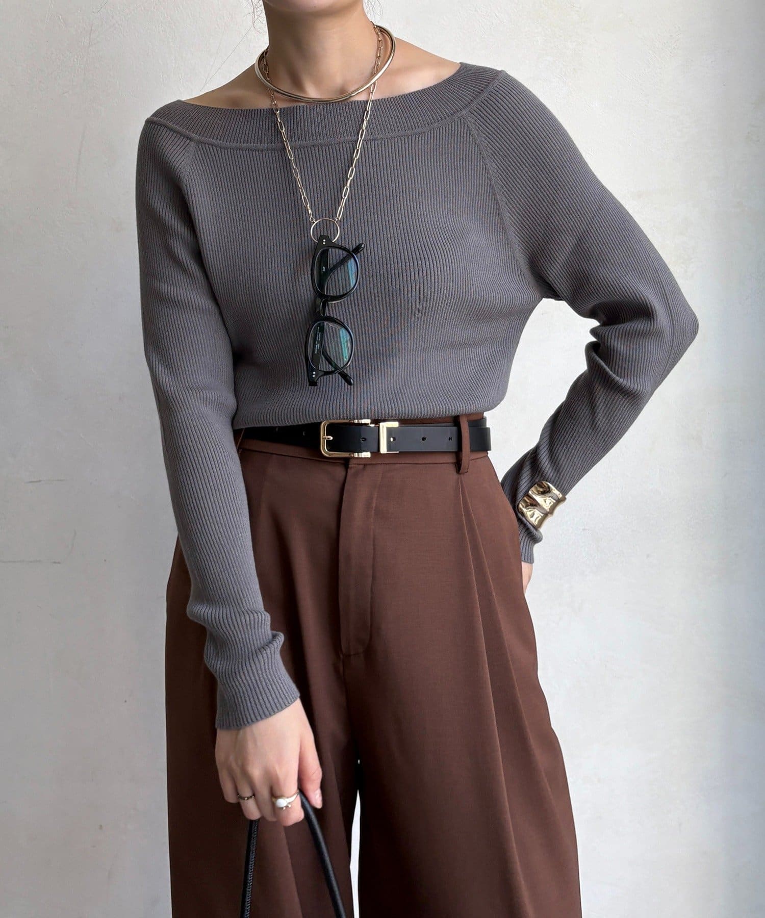 TOP > DOUDOU > レディース > トップス > ニット/セーター > ボートネックリブニット