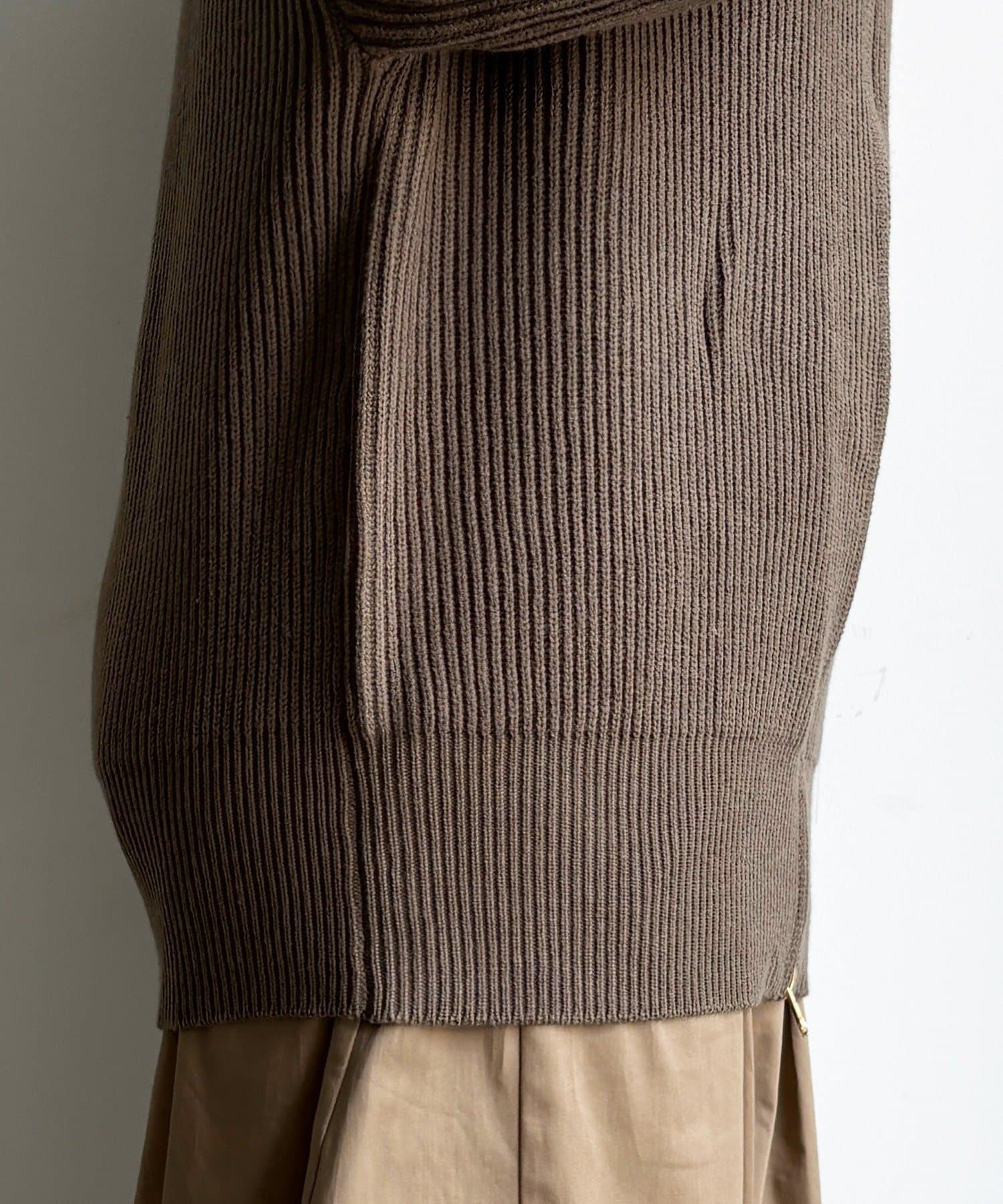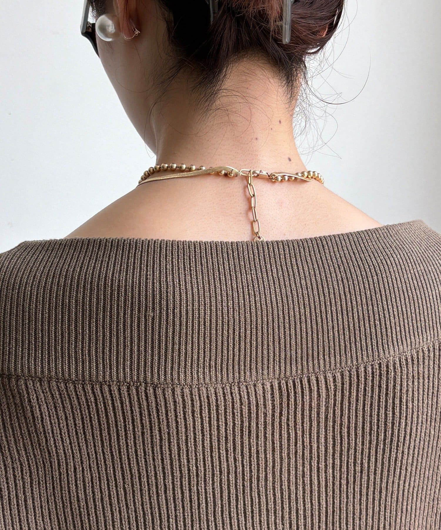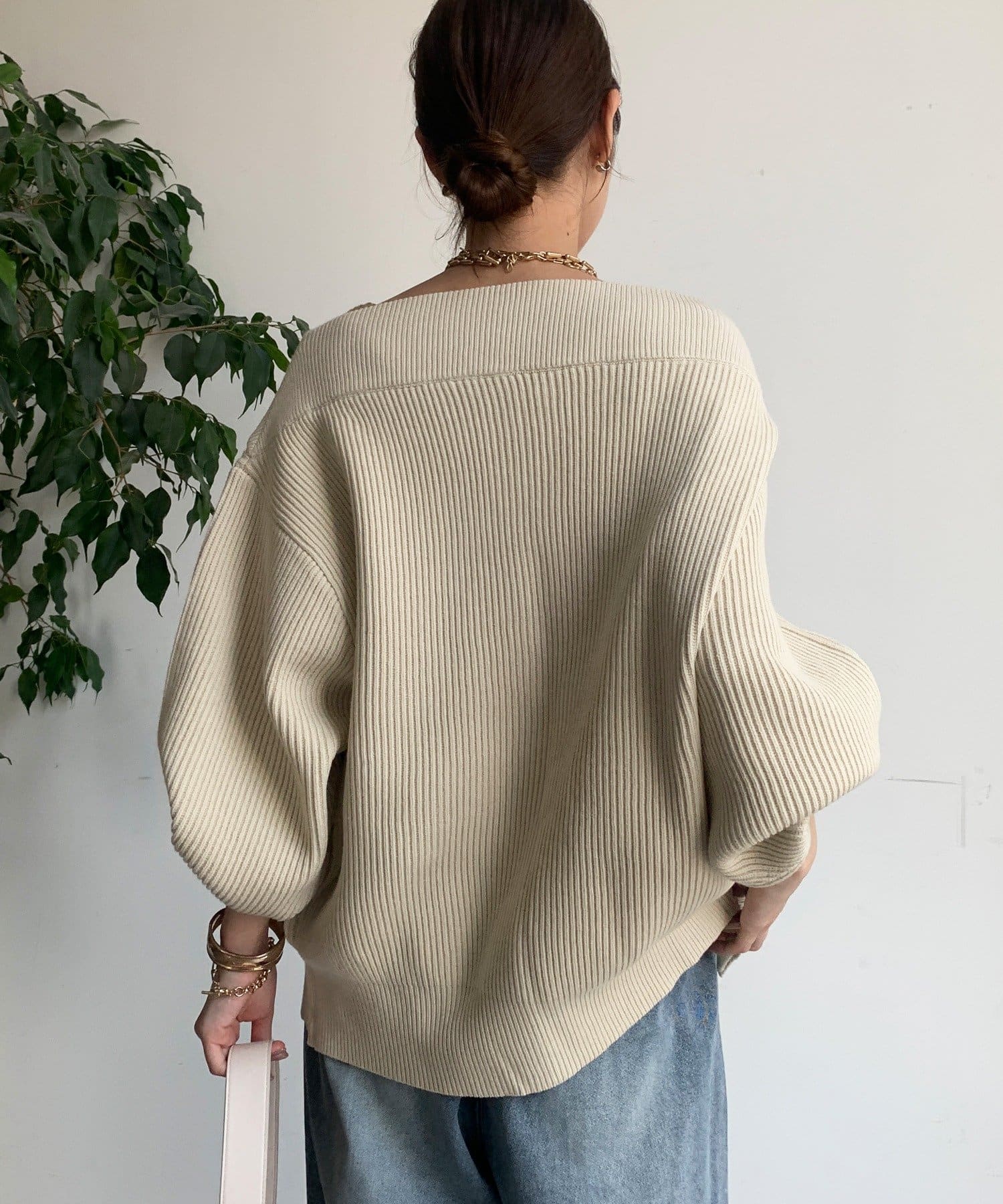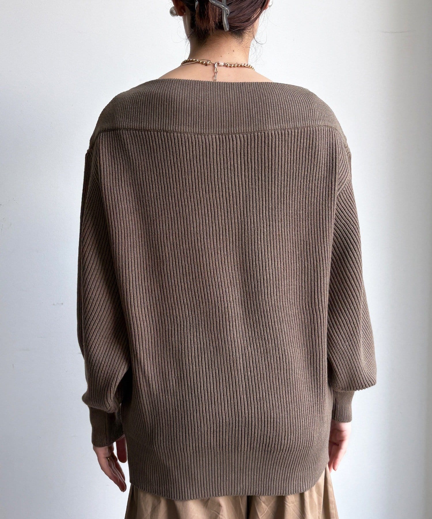フロントにジップのデザインを施した新鮮な1着。ネックラインを広く取っているため、オフショルとして着用していただけます。