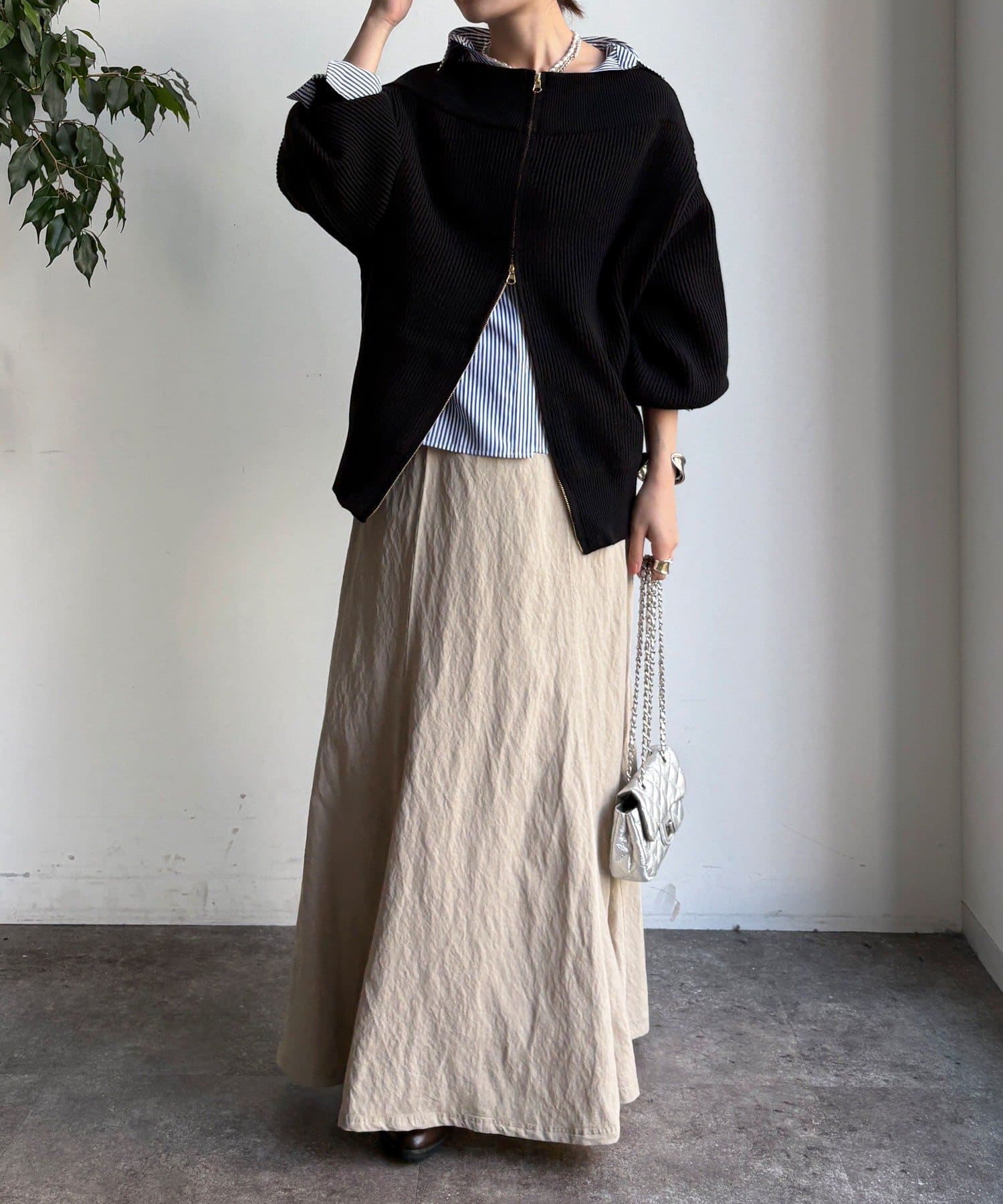 前後2wayで着ていただけるため、気分によって印象を変えていただけますよ。