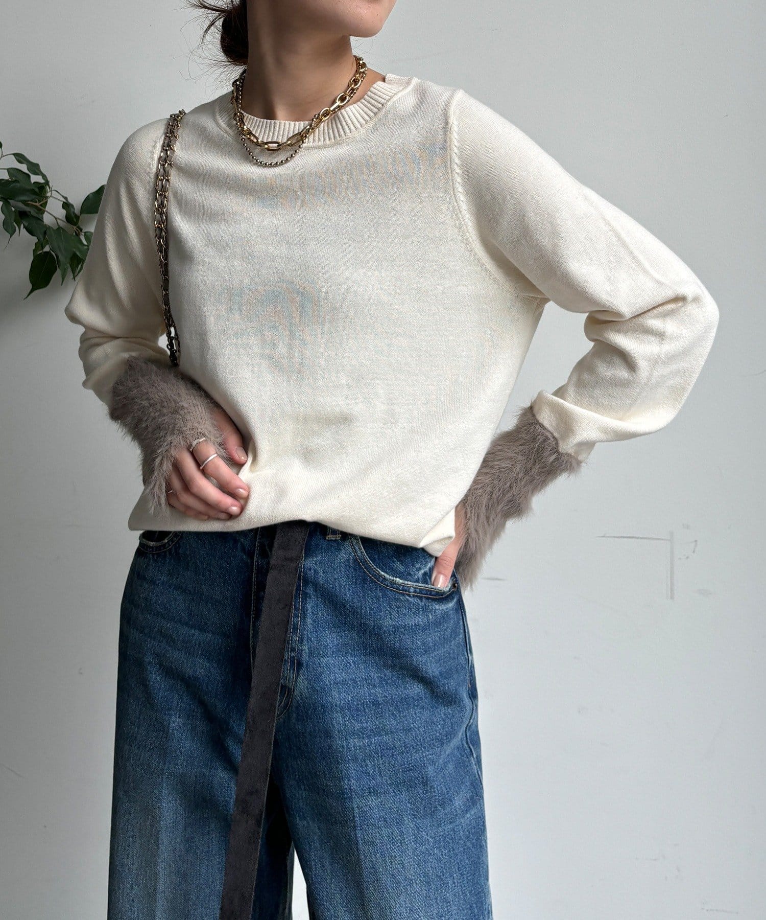 TOP > DOUDOU > レディース > トップス > ニット/セーター > 【WEB限定】シャギースリーブプルオーバー