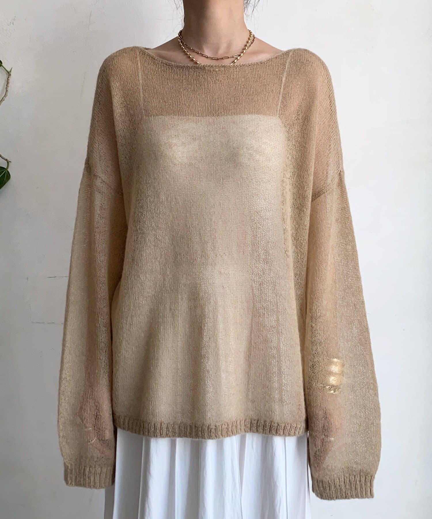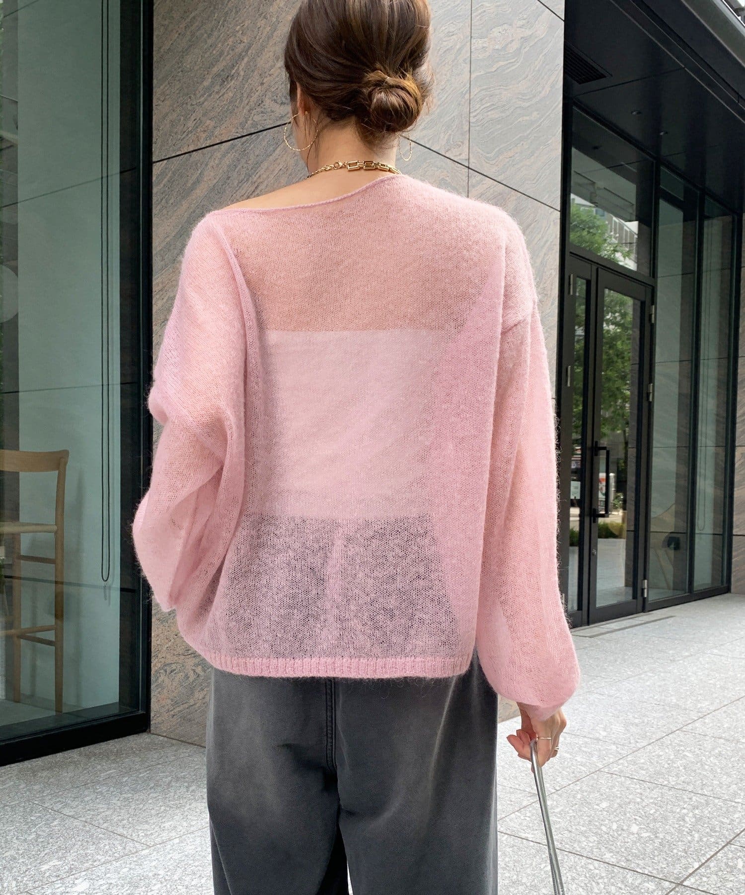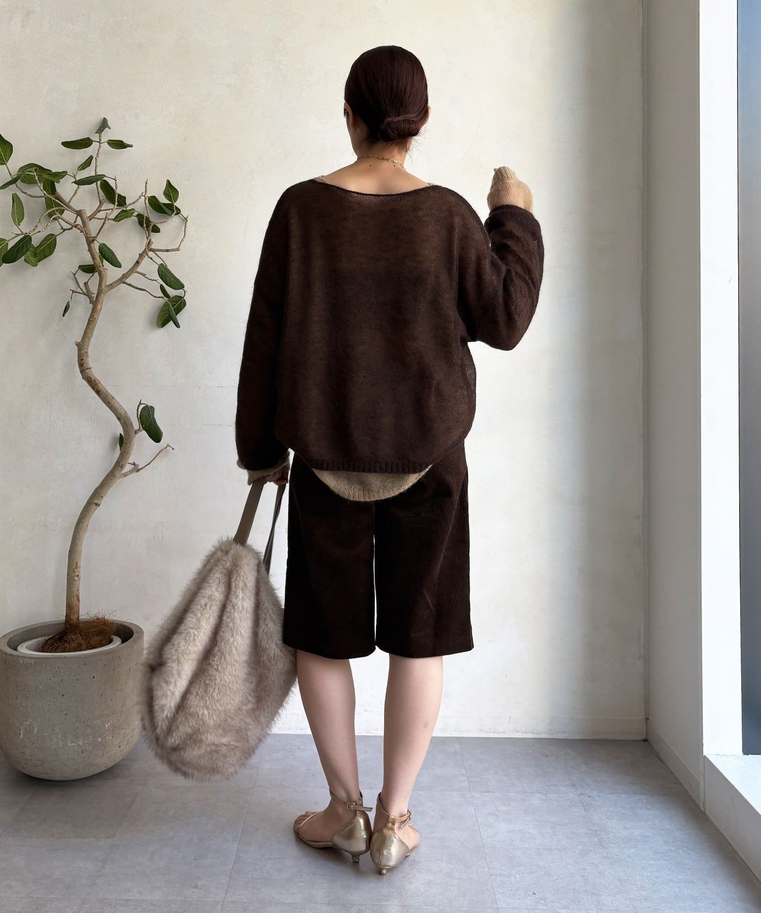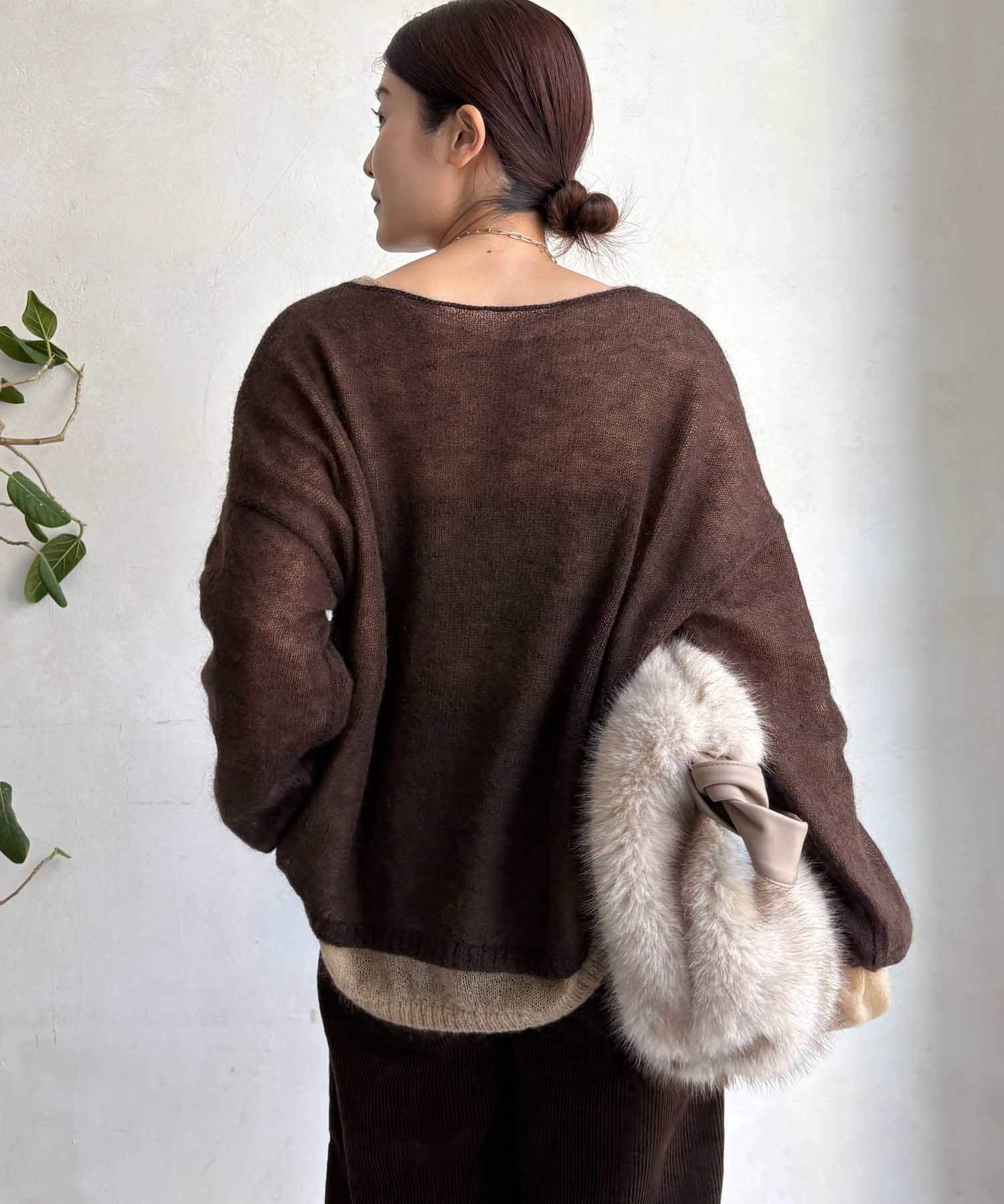 ヘアリーな素材感と透かし編みで今らしい1着。