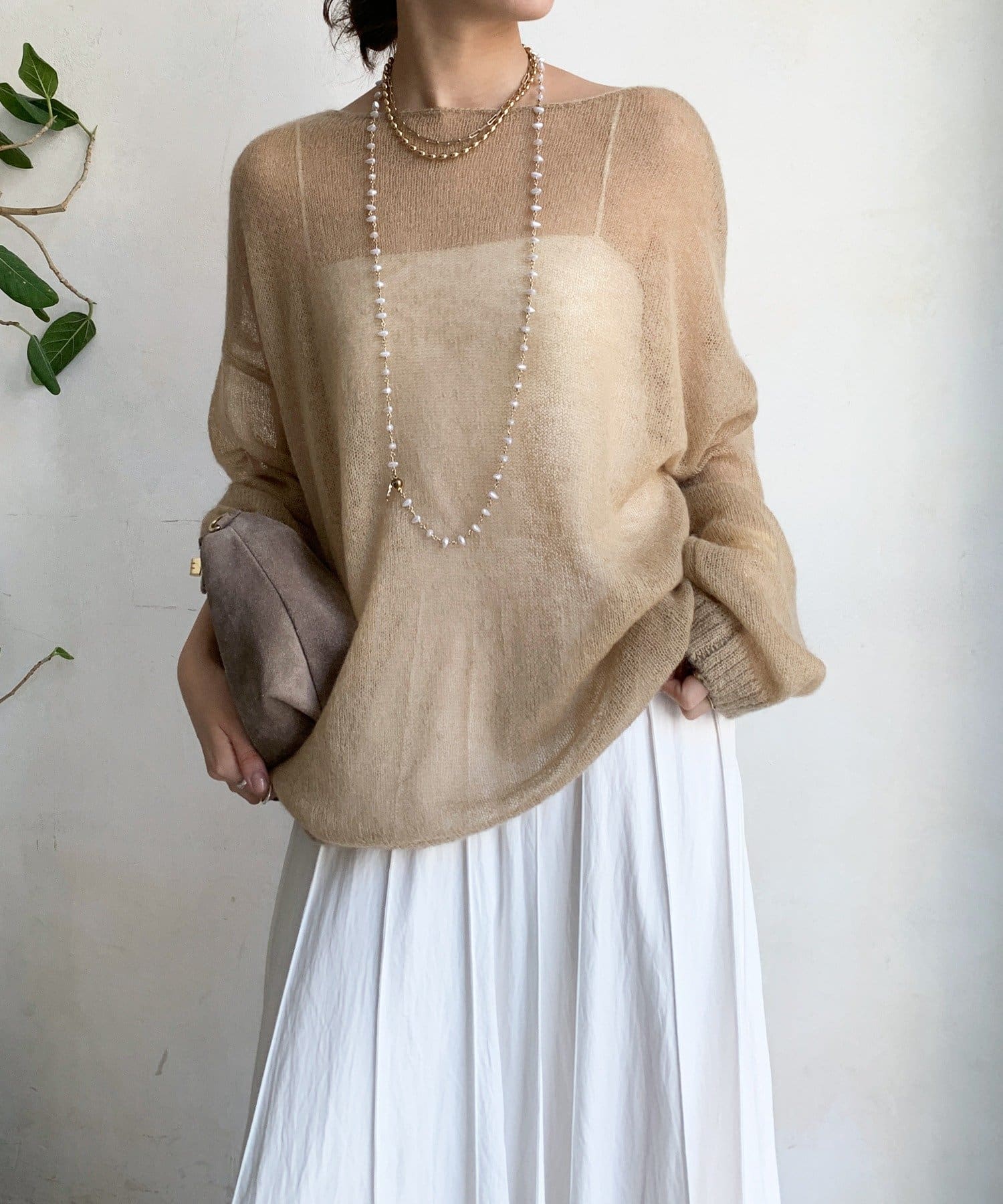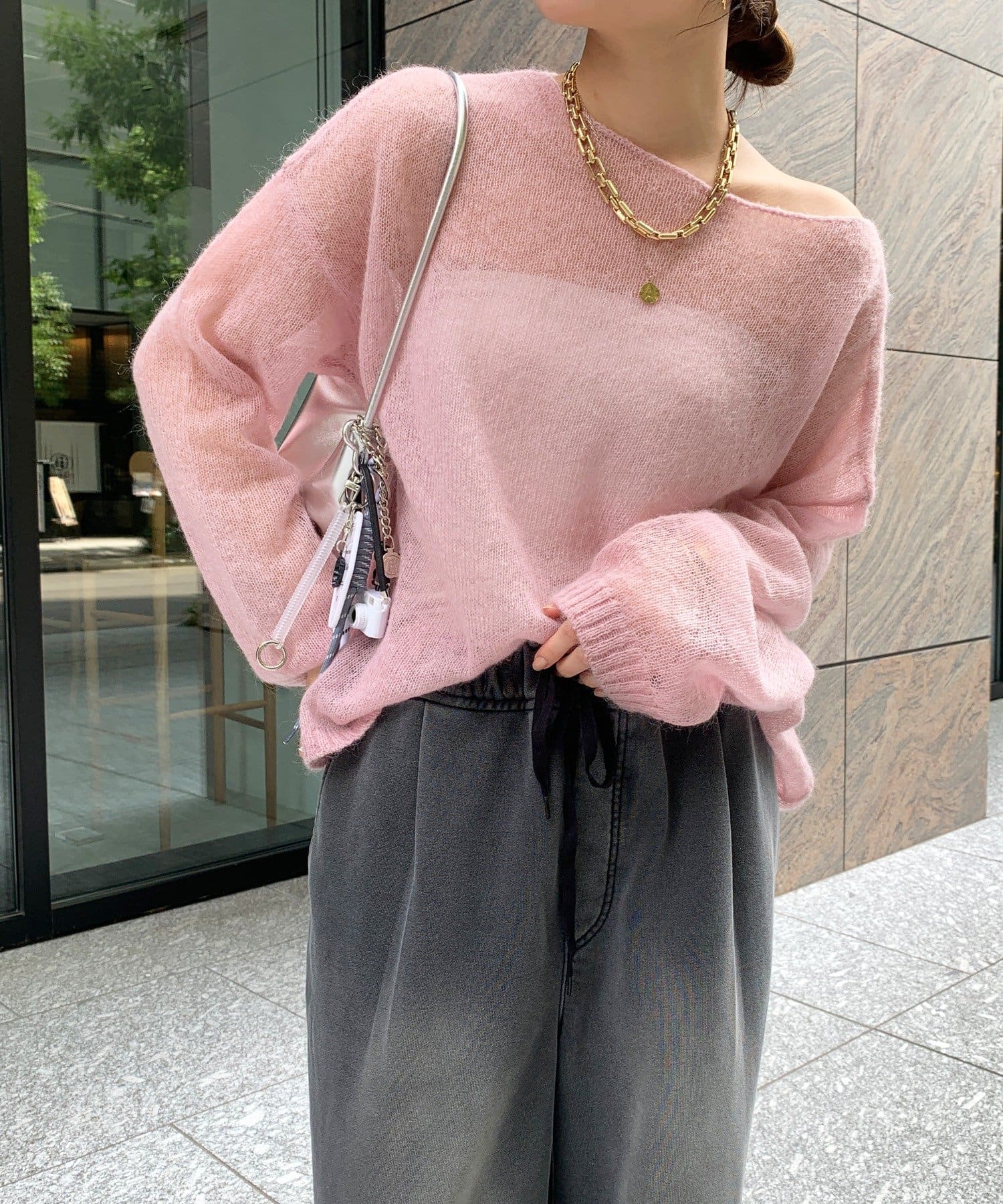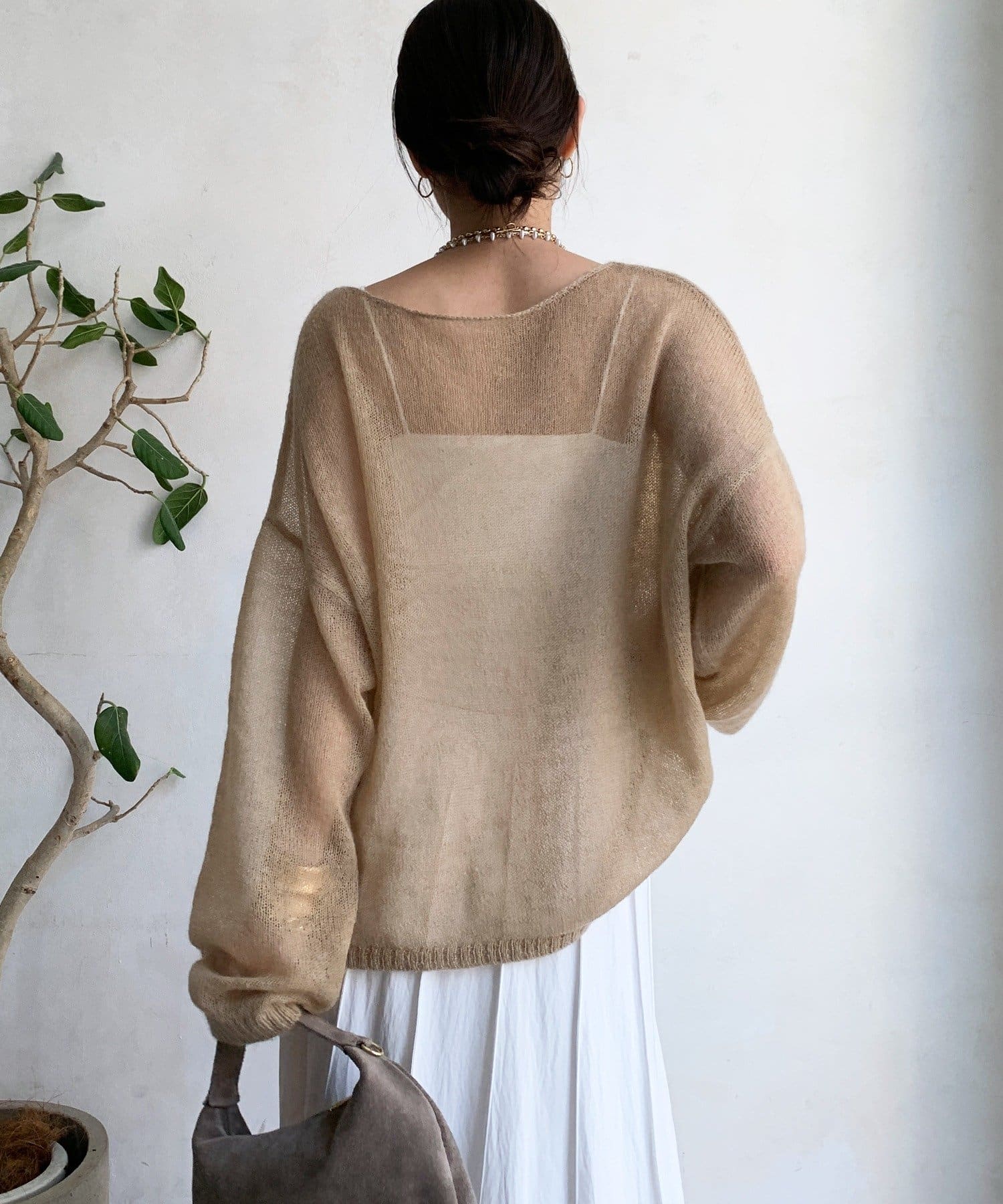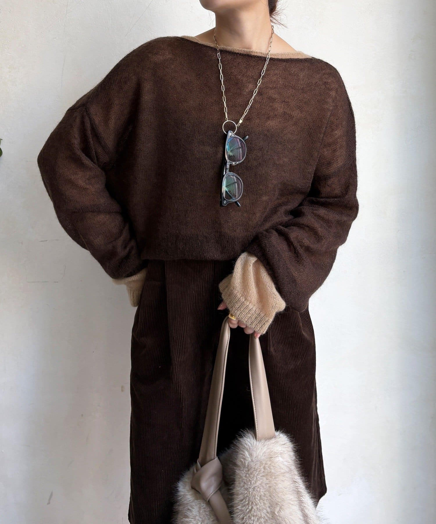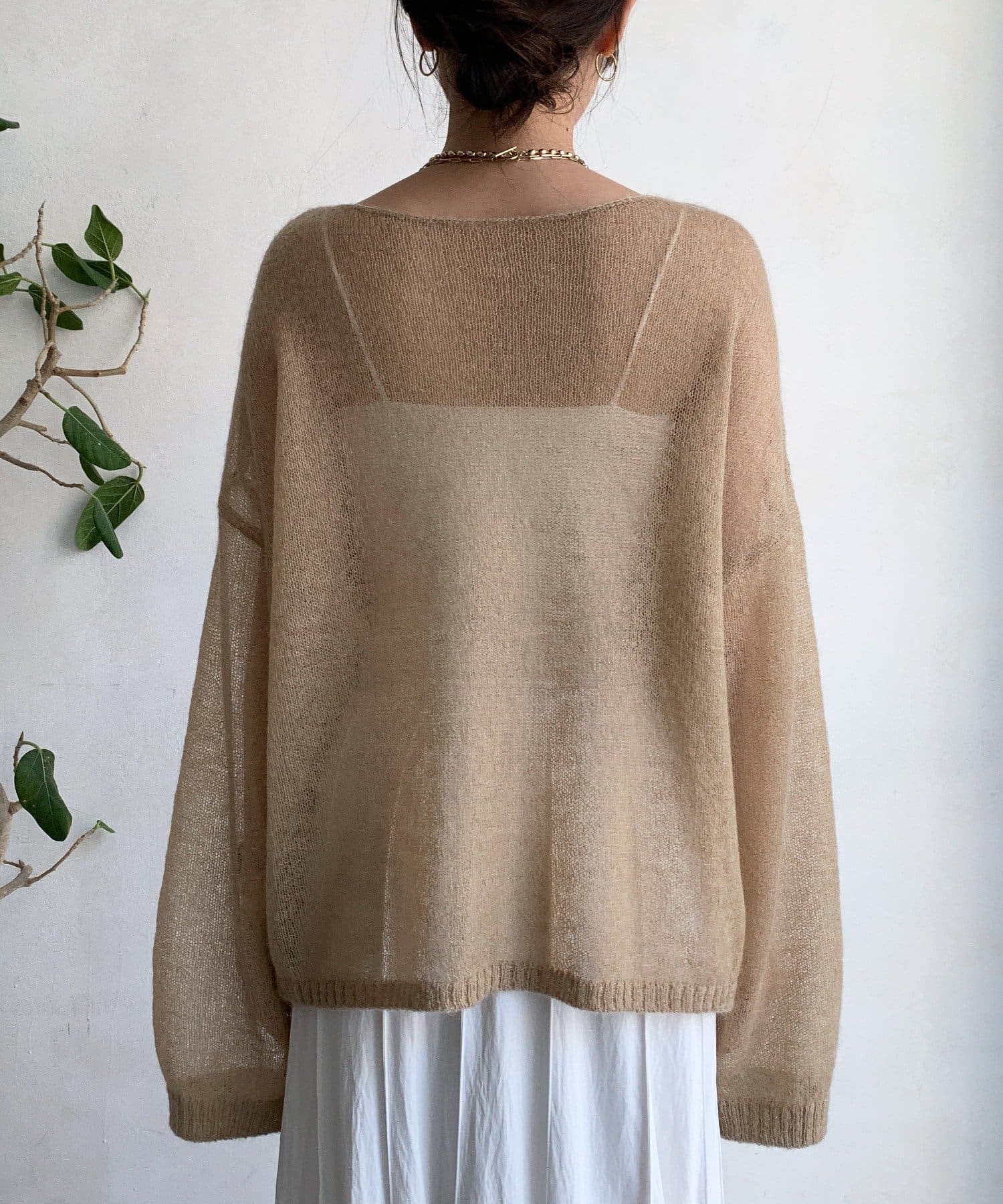 ヘアリーな素材感と透かし編みで今らしい1着。