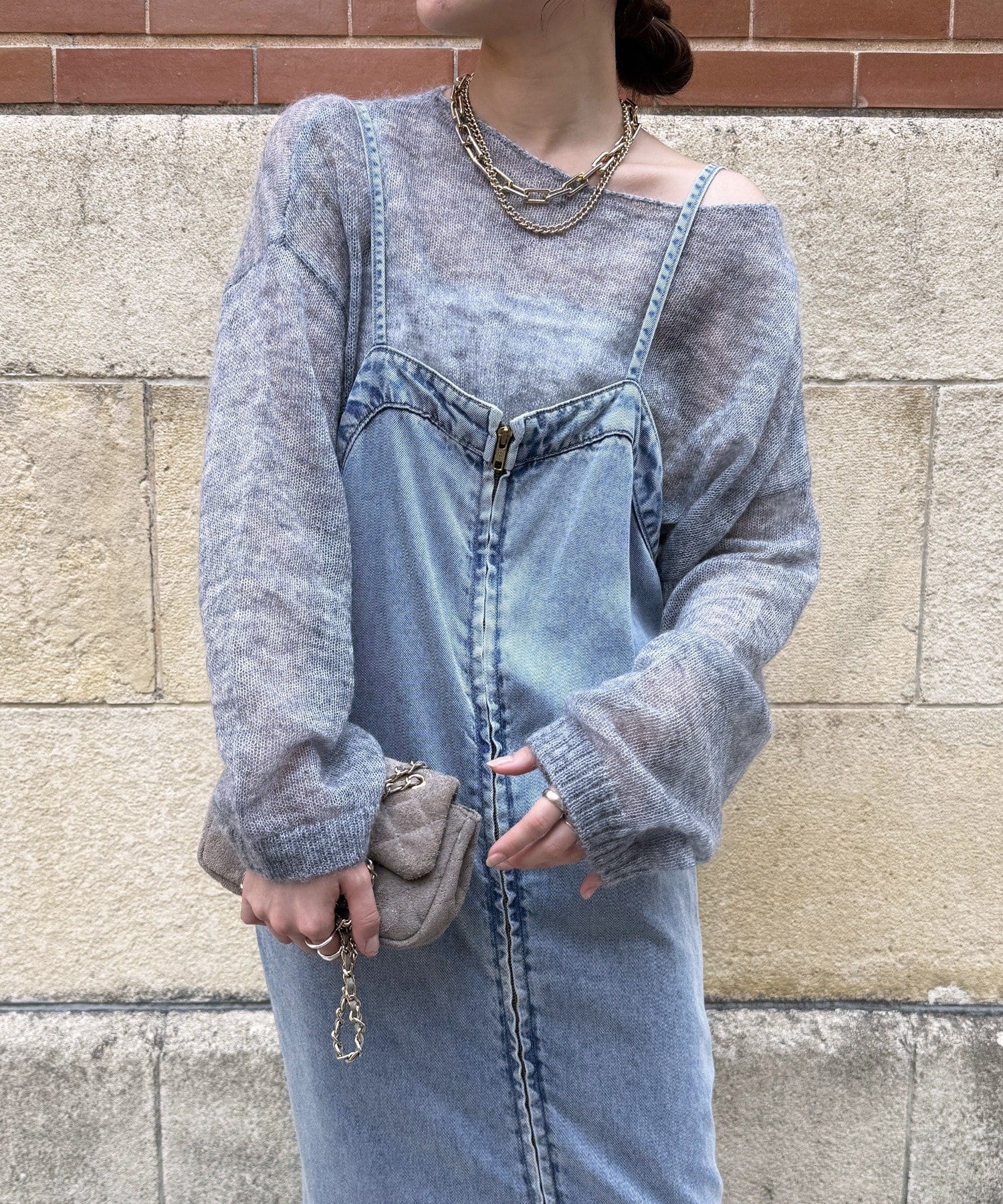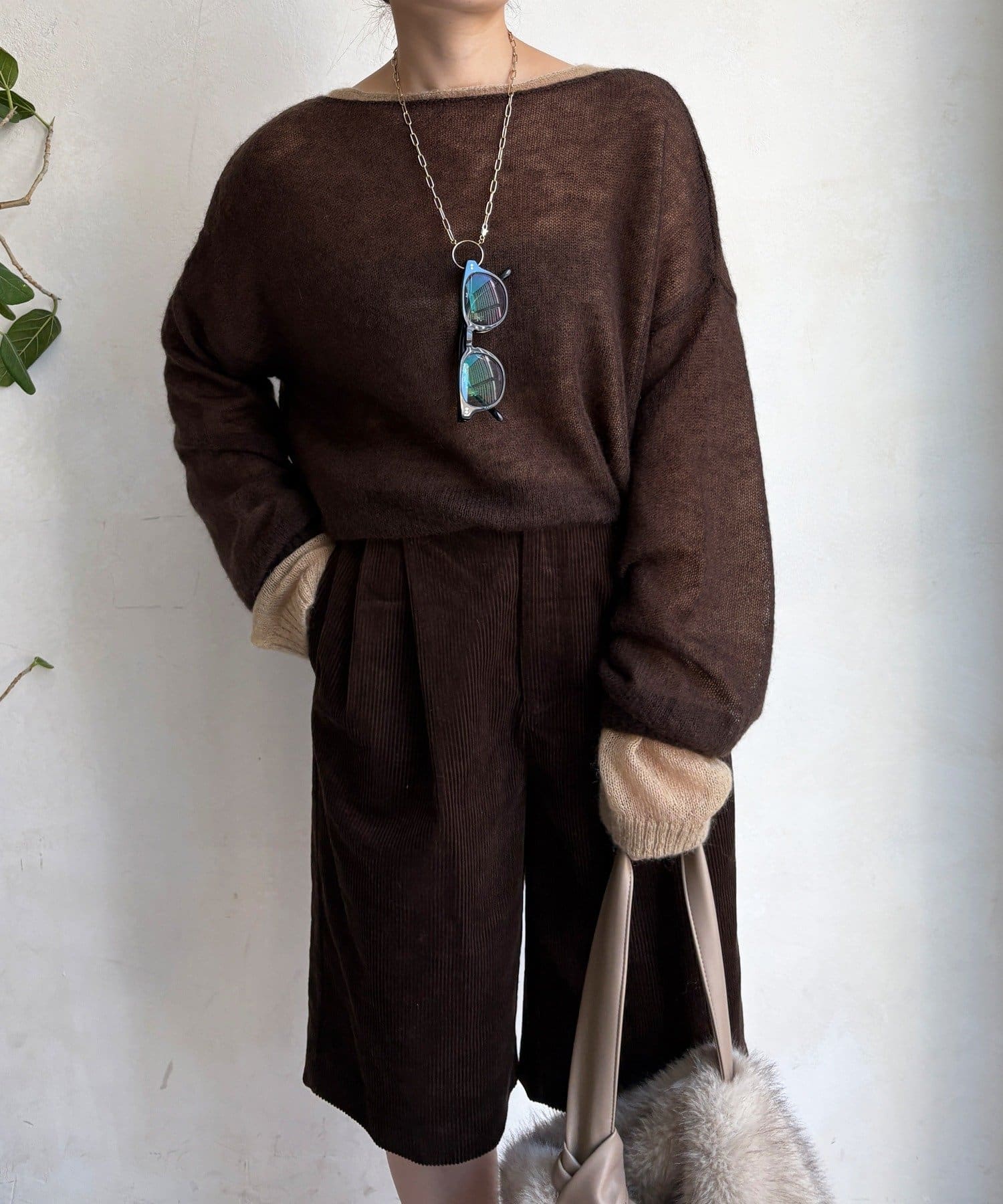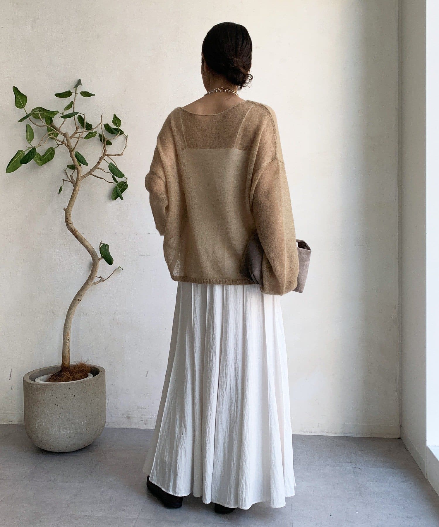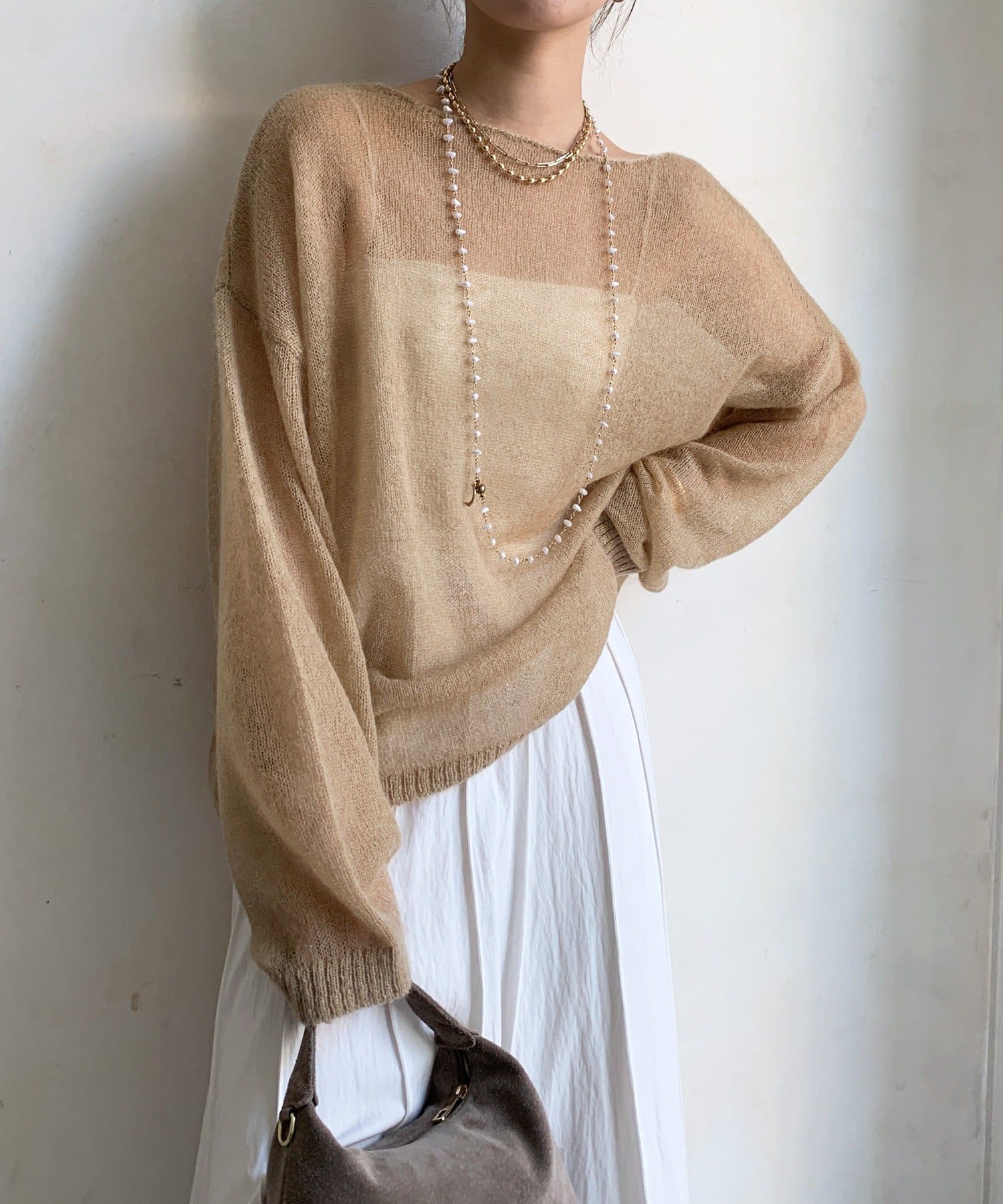 ヘアリーな素材感と透かし編みで今らしい1着。
