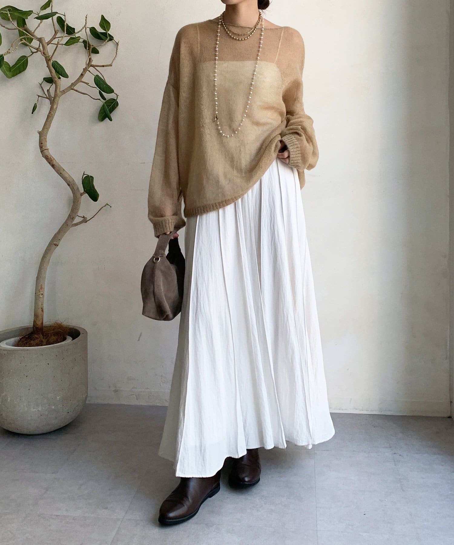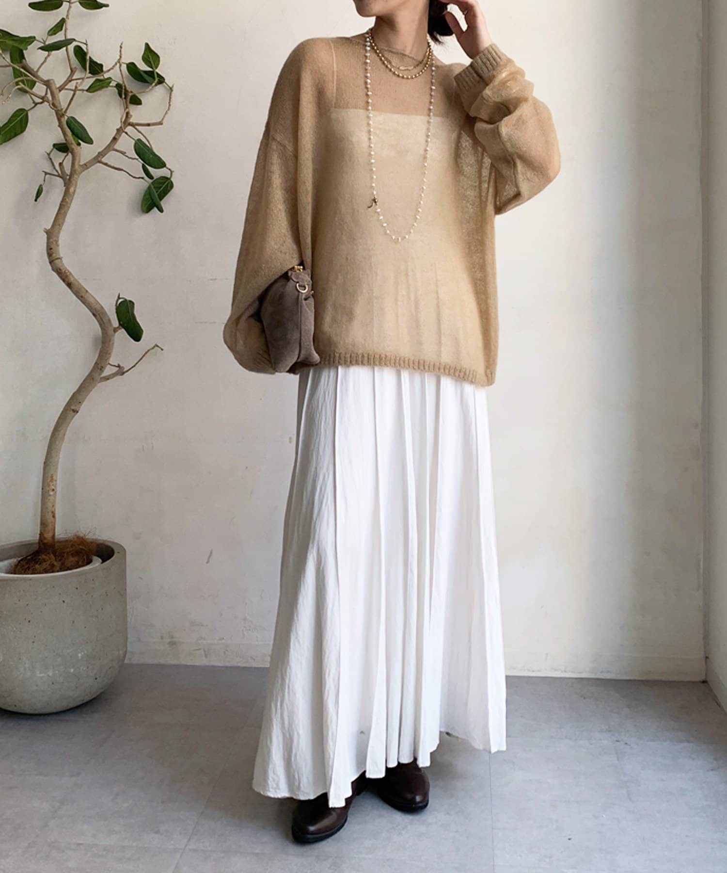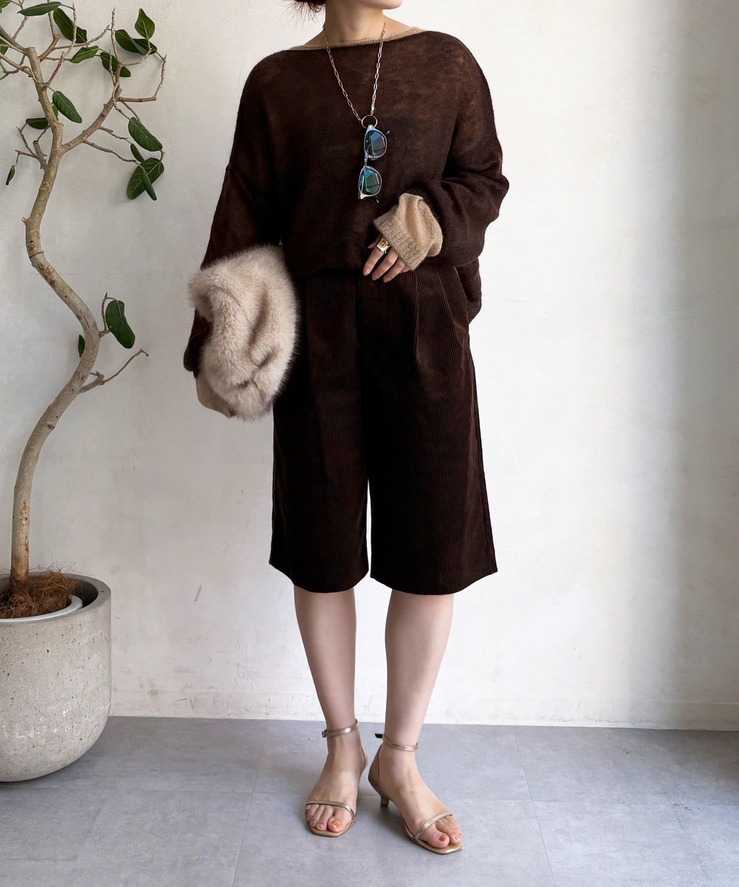 パンツスタイルにもスカートスタイルにもマッチしてくれるので、普段使いしやすく、取り入れるだけで旬なスタイリングが完成しますよ。