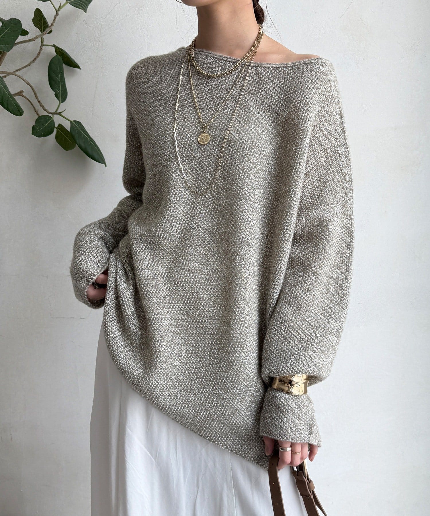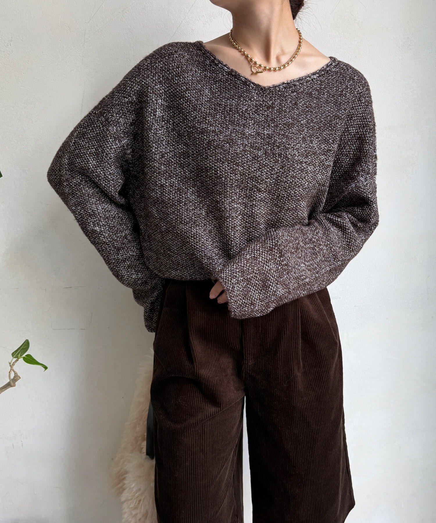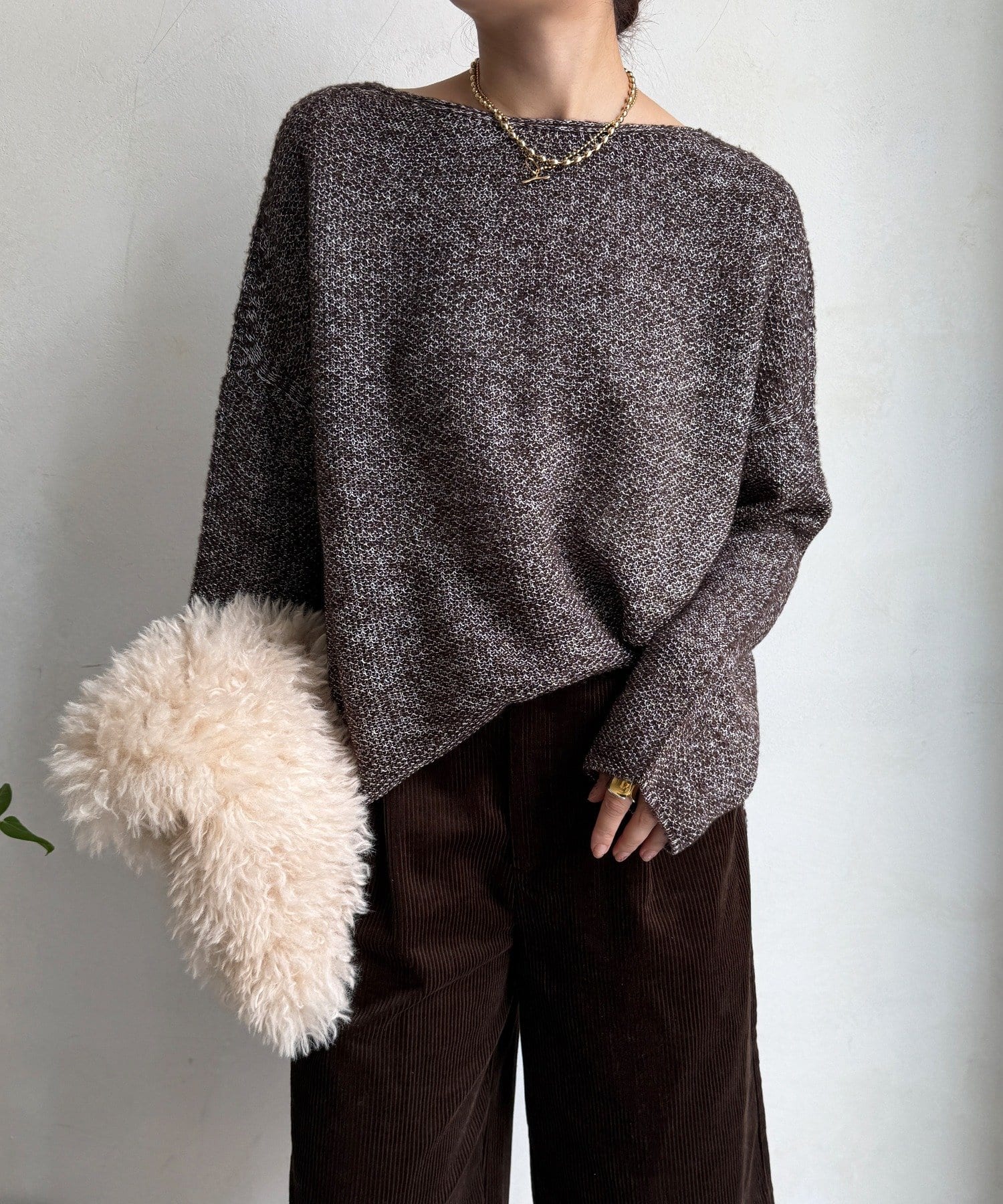シンプルなデザインでありながらも、エアリーな表面感とメランジの素材感がポイントとなってくれます。