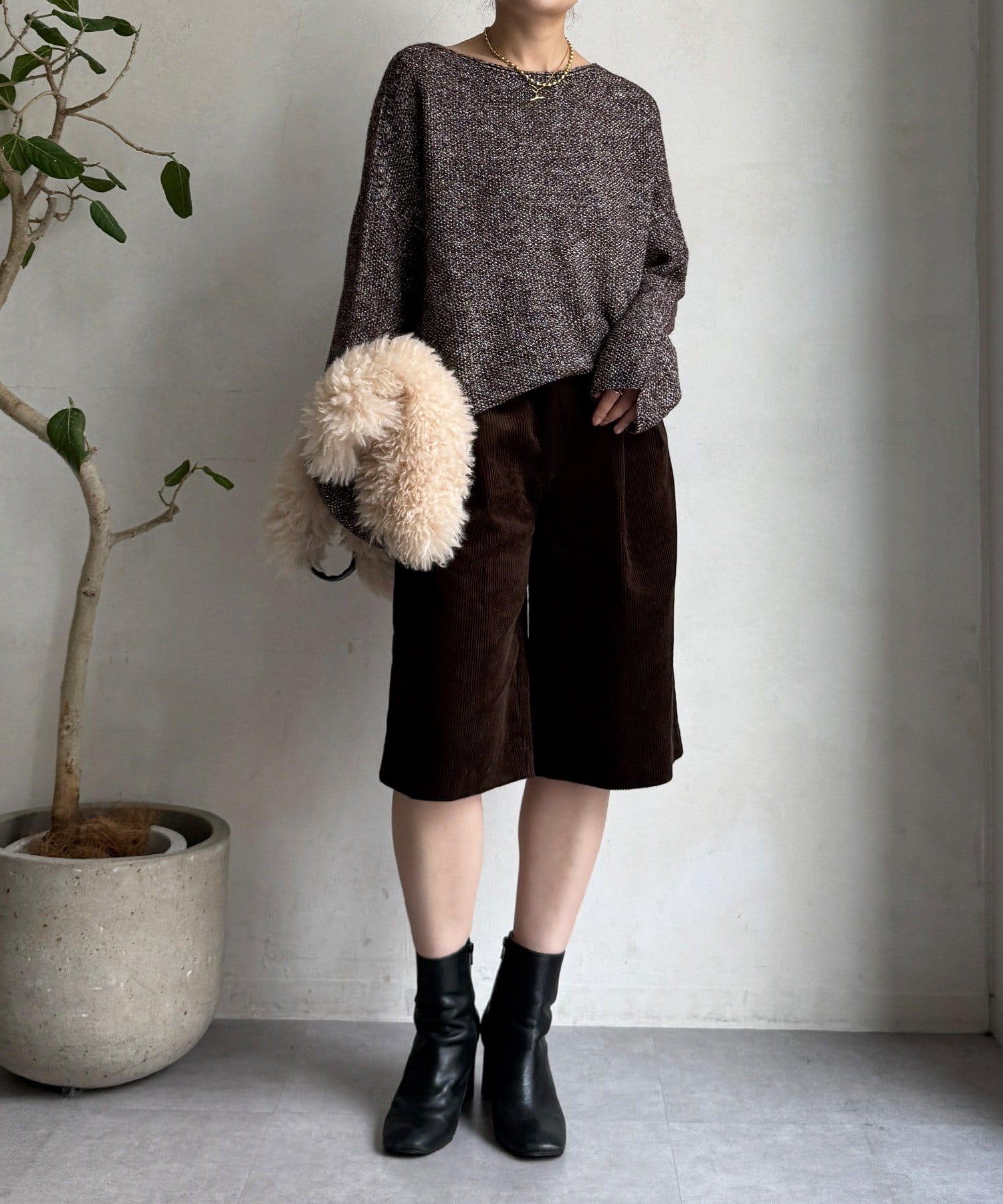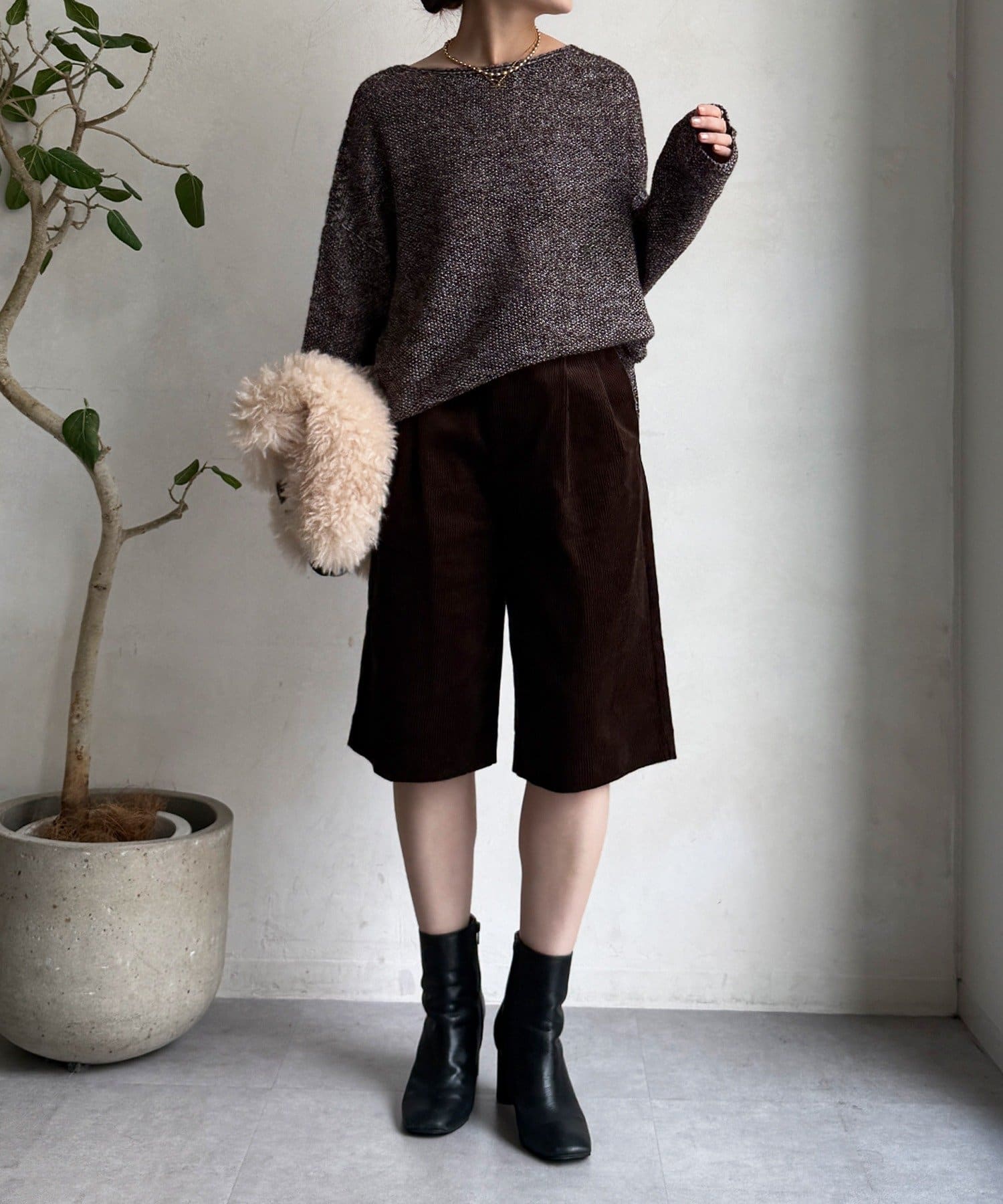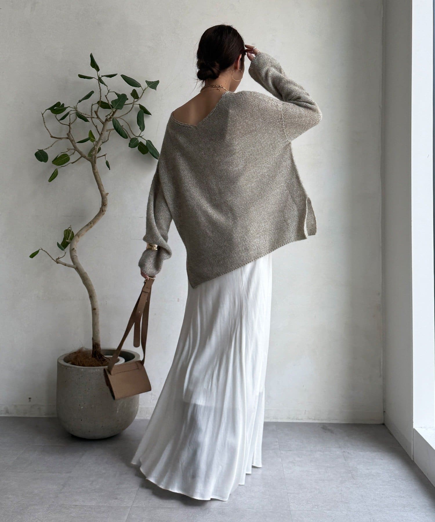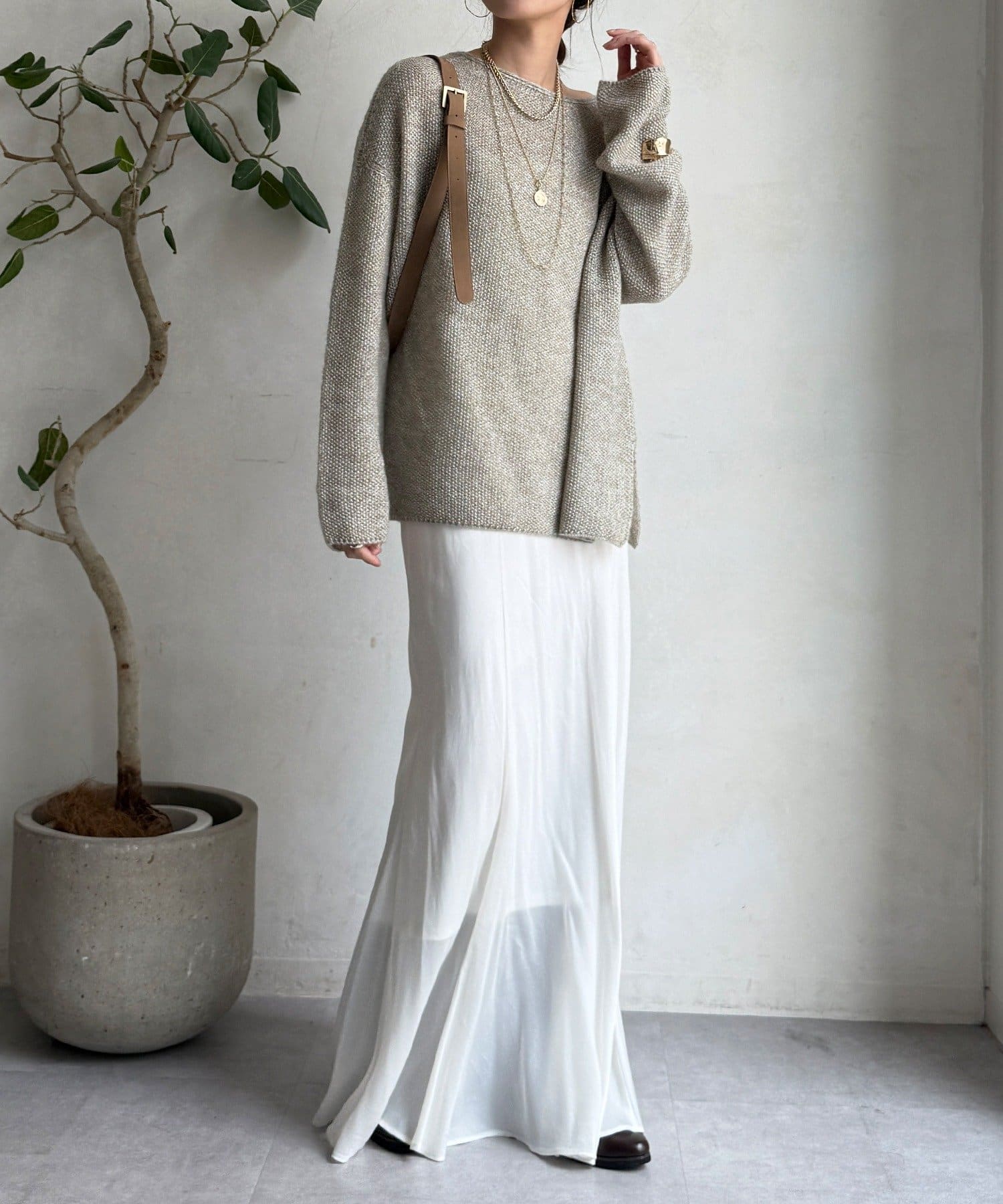 シンプルなデザインでありながらも、エアリーな表面感とメランジの素材感がポイントとなってくれます。