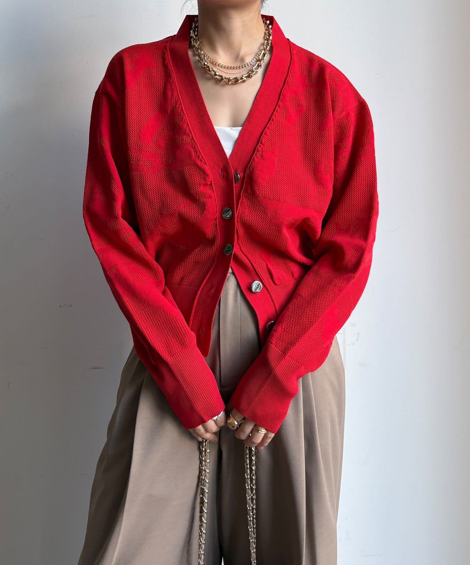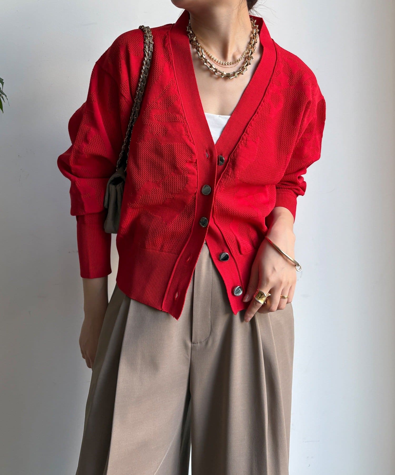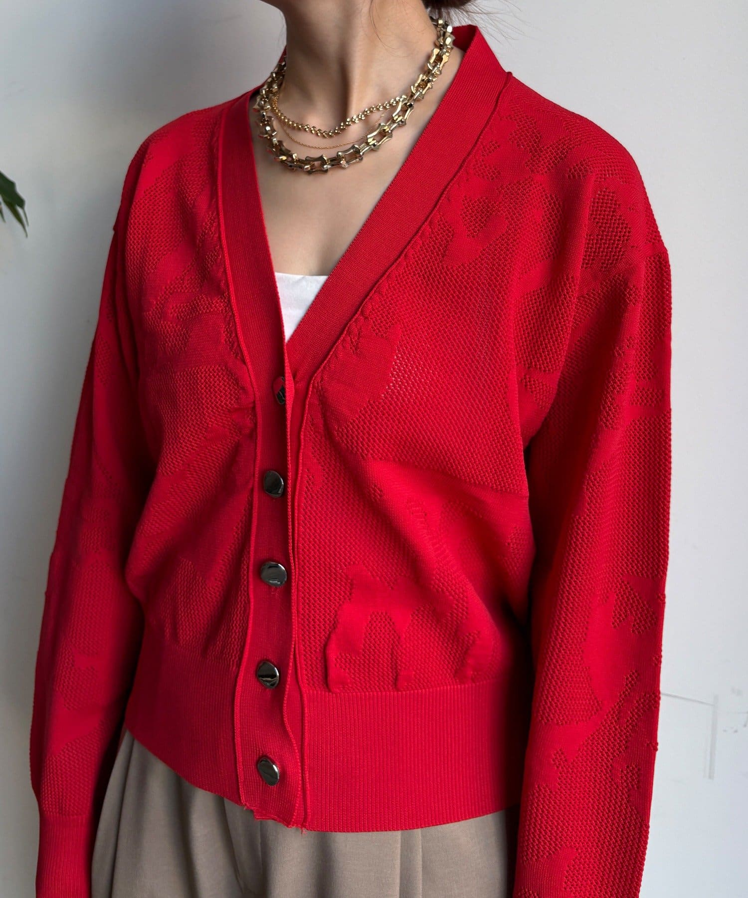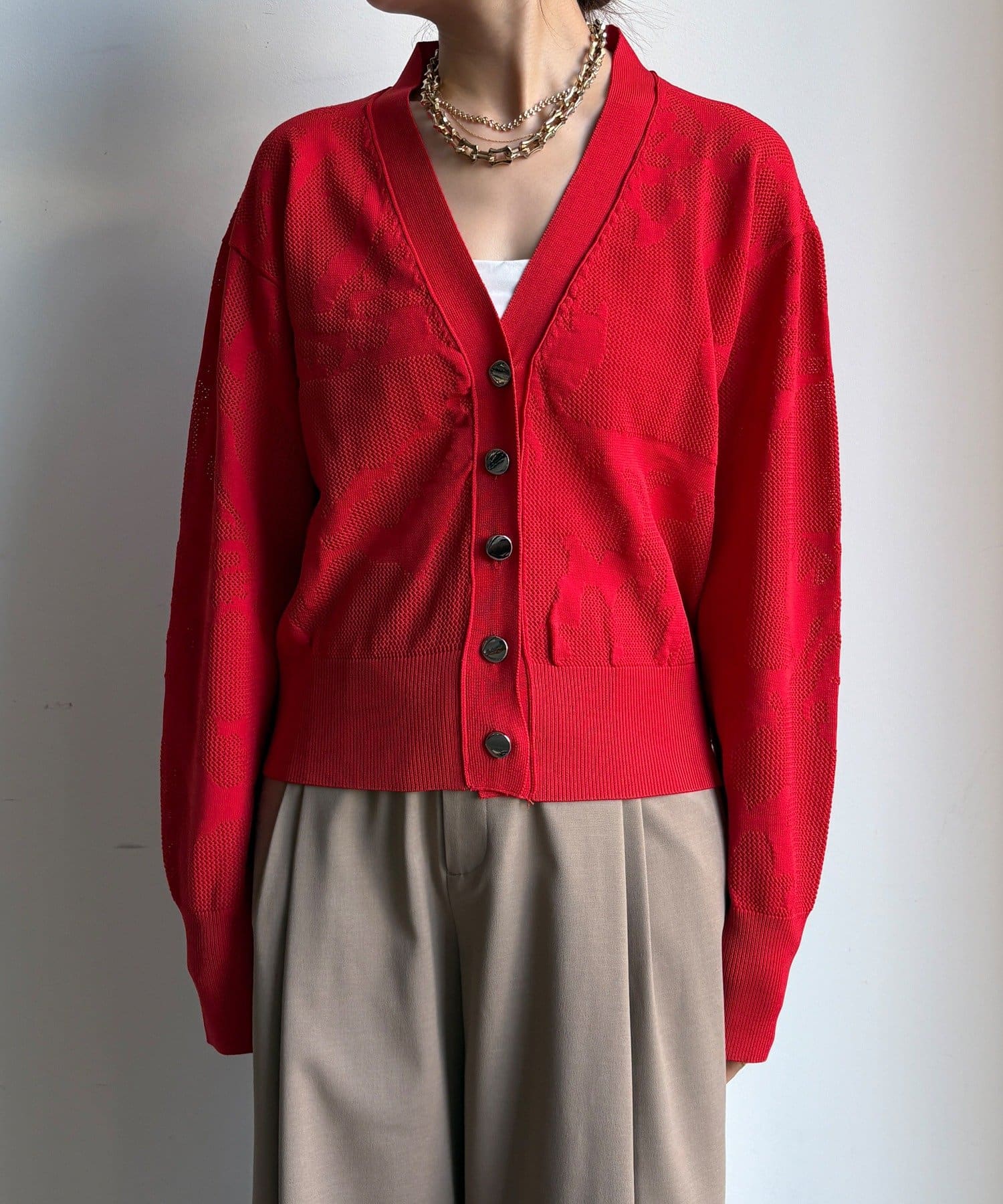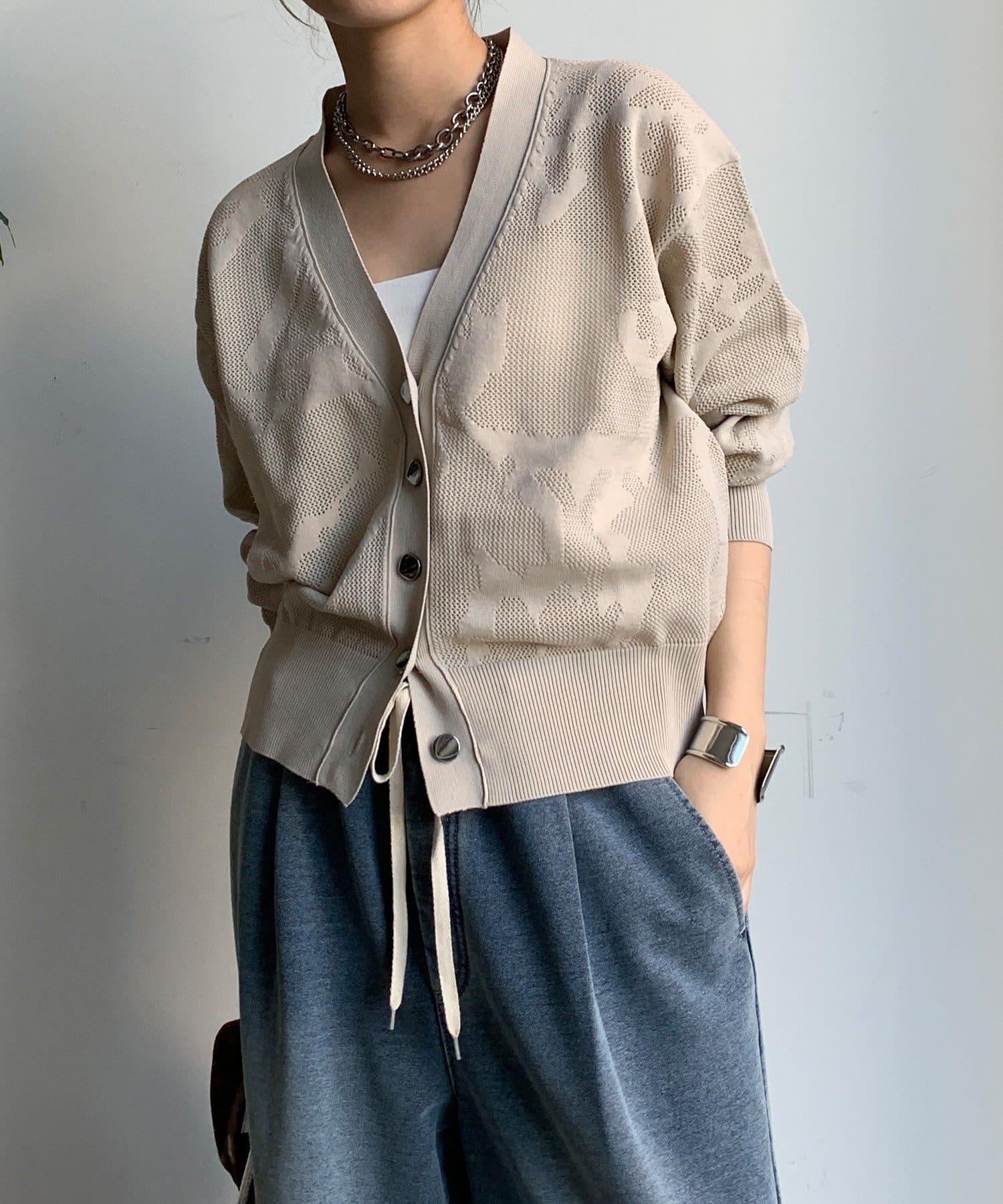 主張しすぎない、さりげない柄だからこそ、どんなアイテムとも相性抜群なカーディガンが登場!