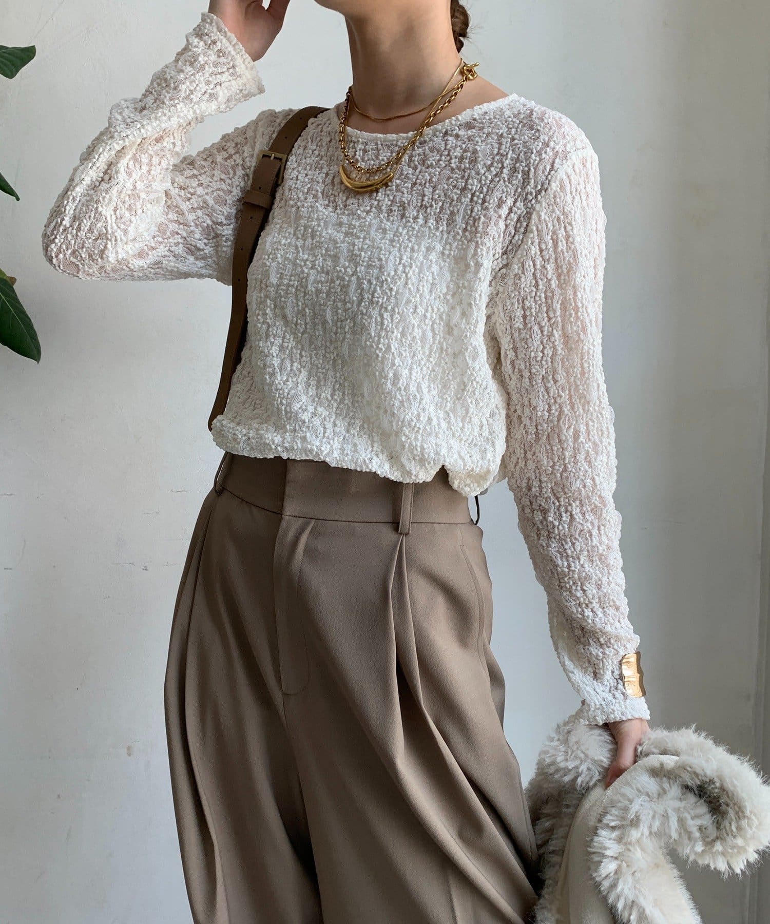 甘すぎないレースの柄がポイントのリンクルシャーリング素材。
