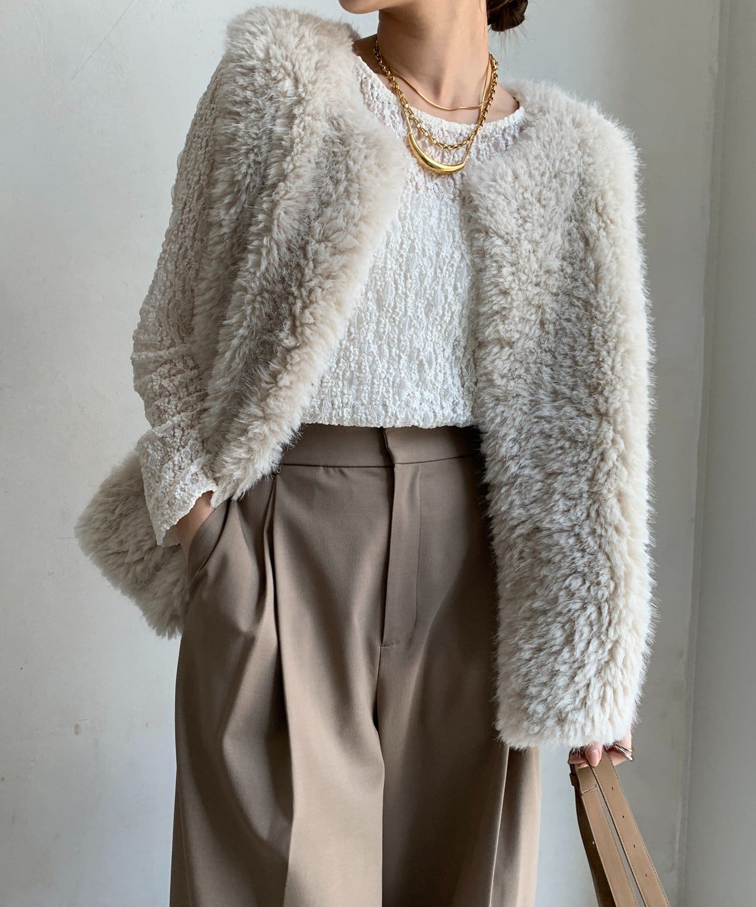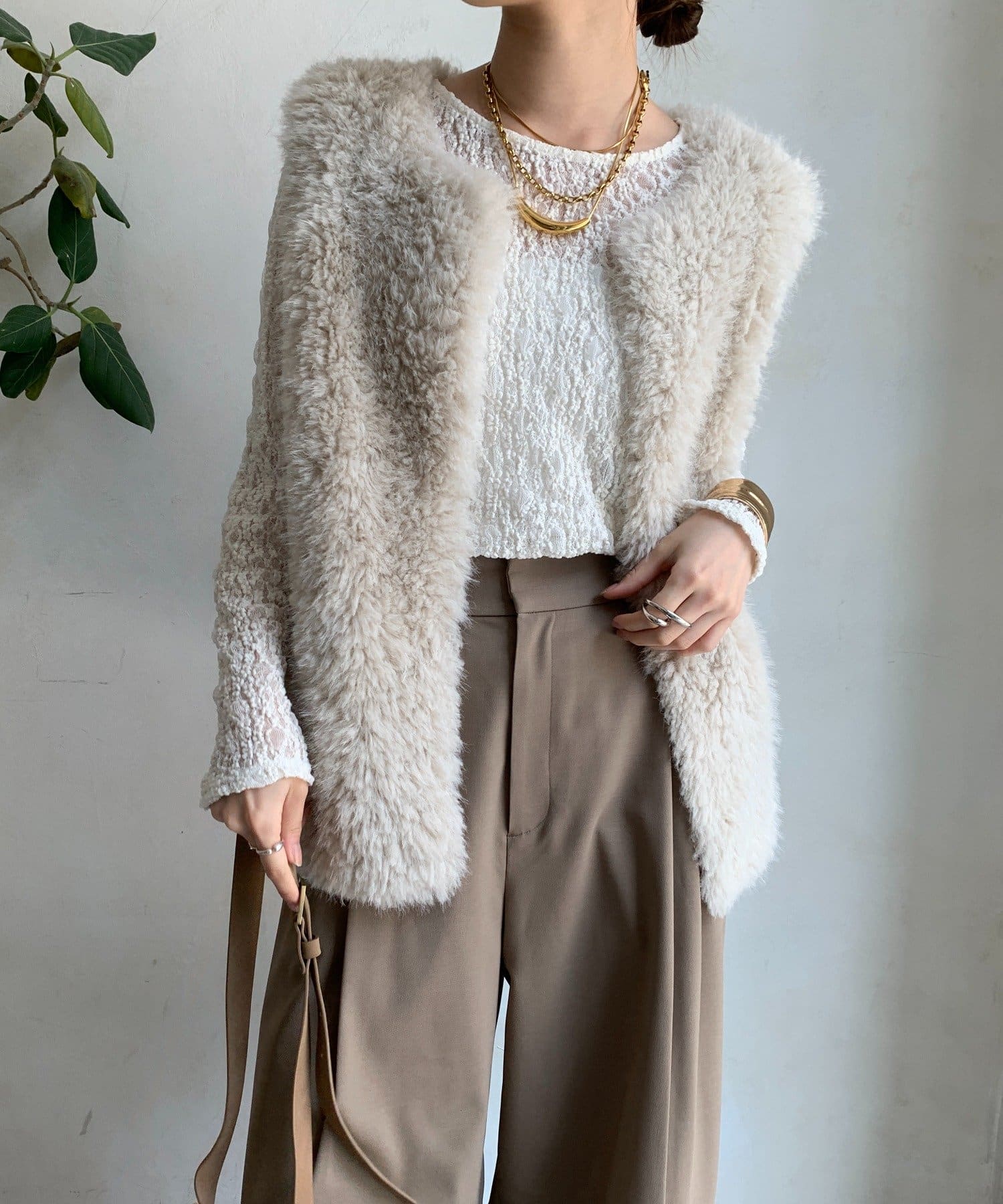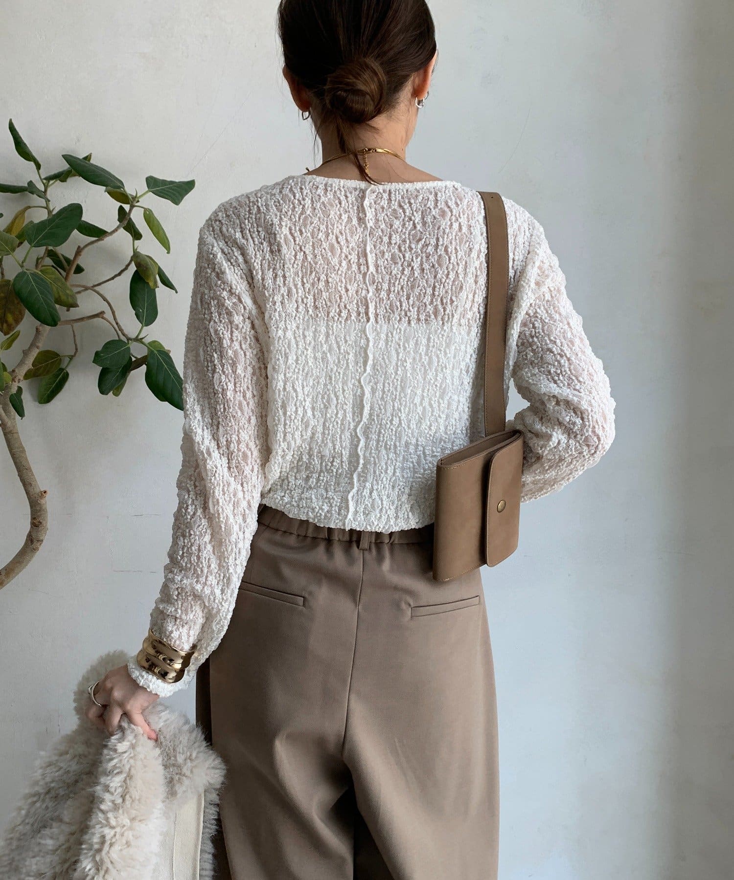 【完売カラー再追加!】リンクルフラワーシャーリングプルオーバー