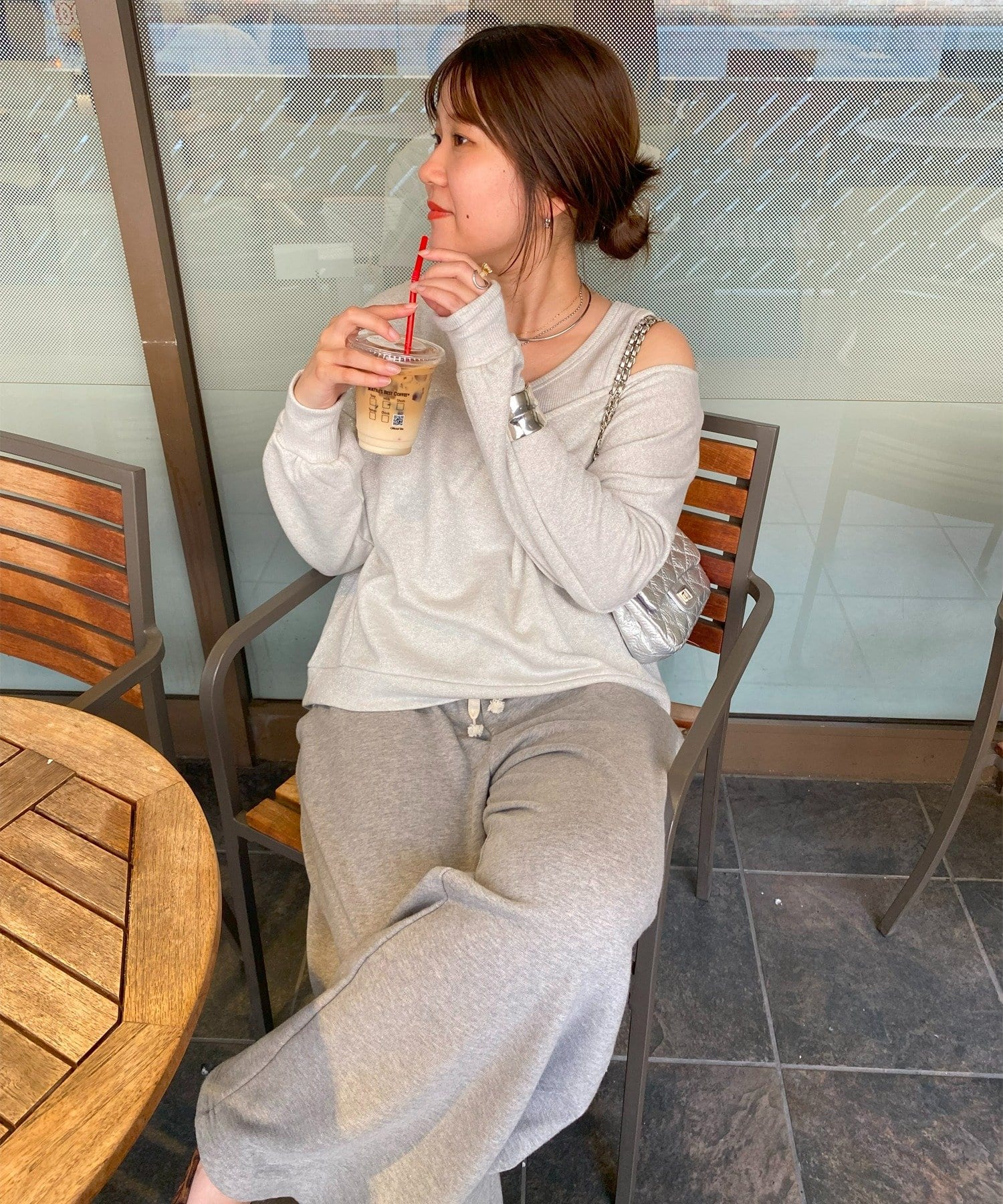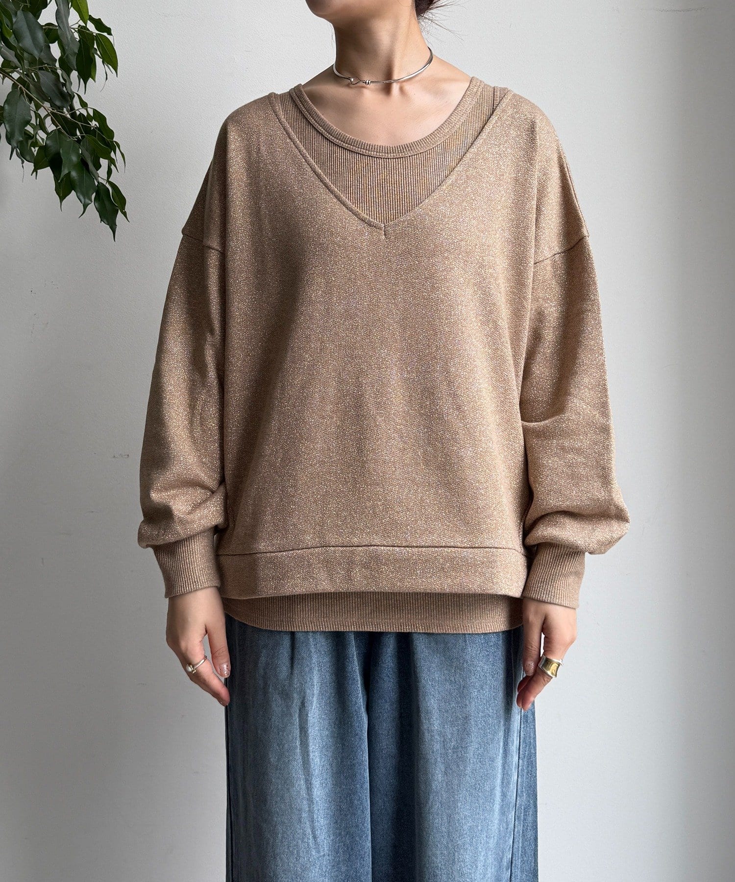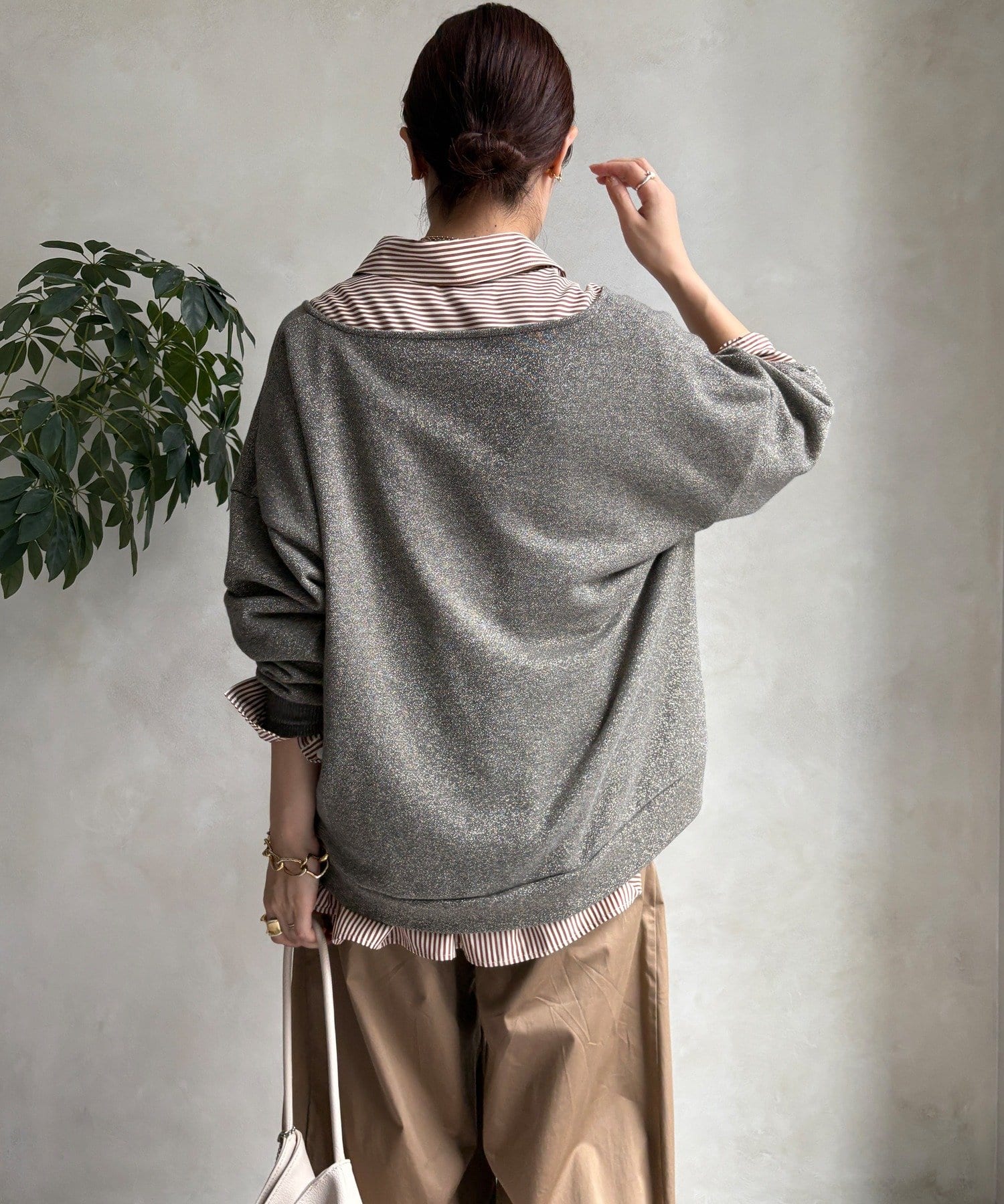 キラッとしたラメで、カジュアルなスウェット素材も華やかに見せてくれるのがポイントです★