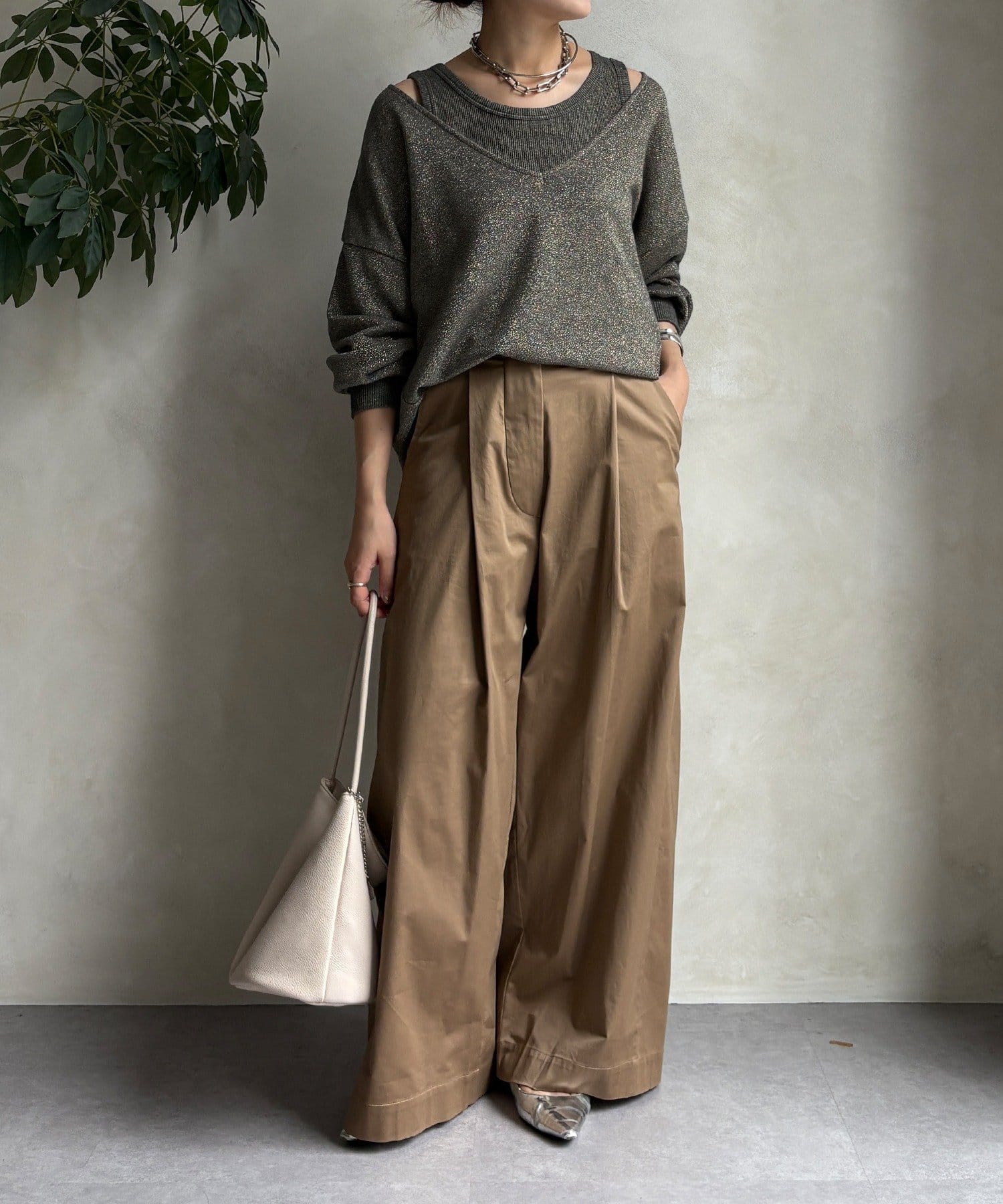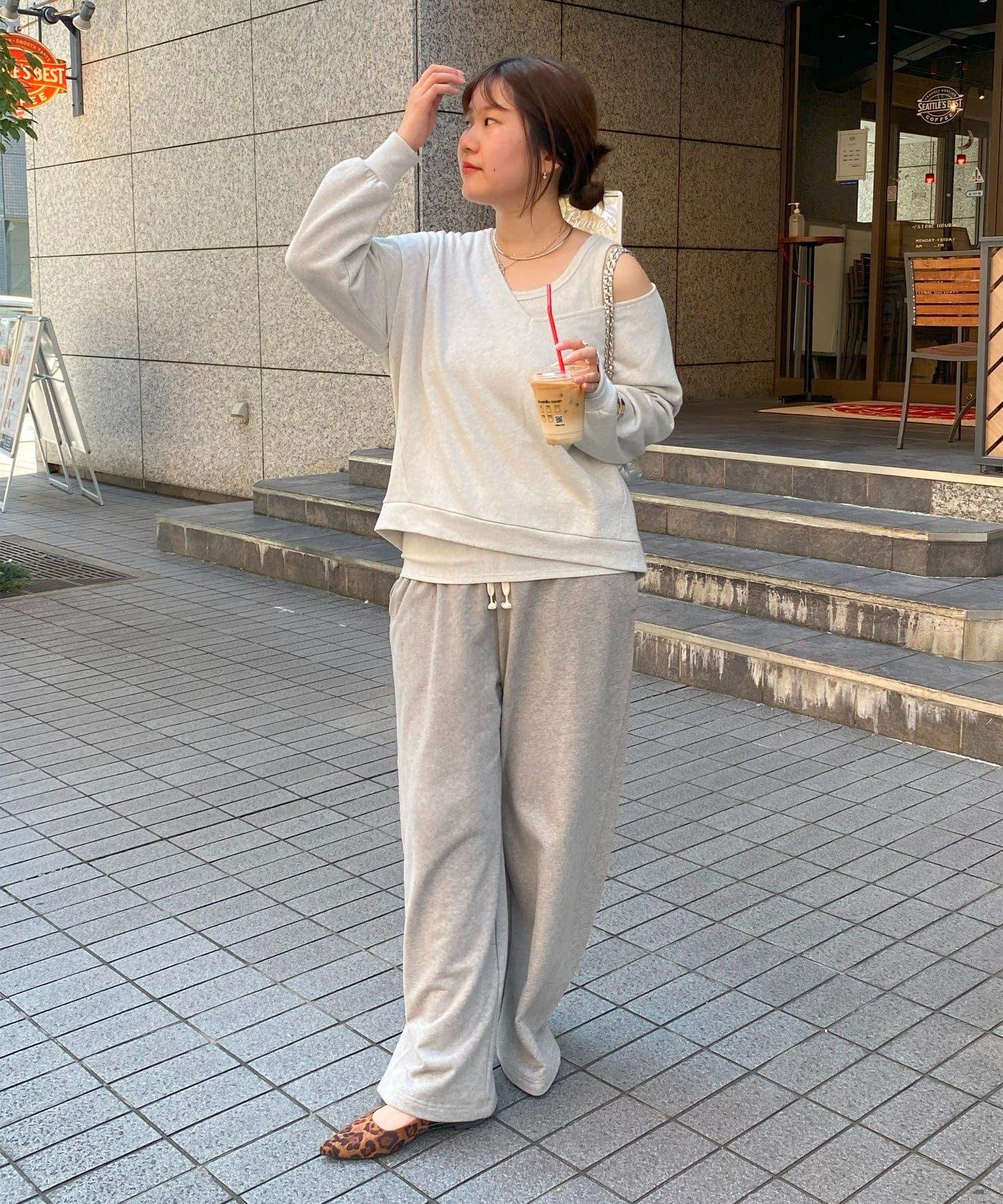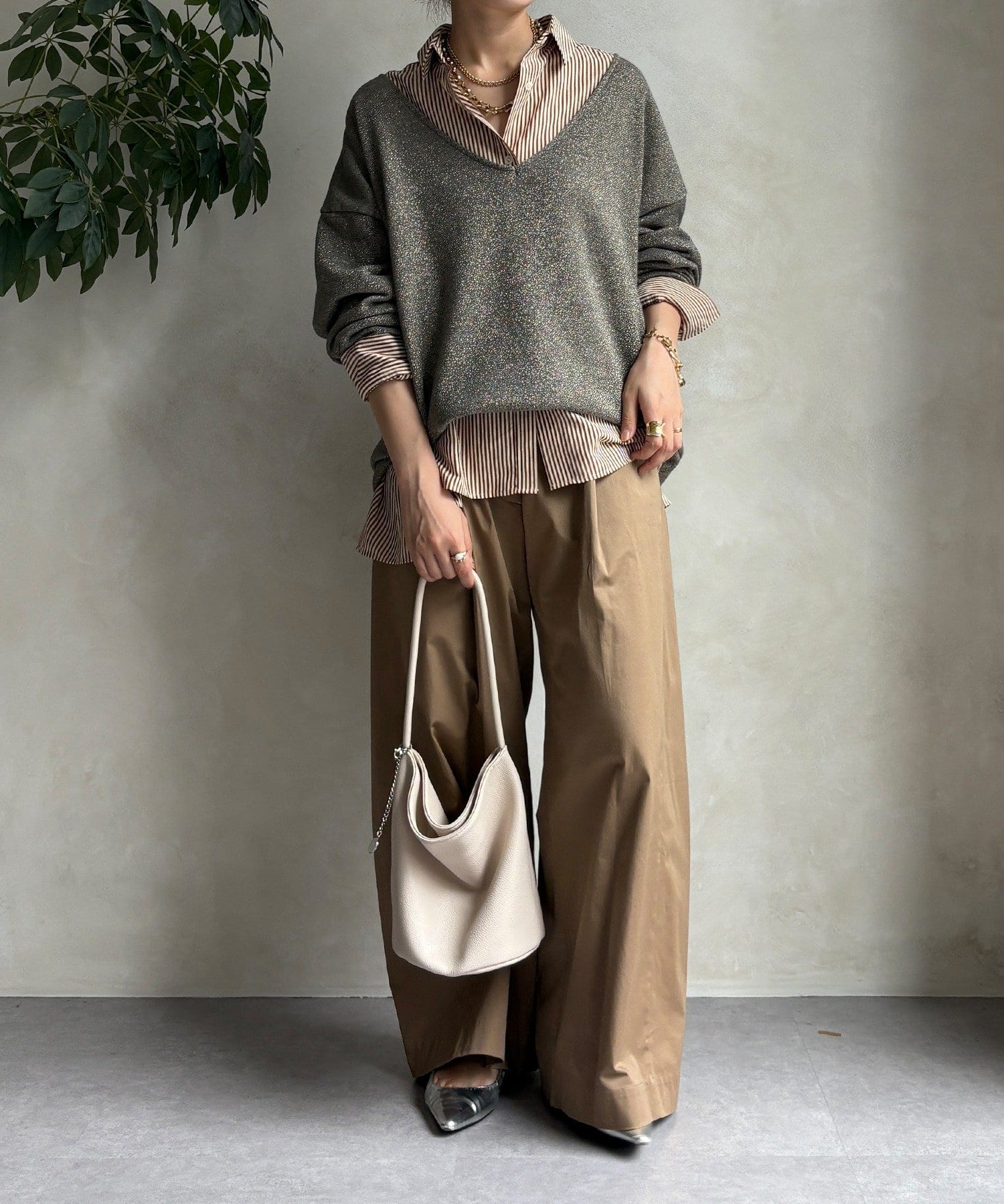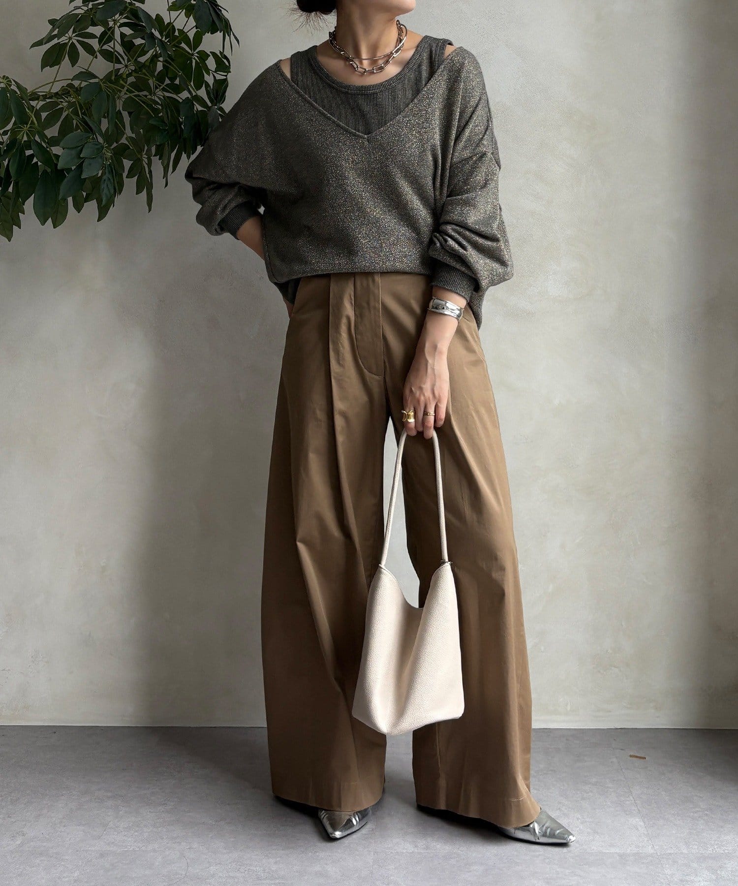 キラッとしたラメで、カジュアルなスウェット素材も華やかに見せてくれるのがポイントです★