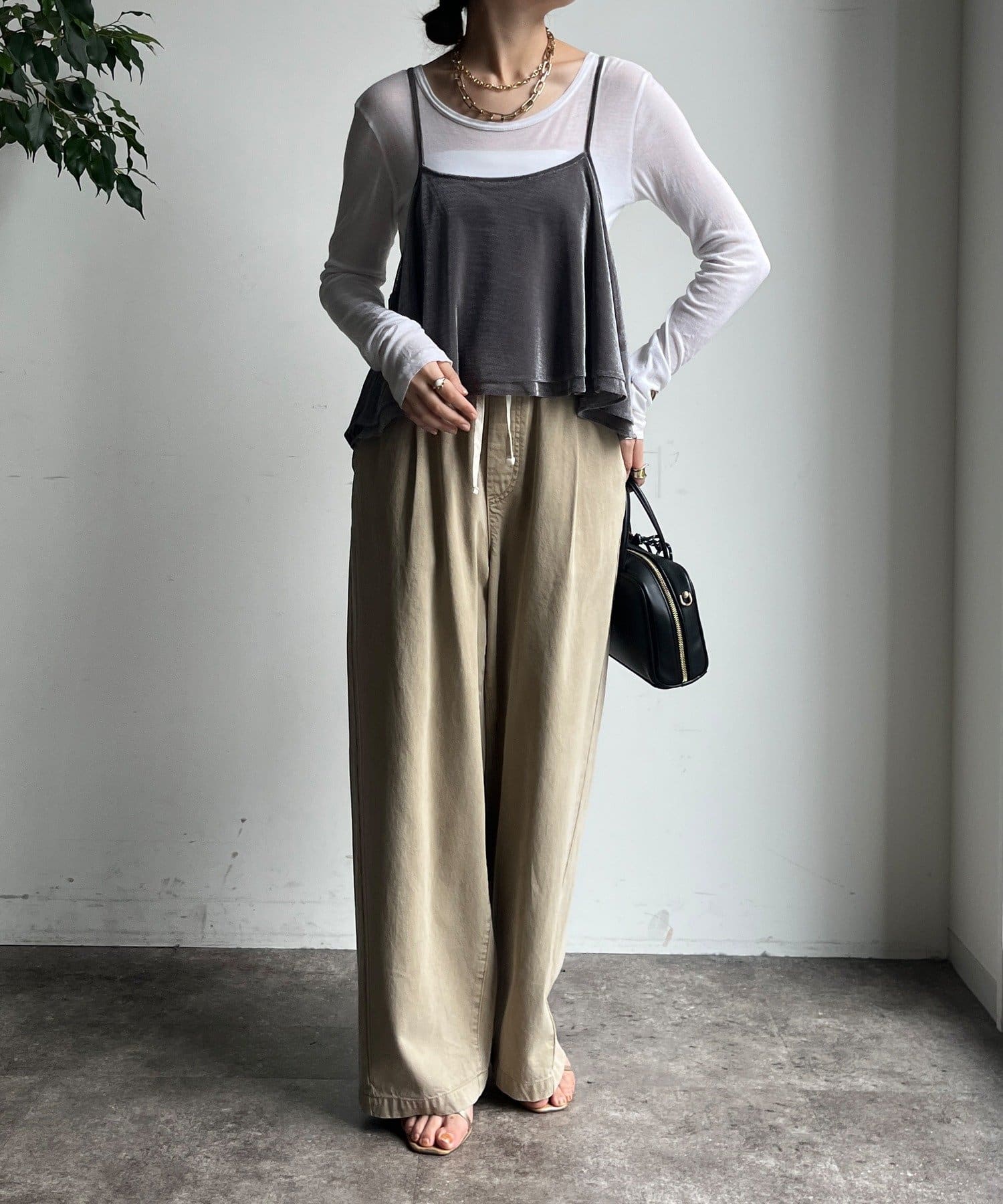 ウエスト位置を高く見せ、全身のバランスがよく見えます。