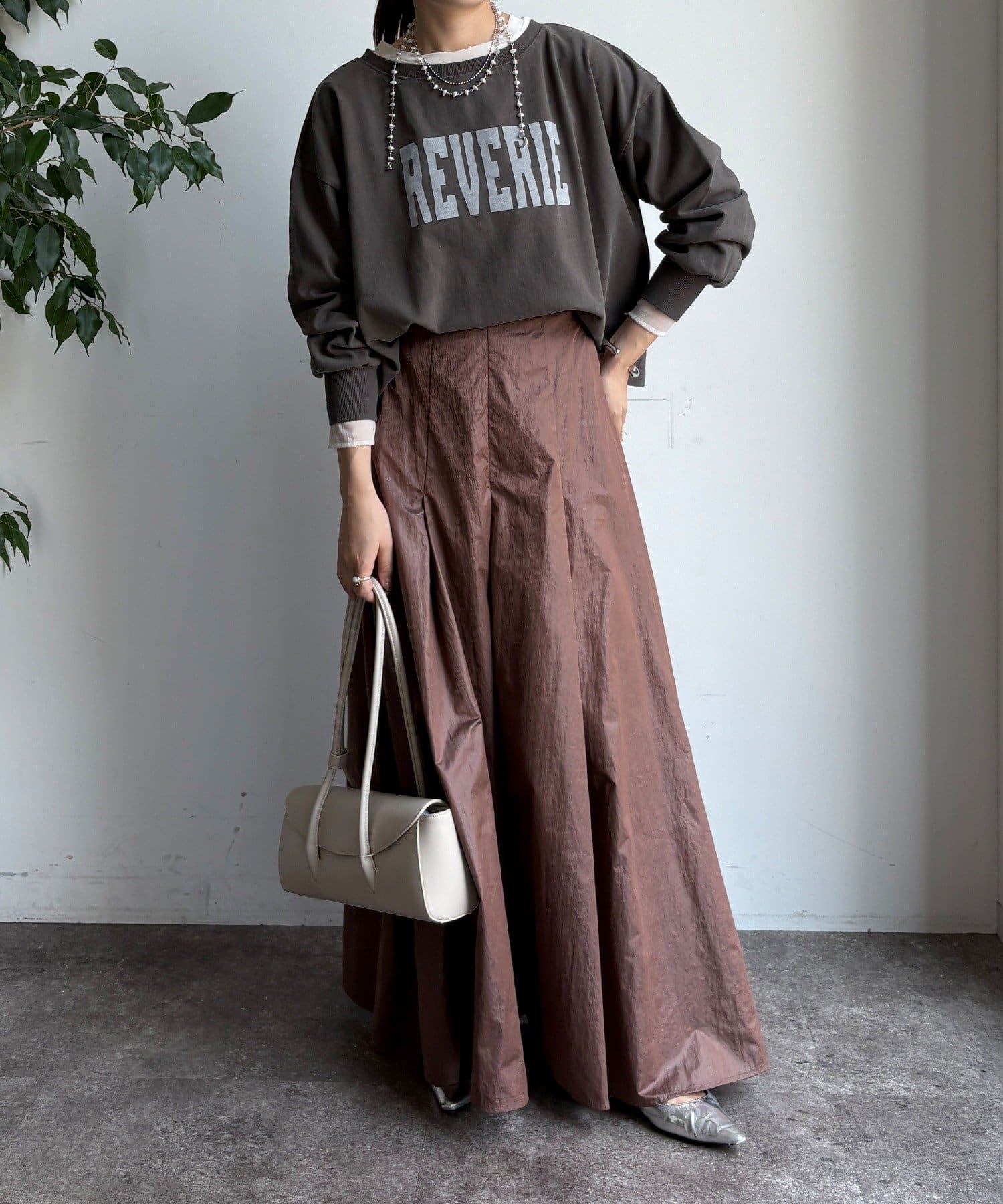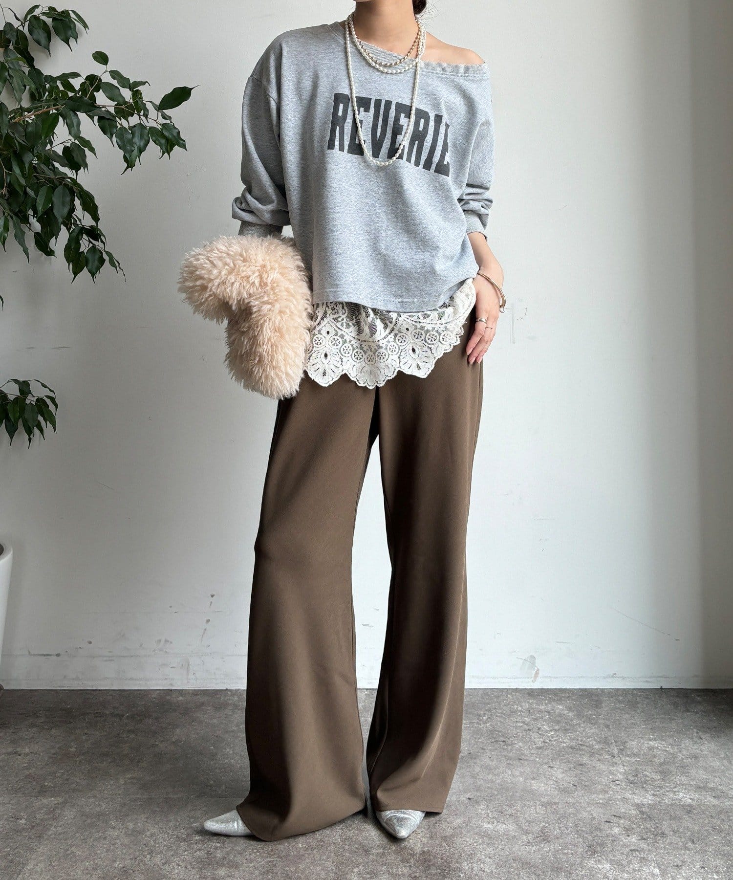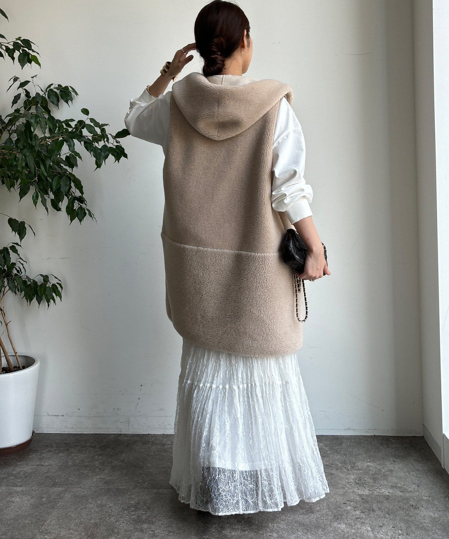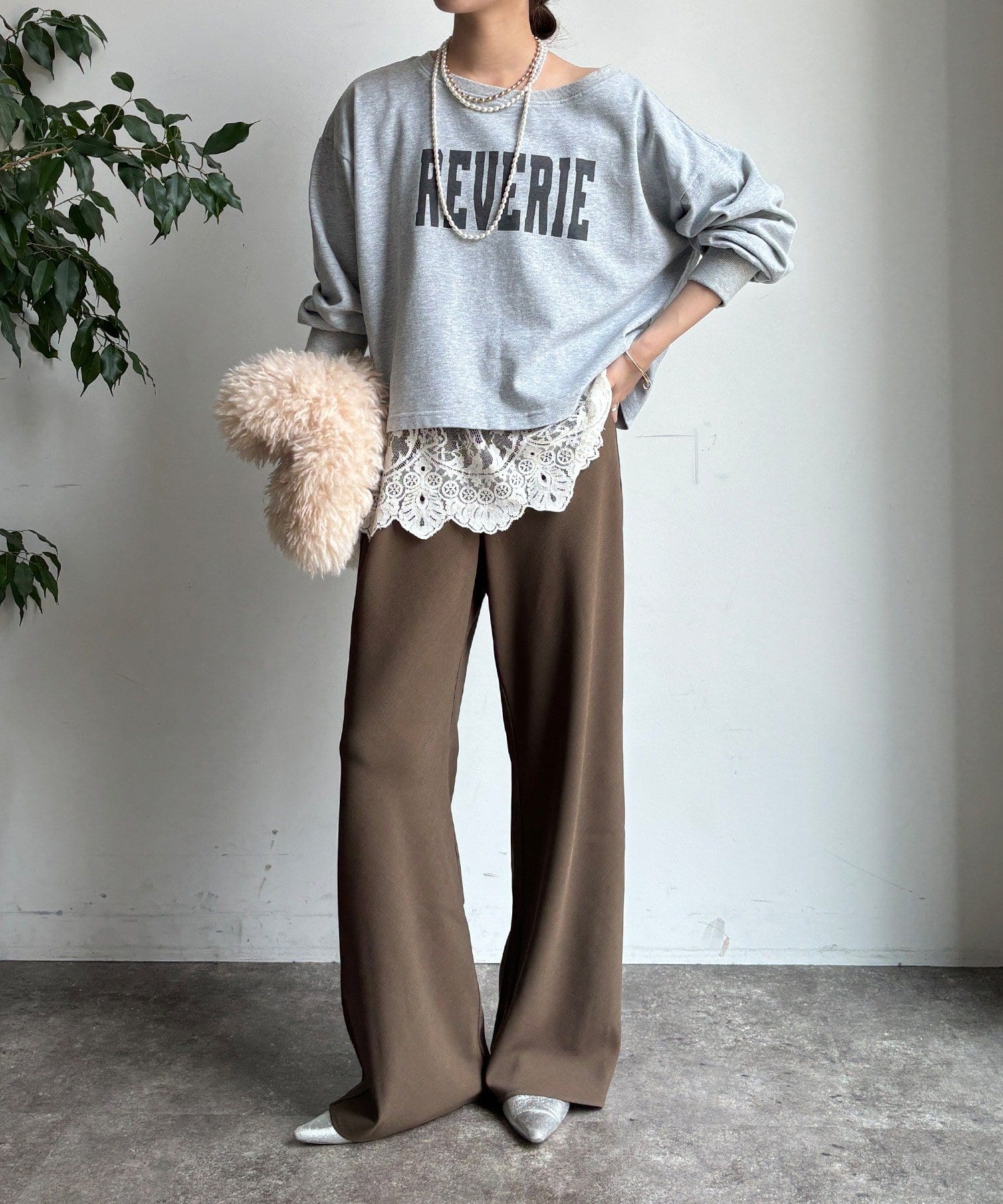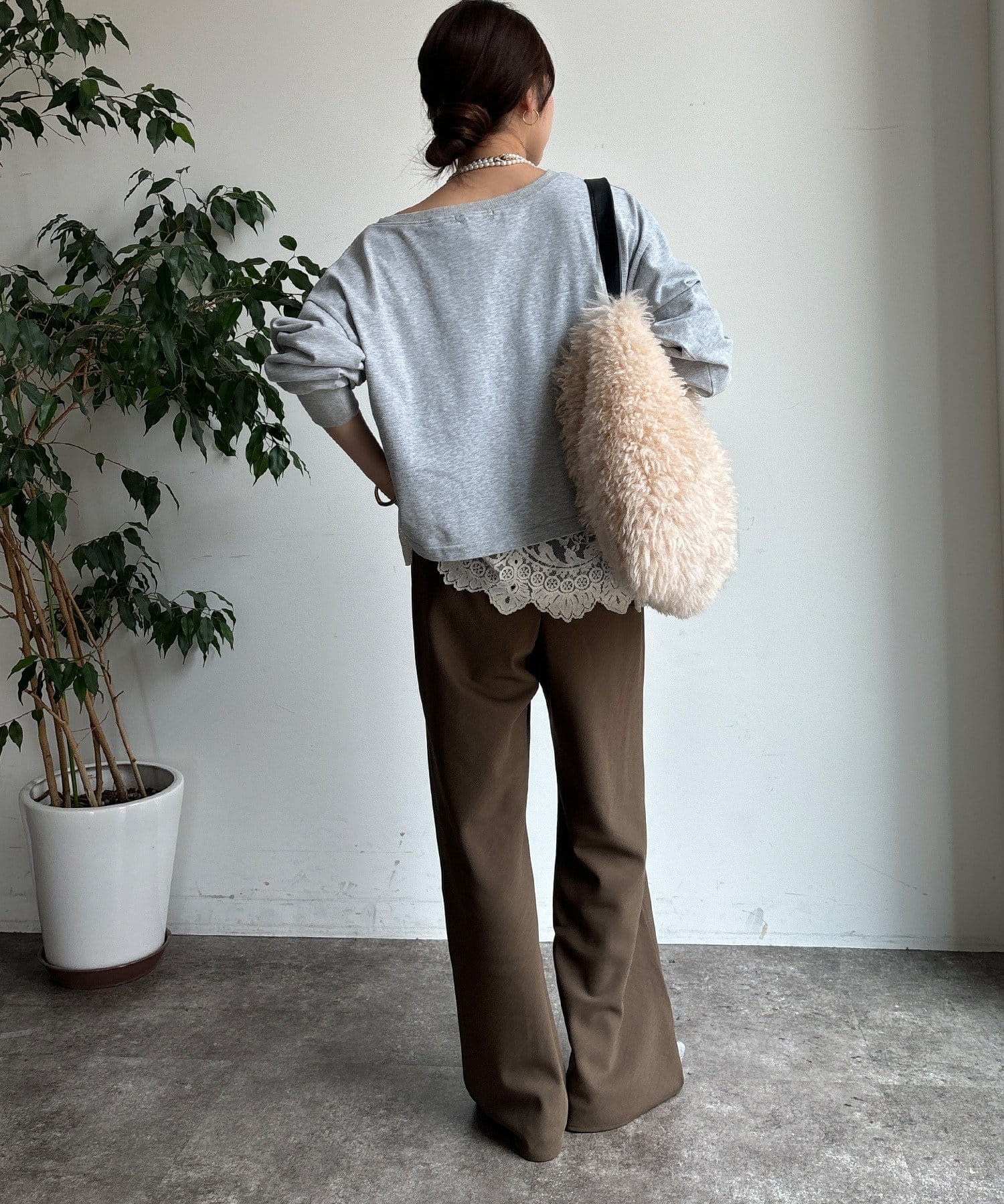 レーストップスなどをインナーに重ねて、レイヤードスタイルを楽しめます。