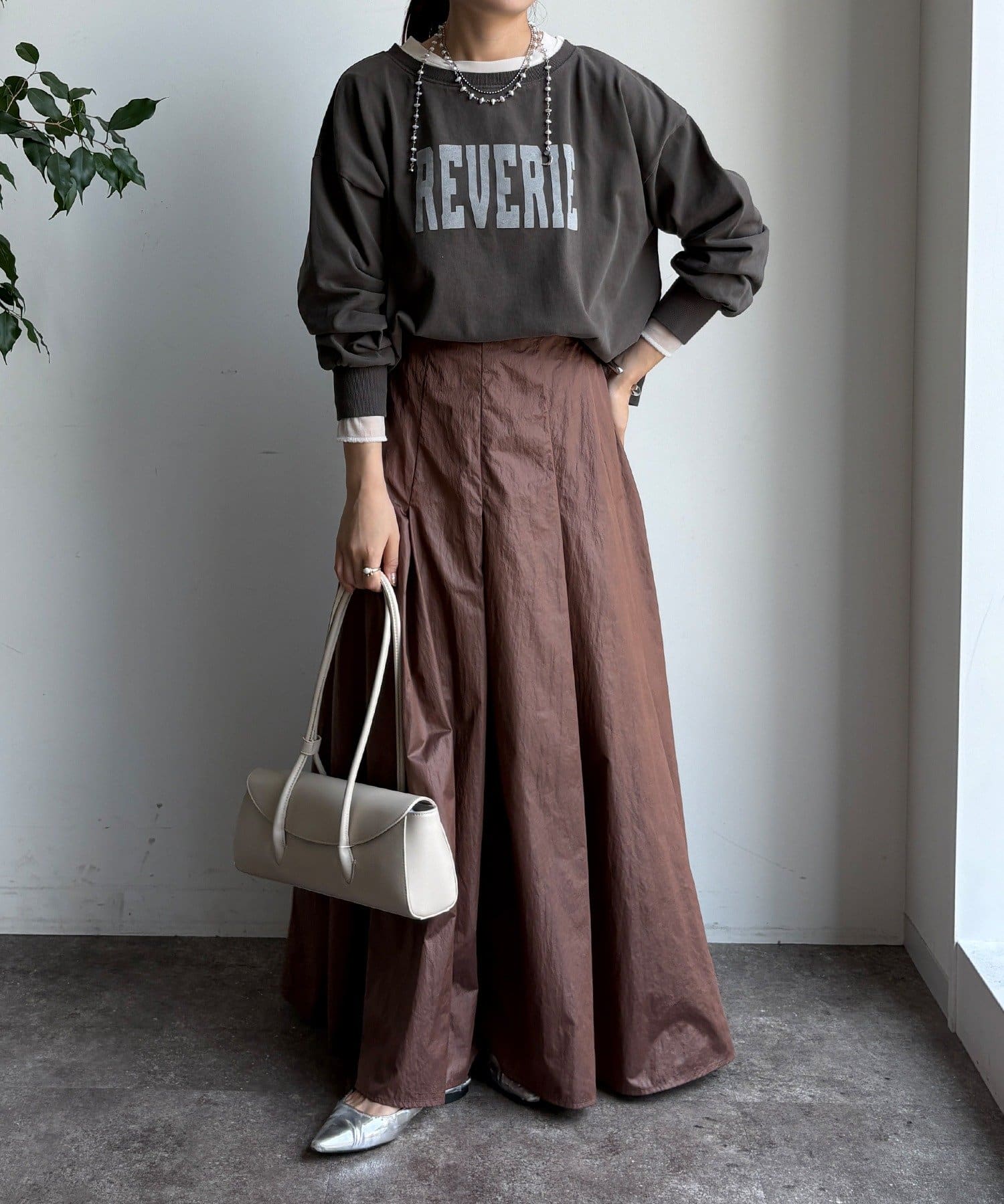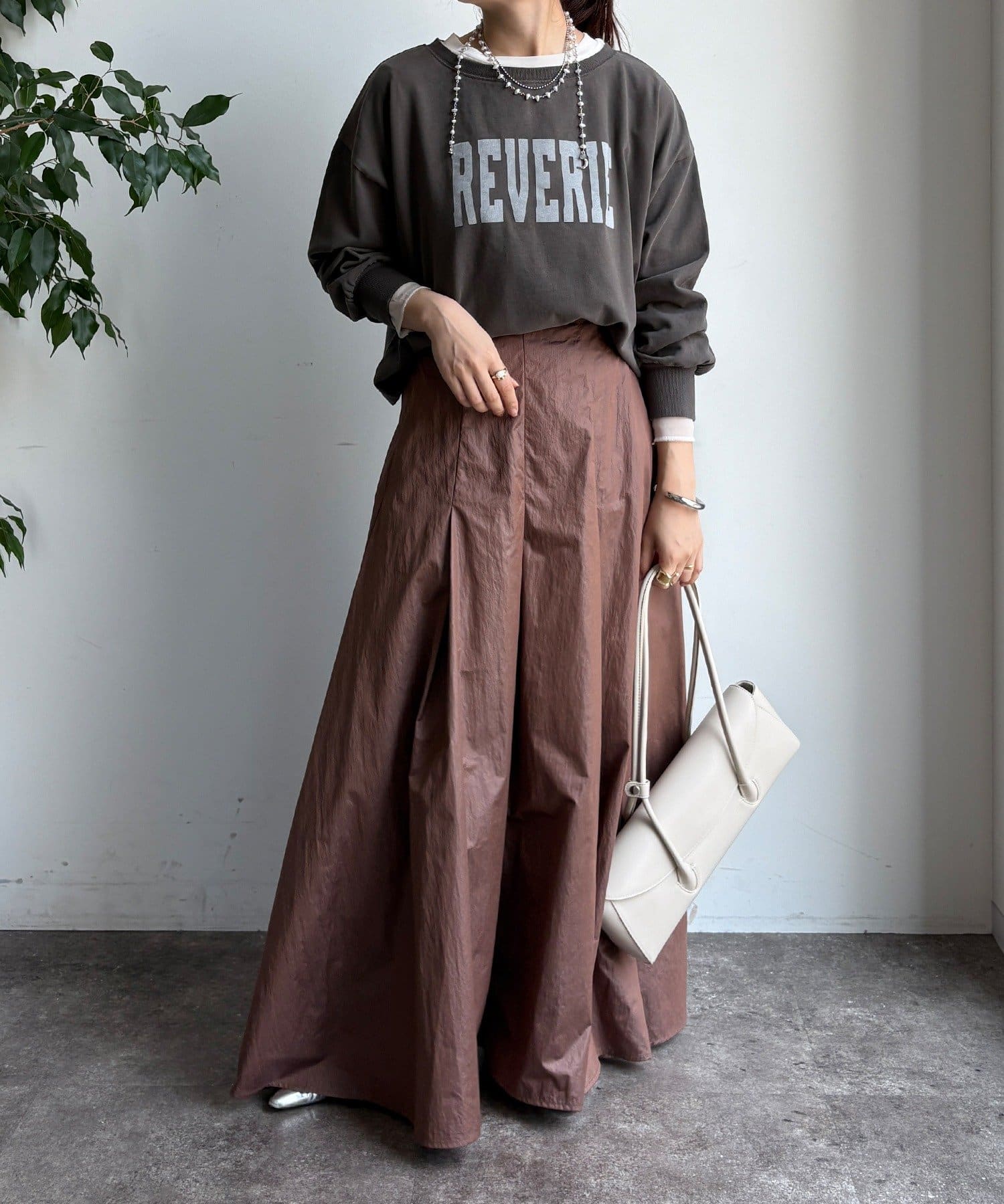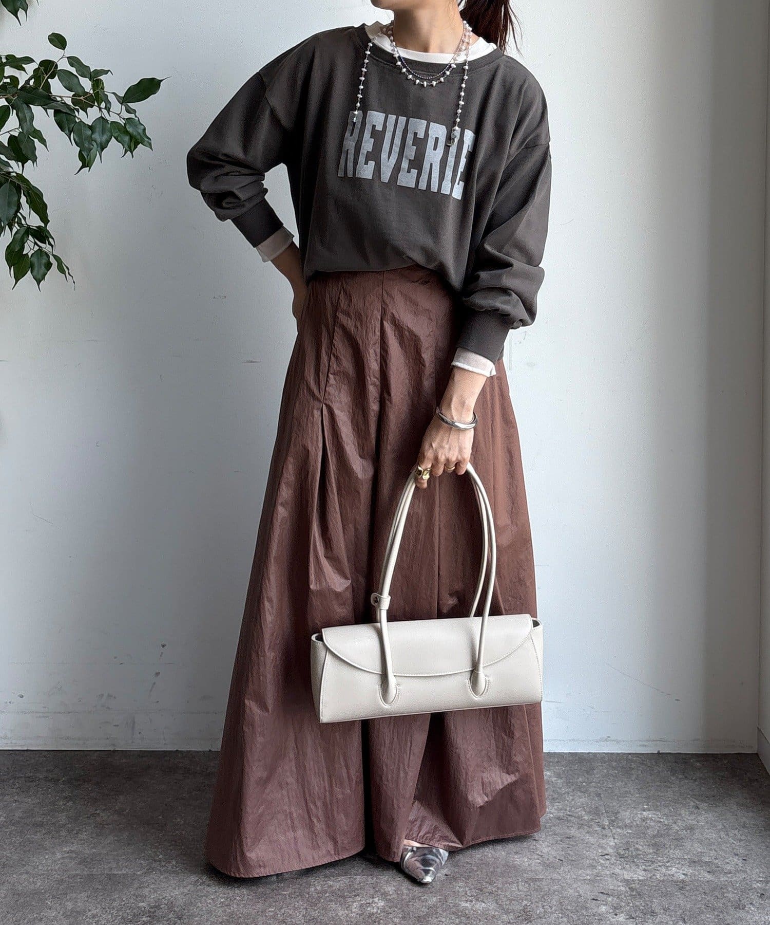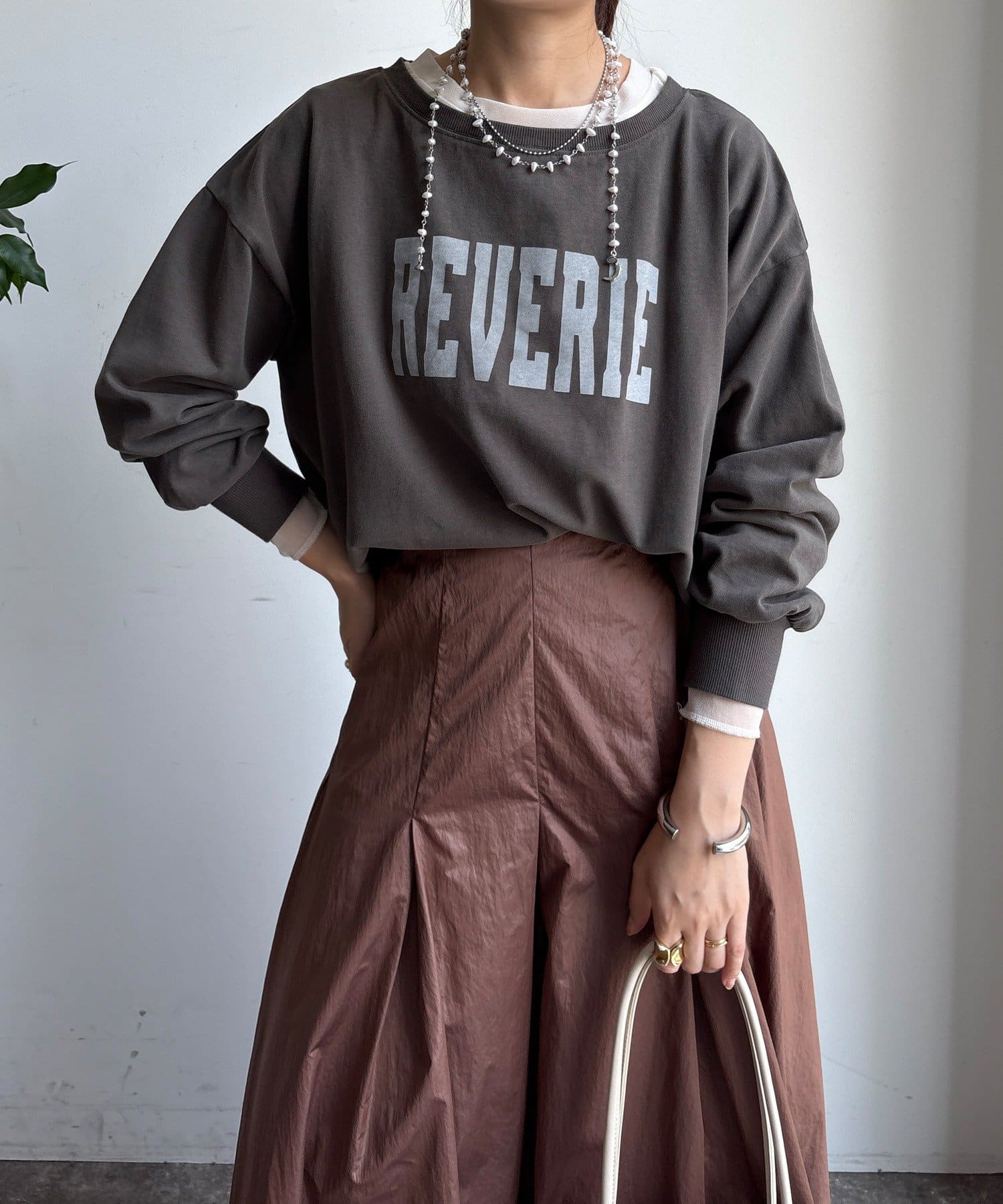 ラフなロゴデザインと、肩を落として着れるルーズなシルエットが、頑張りすぎない大人の余裕を演出。