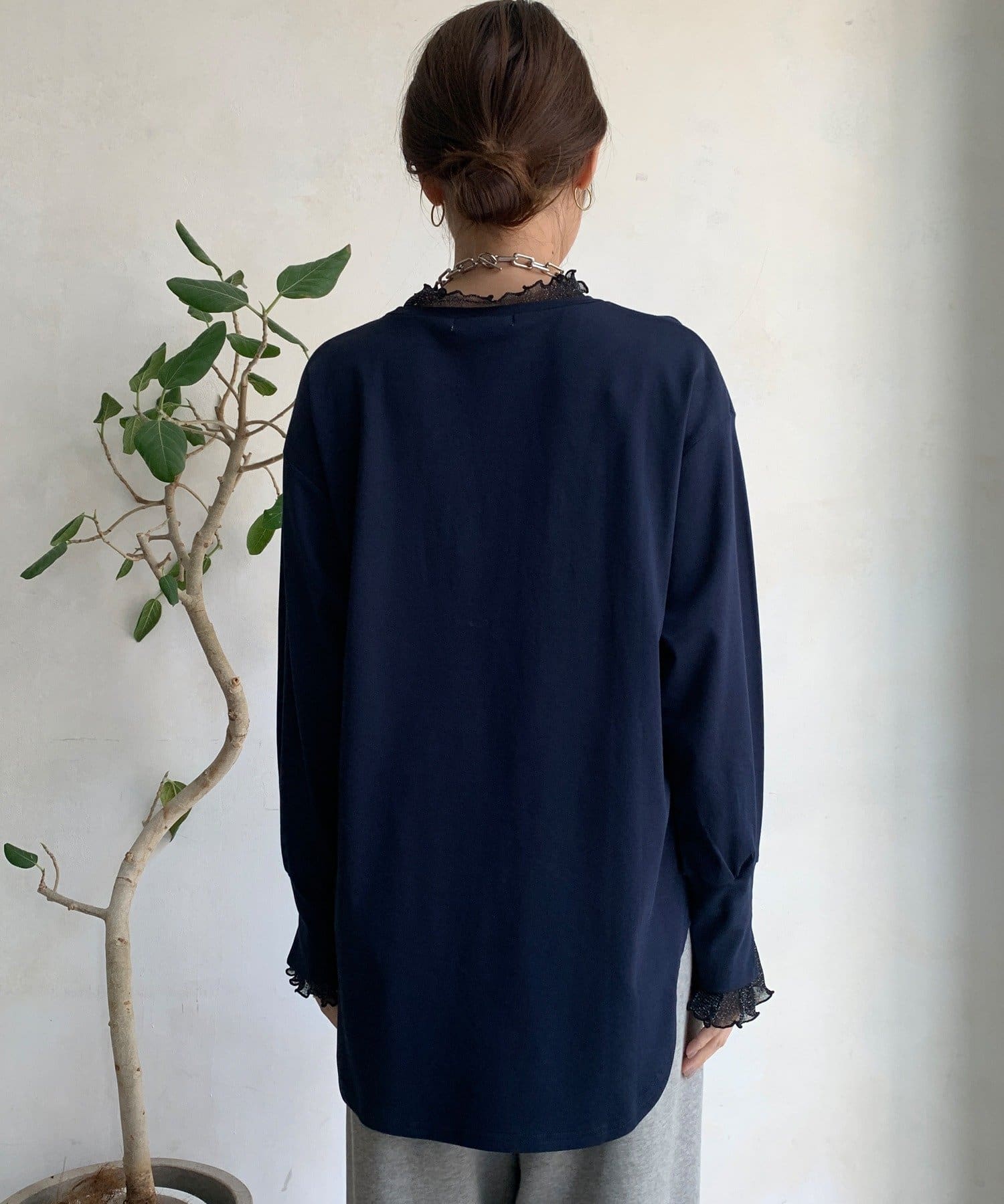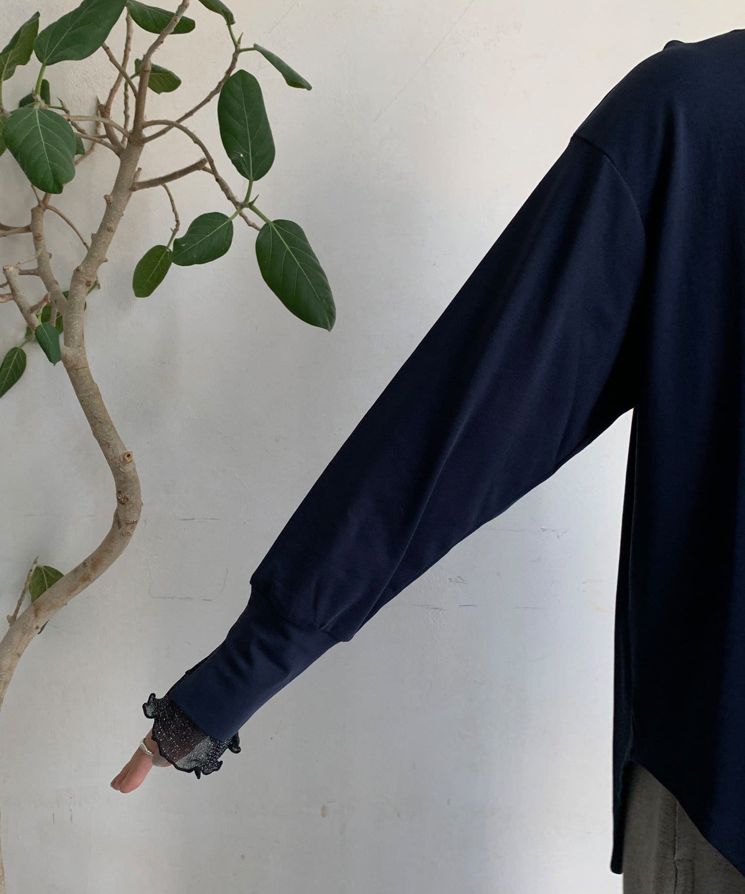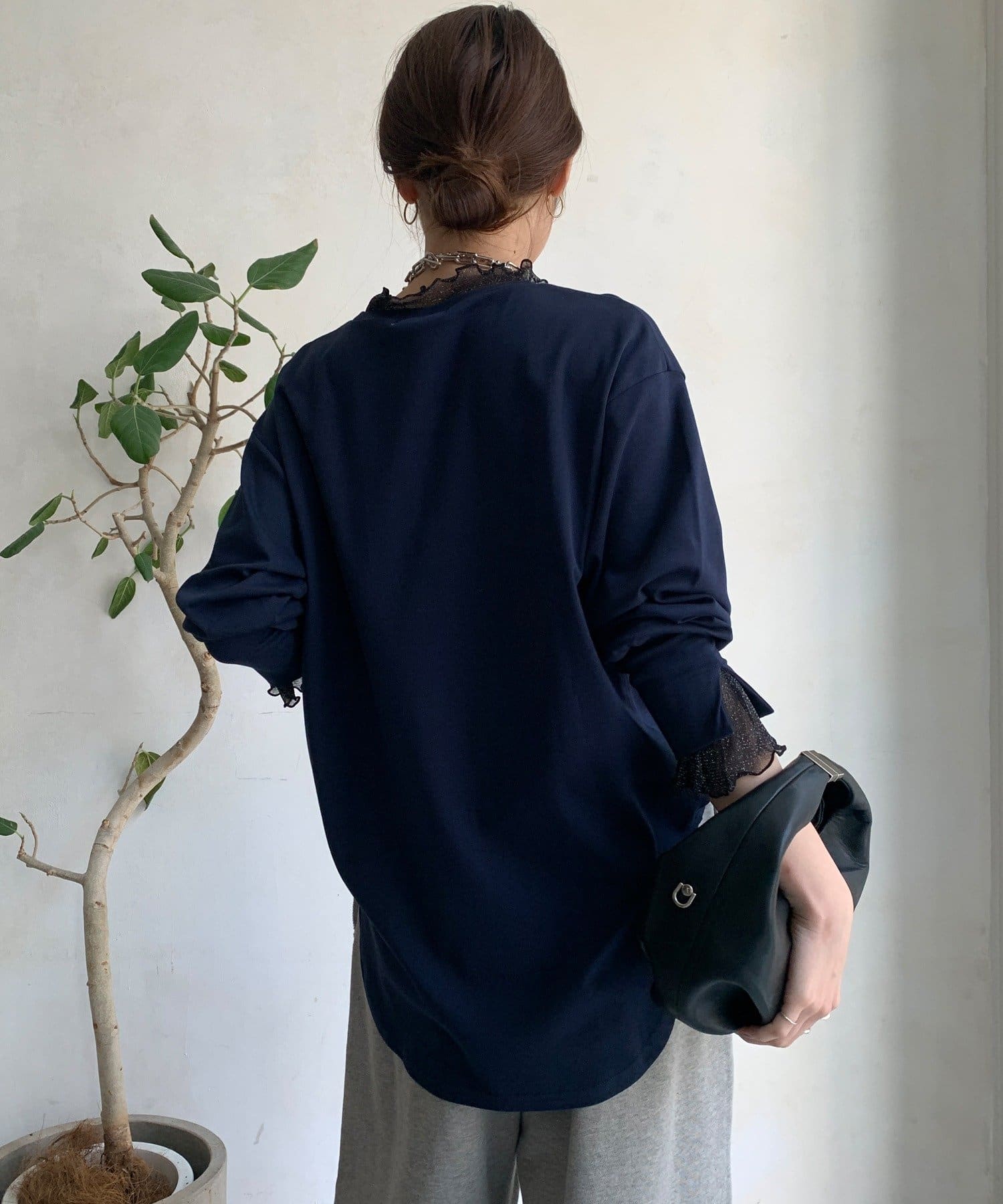 いつものカジュアルに、袖口にはレイヤード風デザインを加えたロンT。