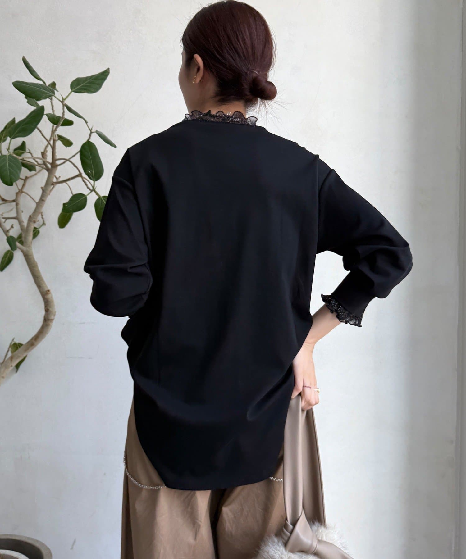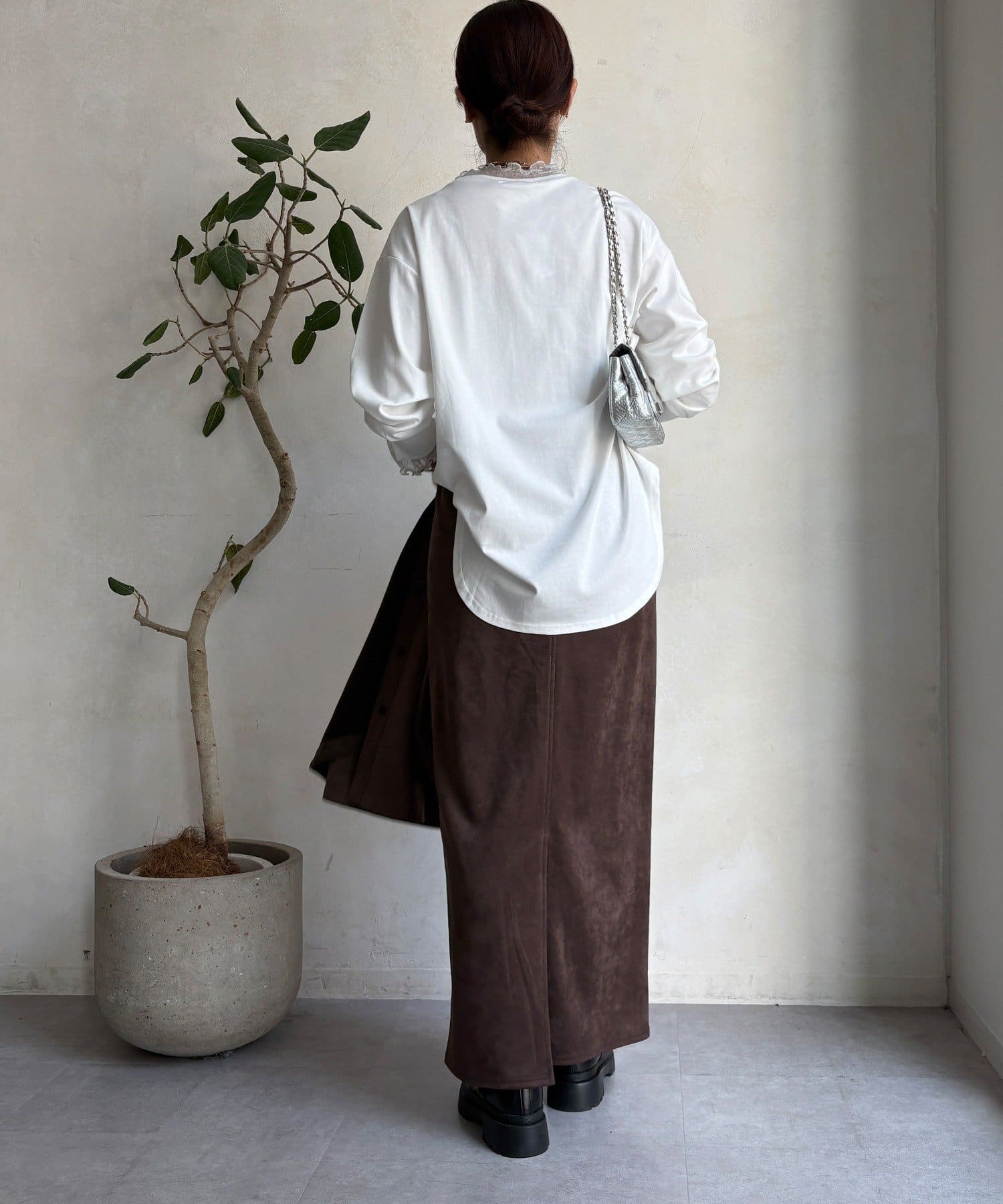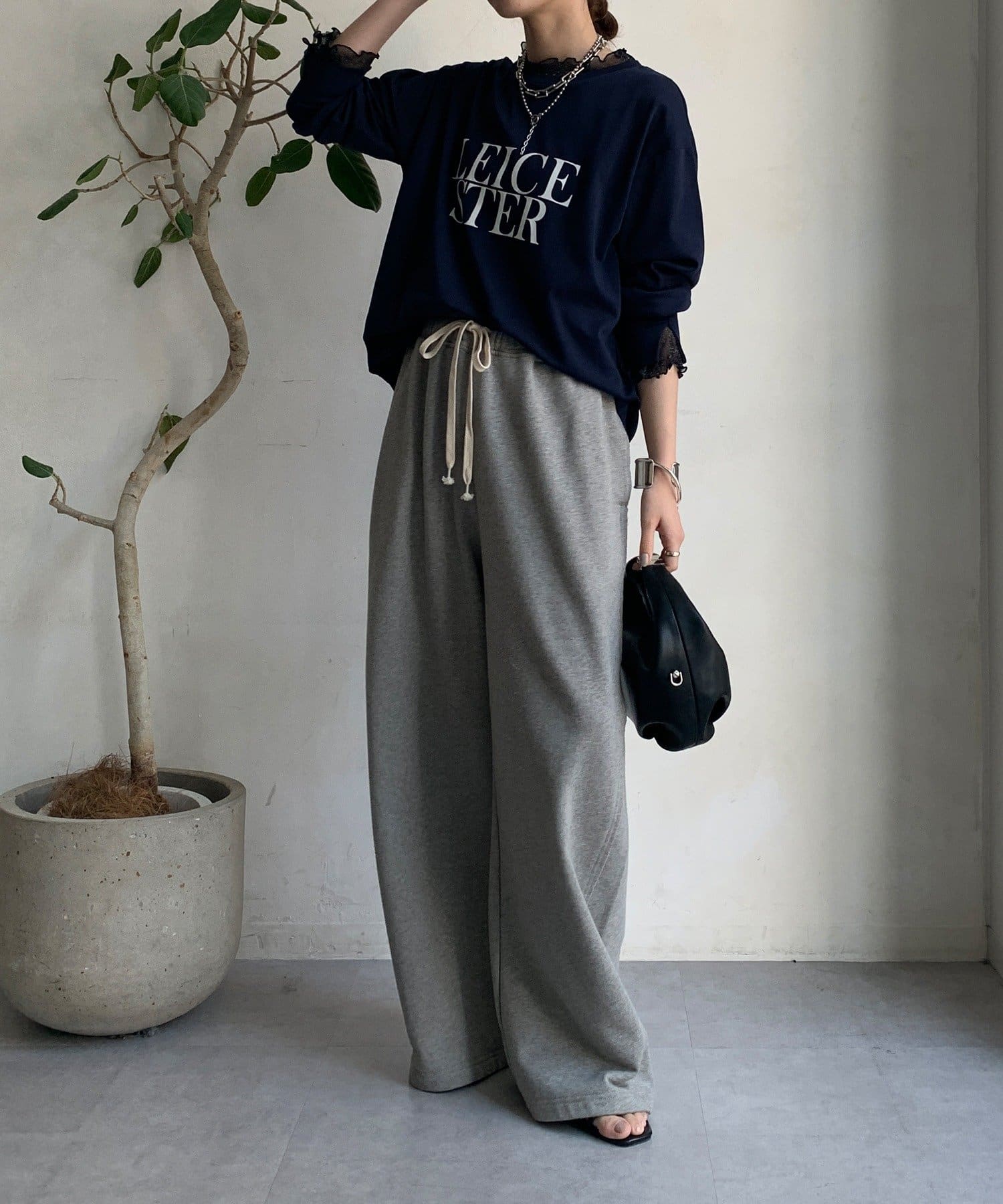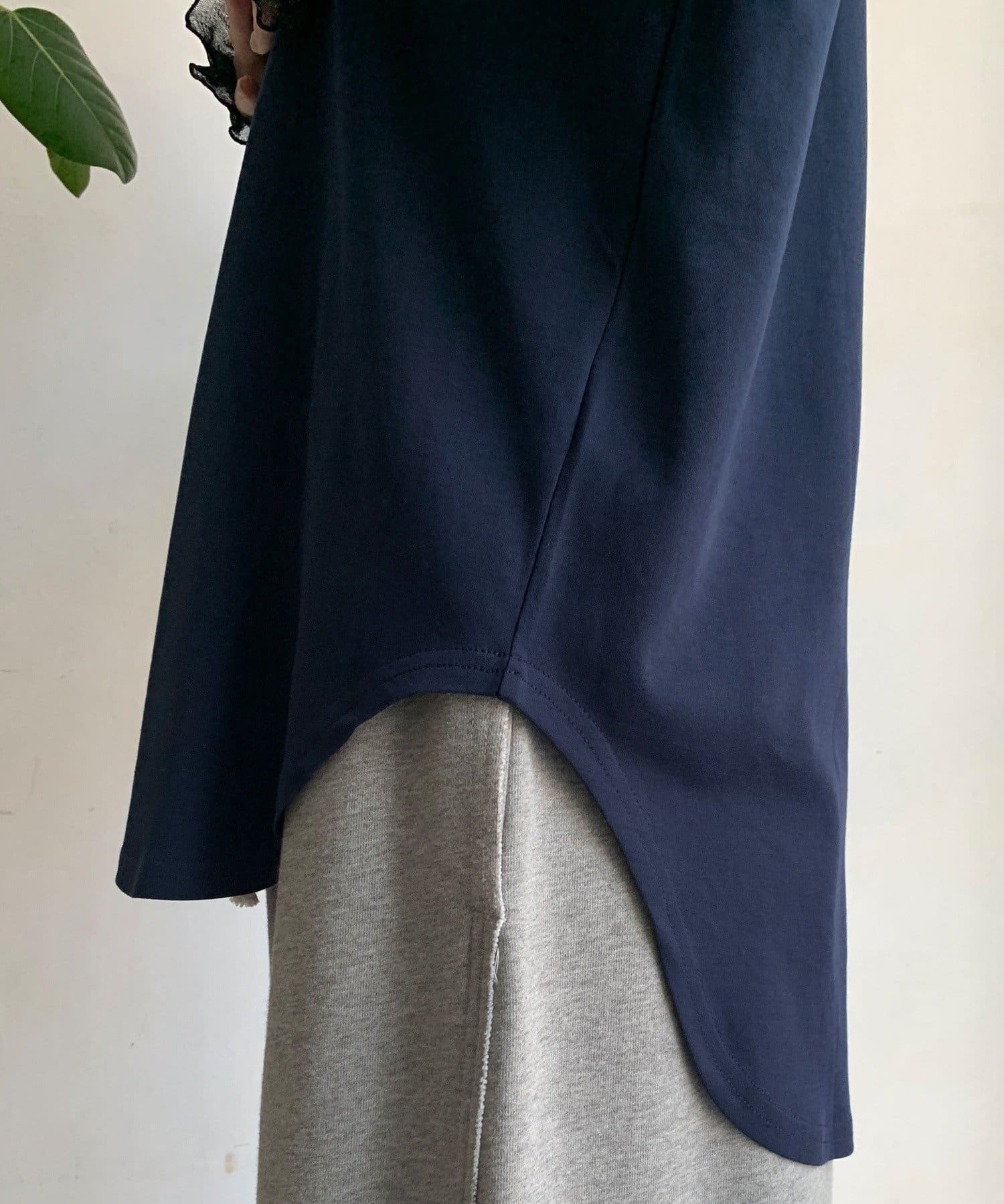 いつものカジュアルに、袖口にはレイヤード風デザインを加えたロンT。