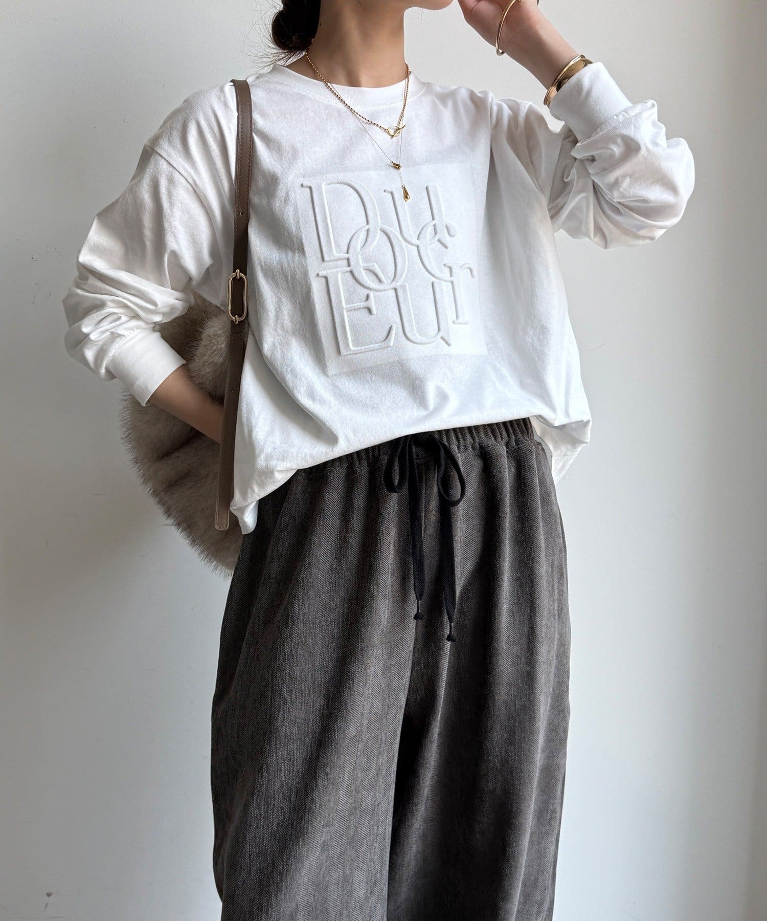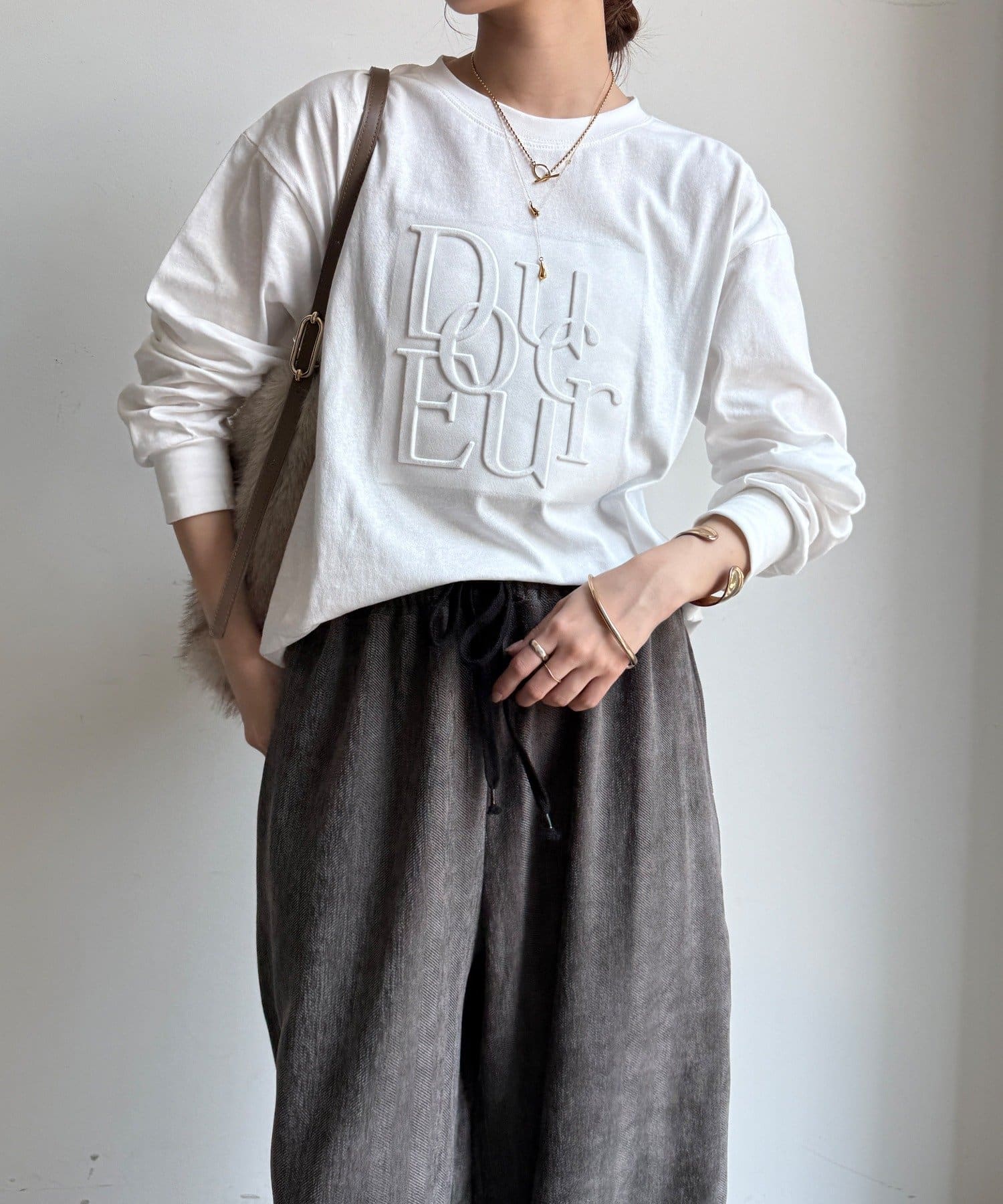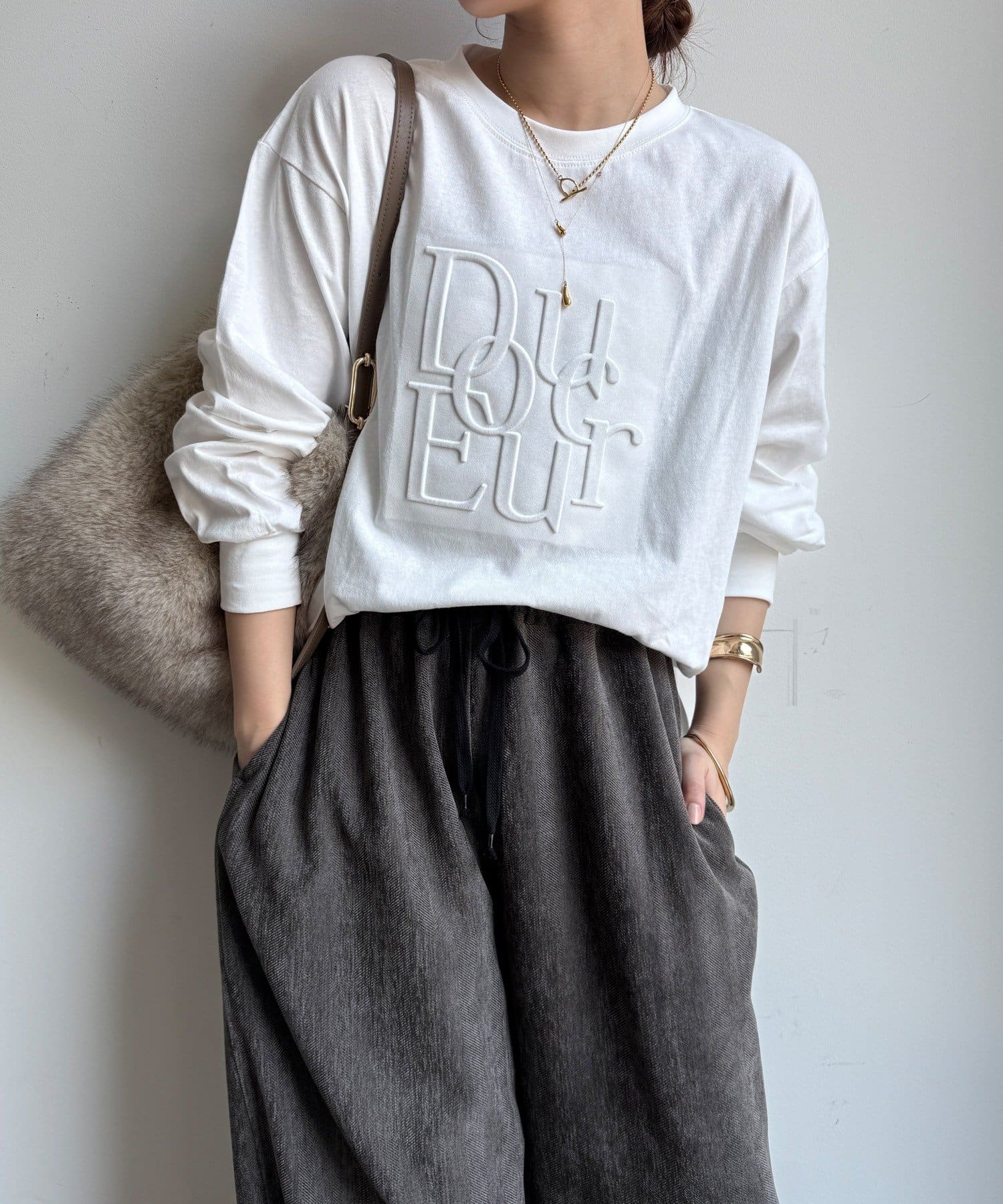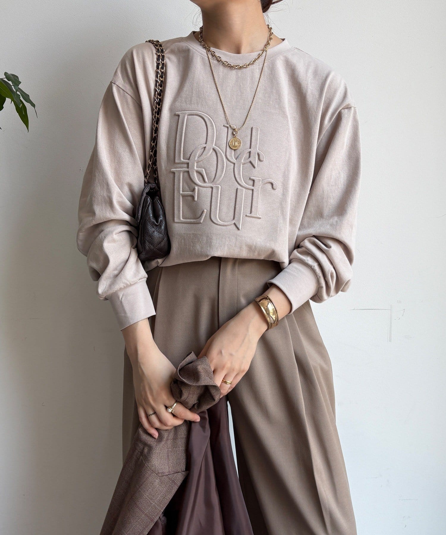エンボスロゴが魅力的な大人のこなれ感トップス