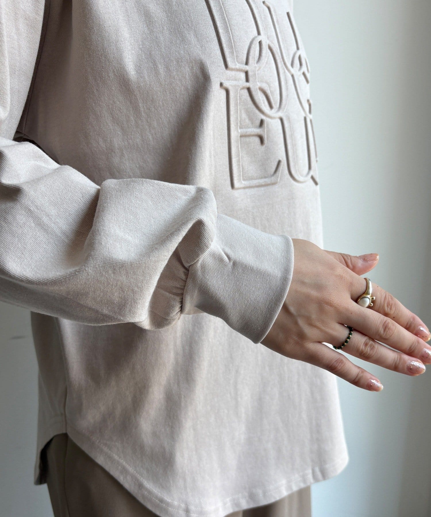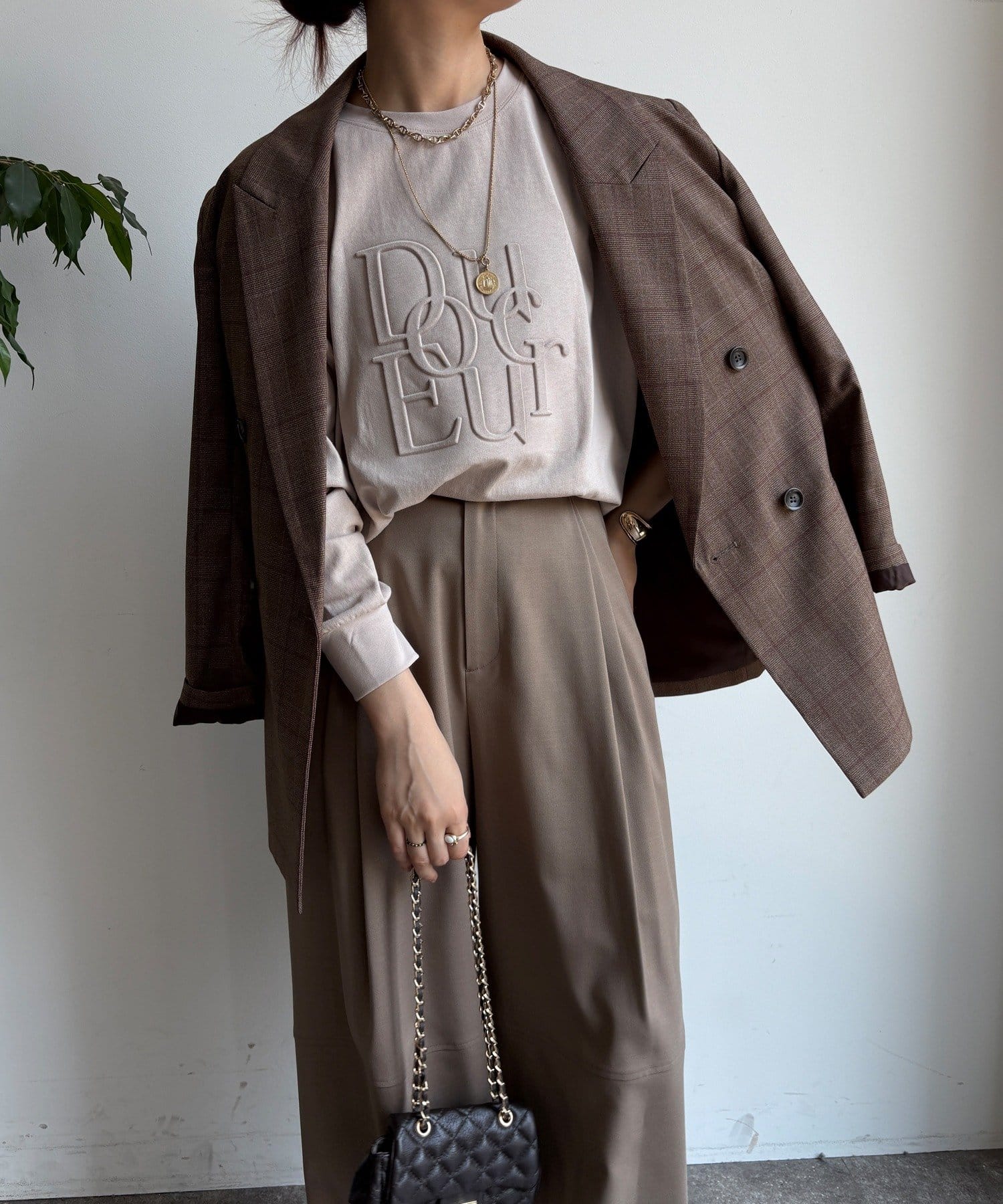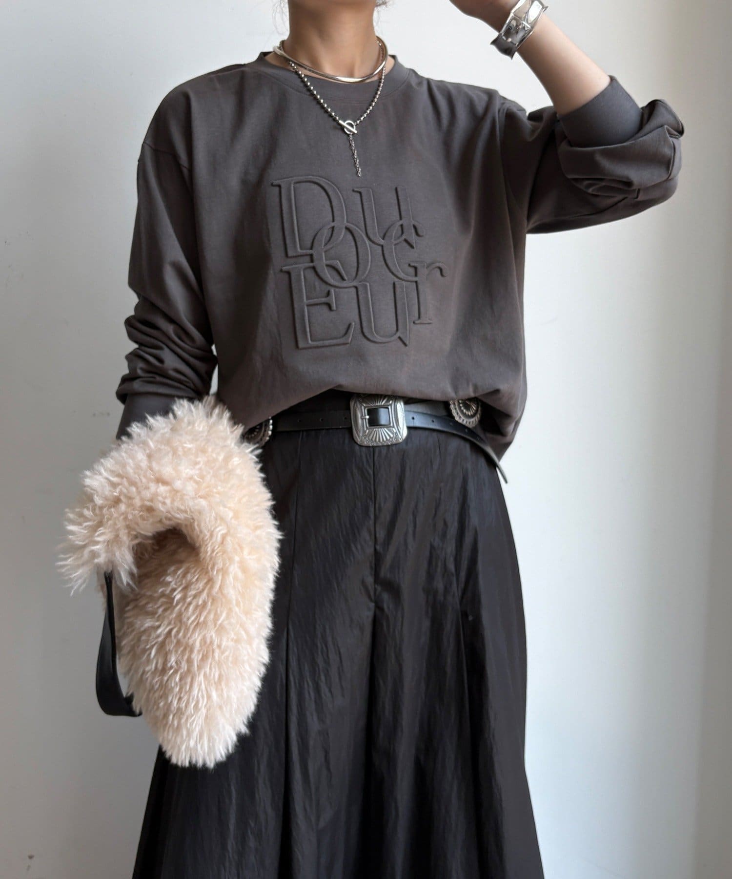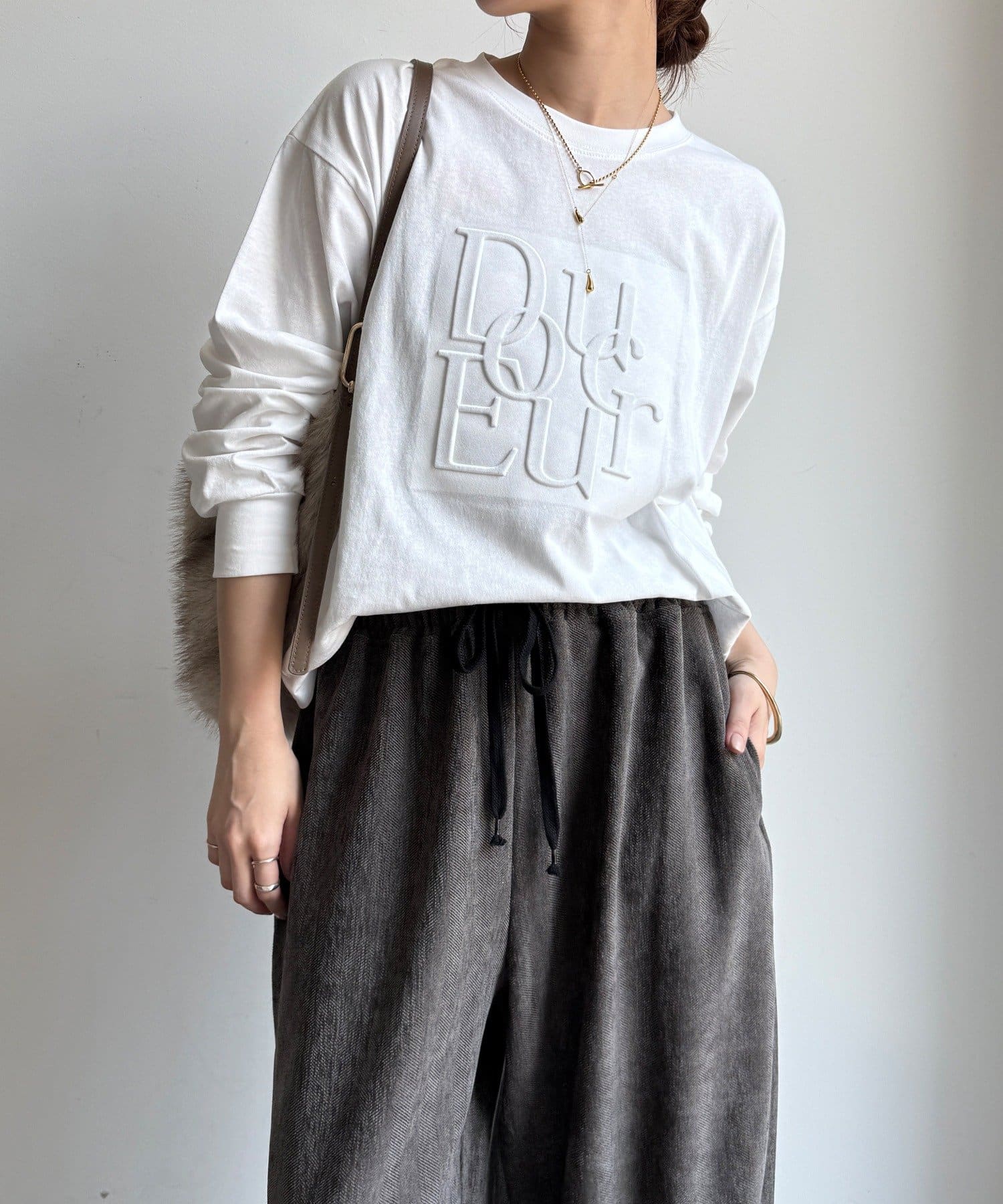 エンボスロゴが魅力的な大人のこなれ感トップス