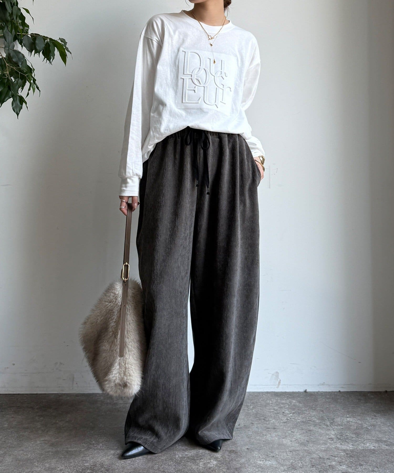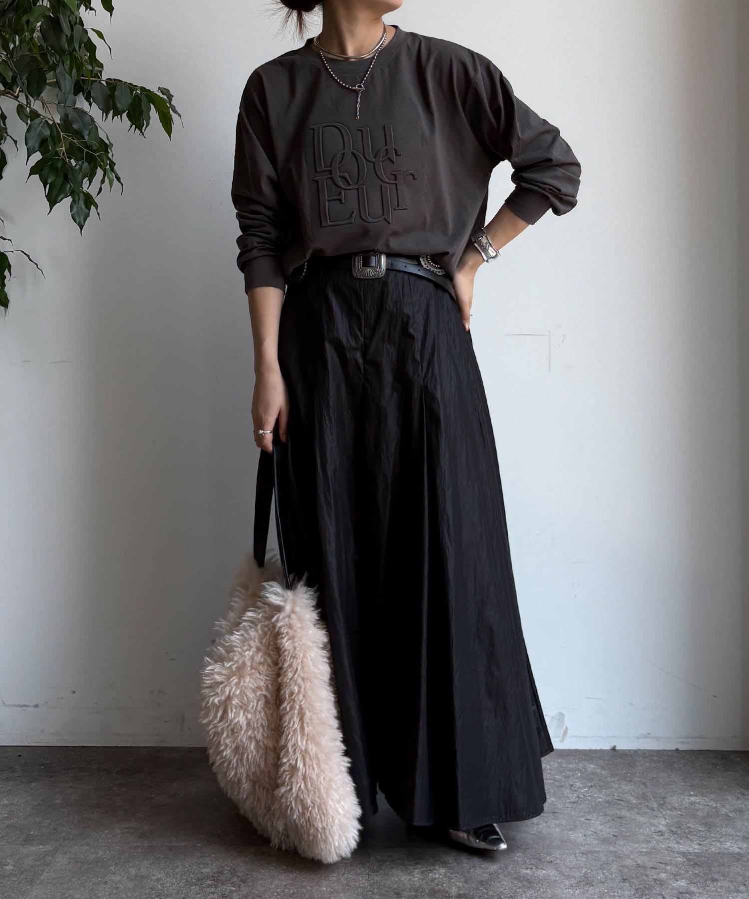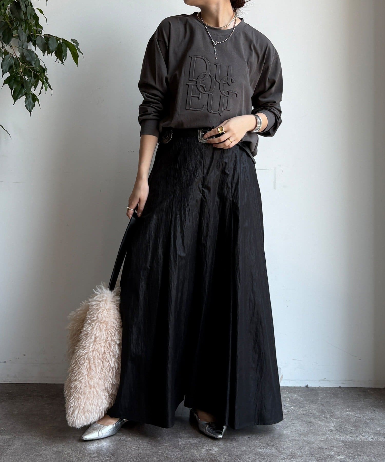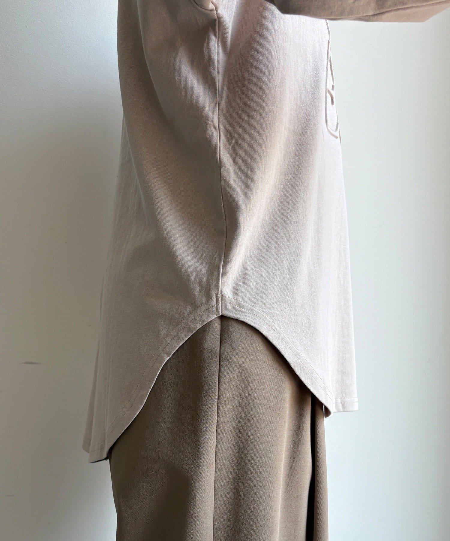 エンボスロゴが魅力的な大人のこなれ感トップス