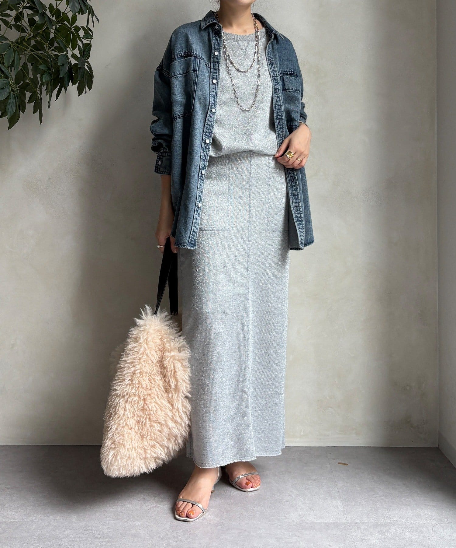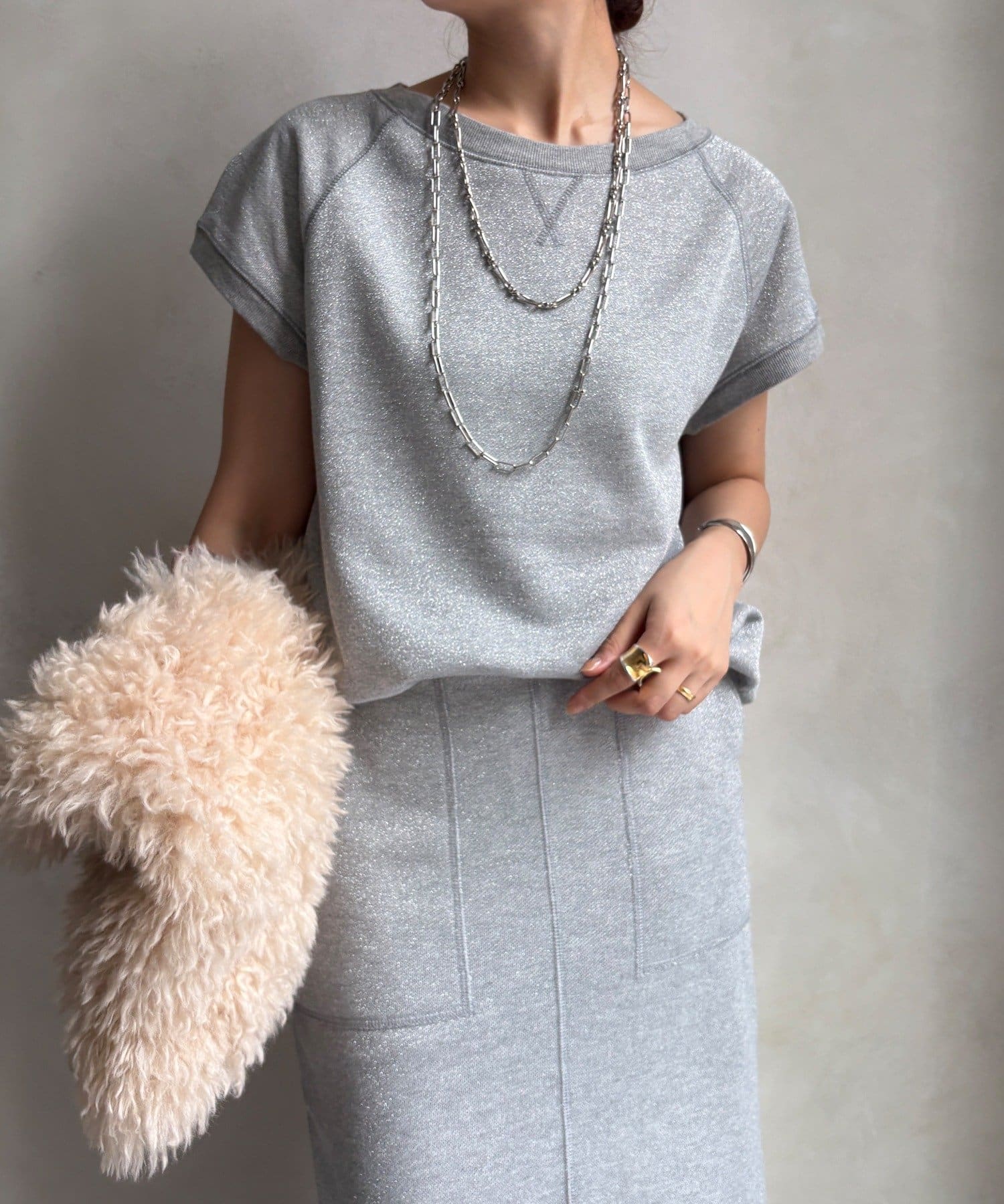 ラメ裏毛タイトスカートとセットアップで着るのがおすすめです◎