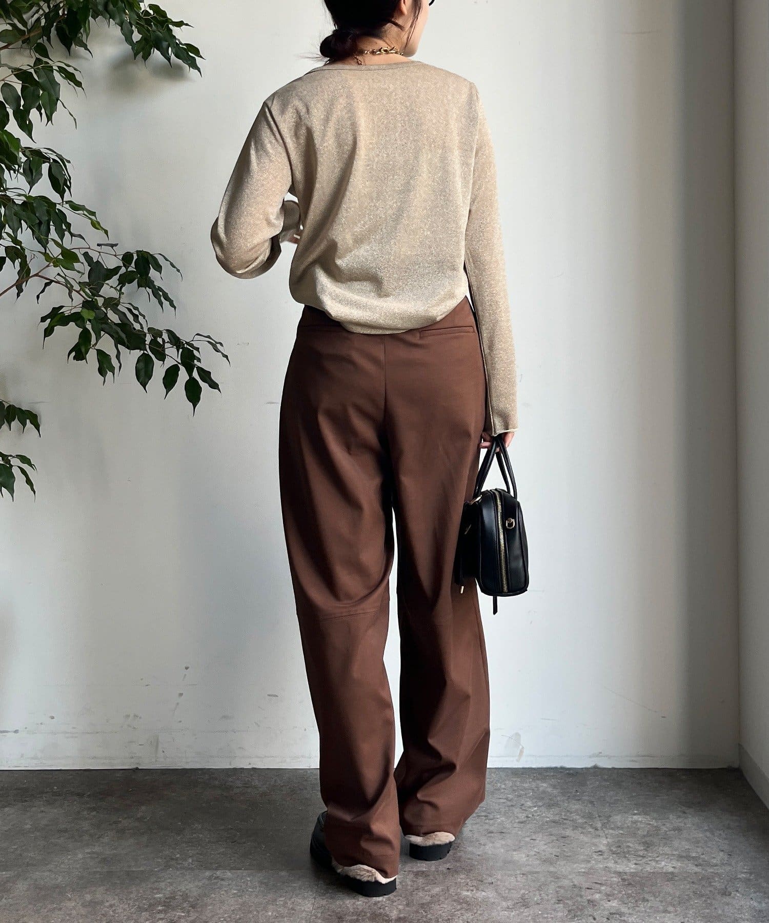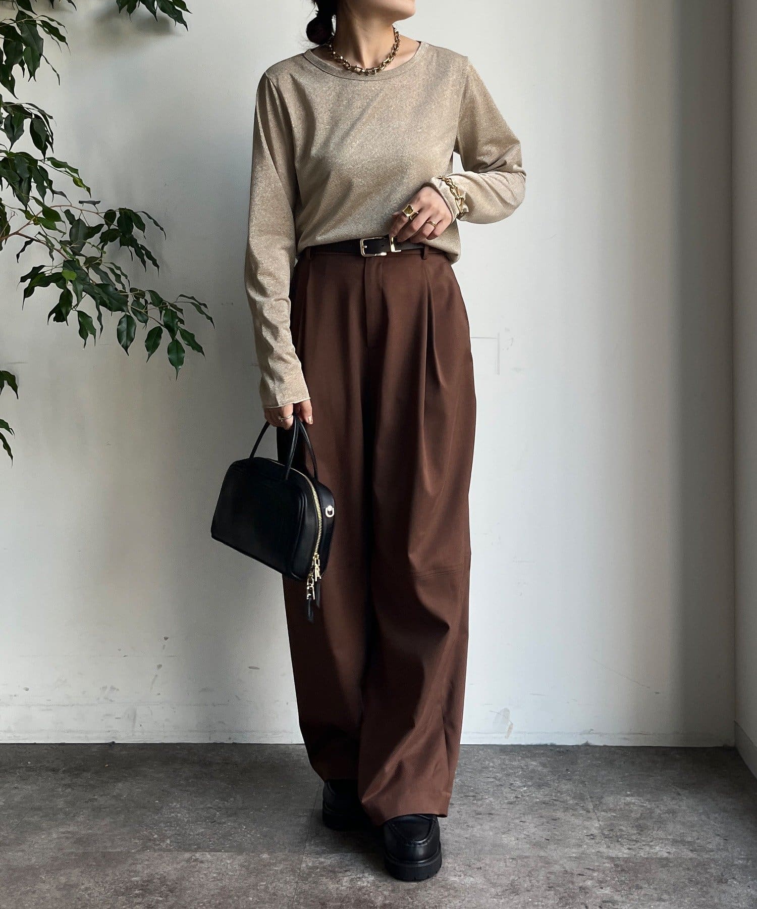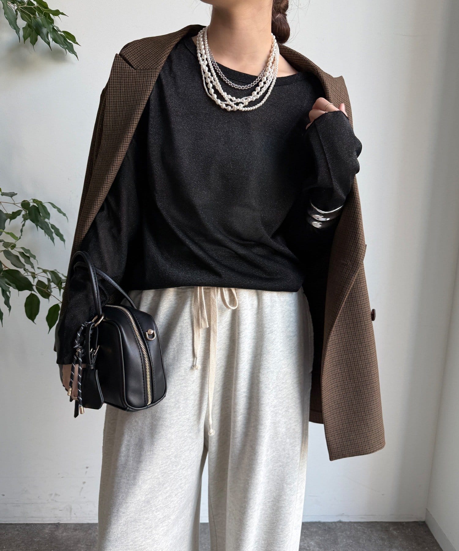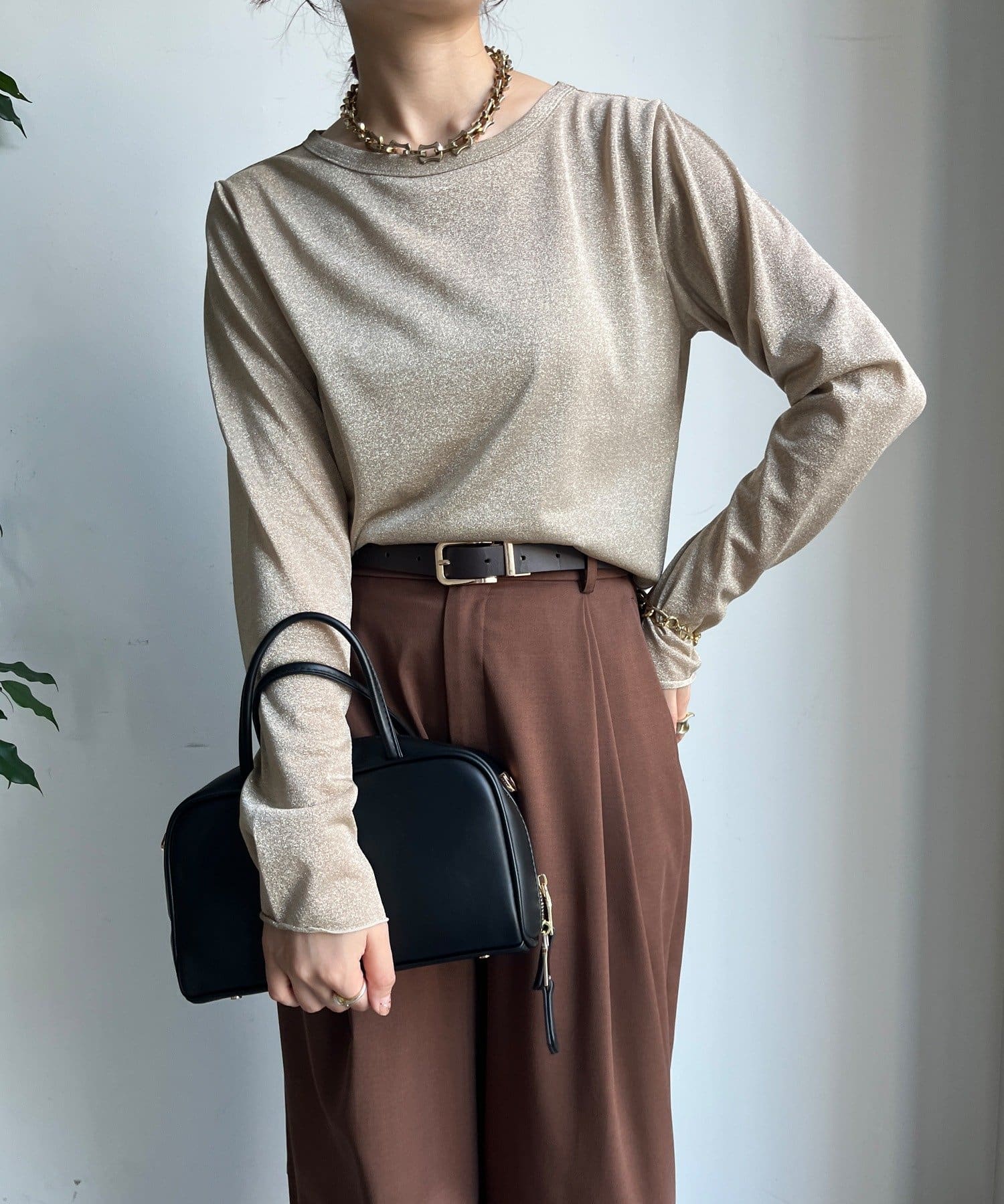シンプルなデザインながらも、ラメの素材感がコーディネートに奥行きをプラス。