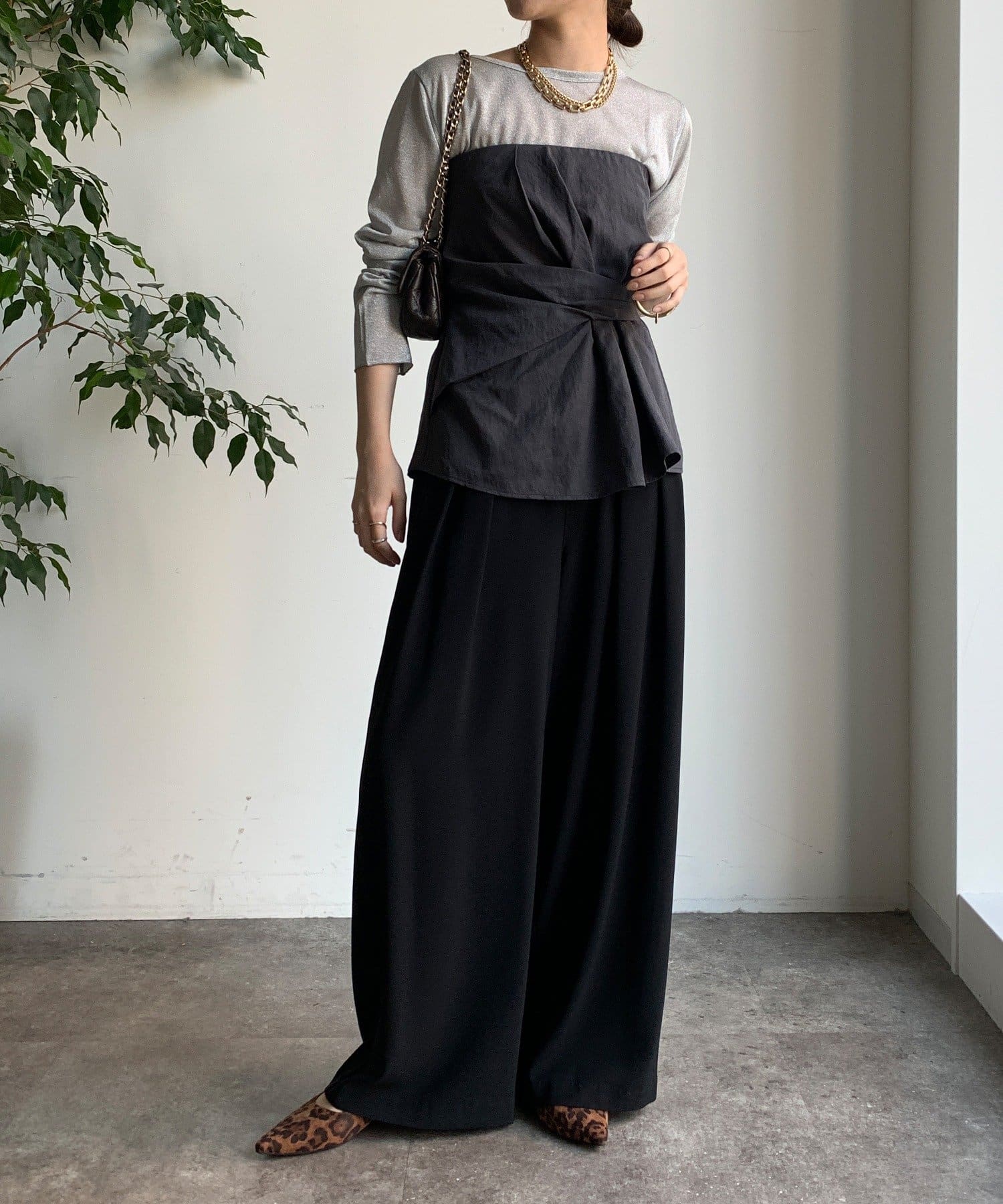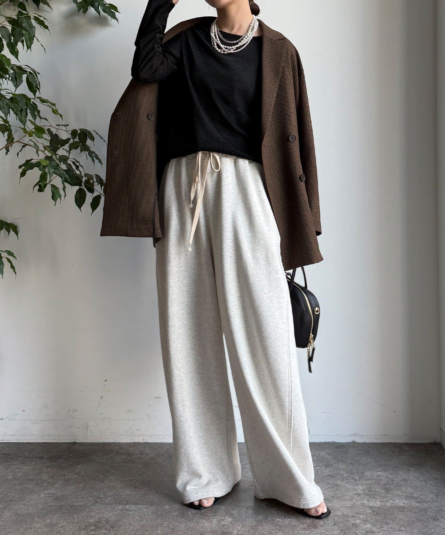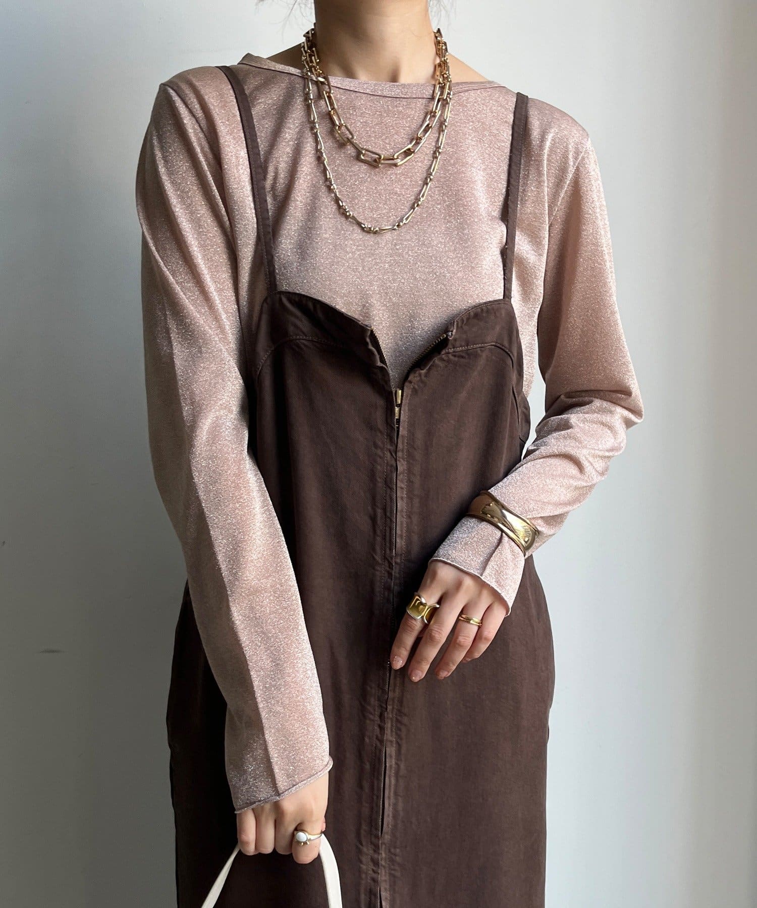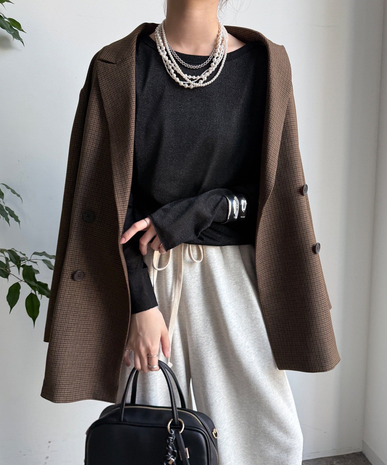 シンプルなデザインながらも、ラメの素材感がコーディネートに奥行きをプラス。