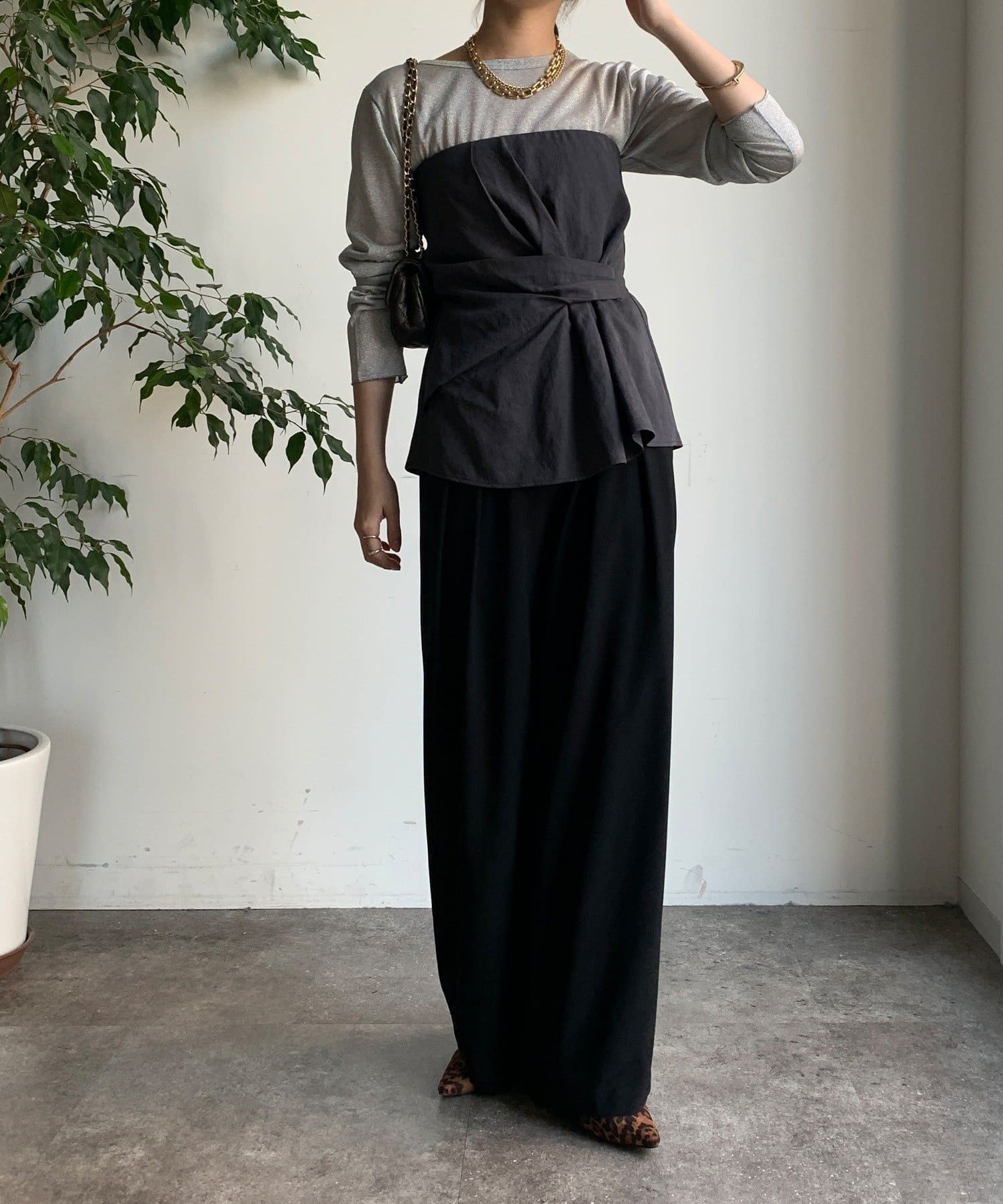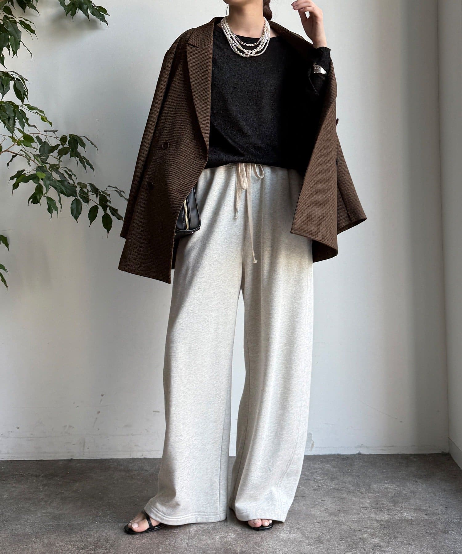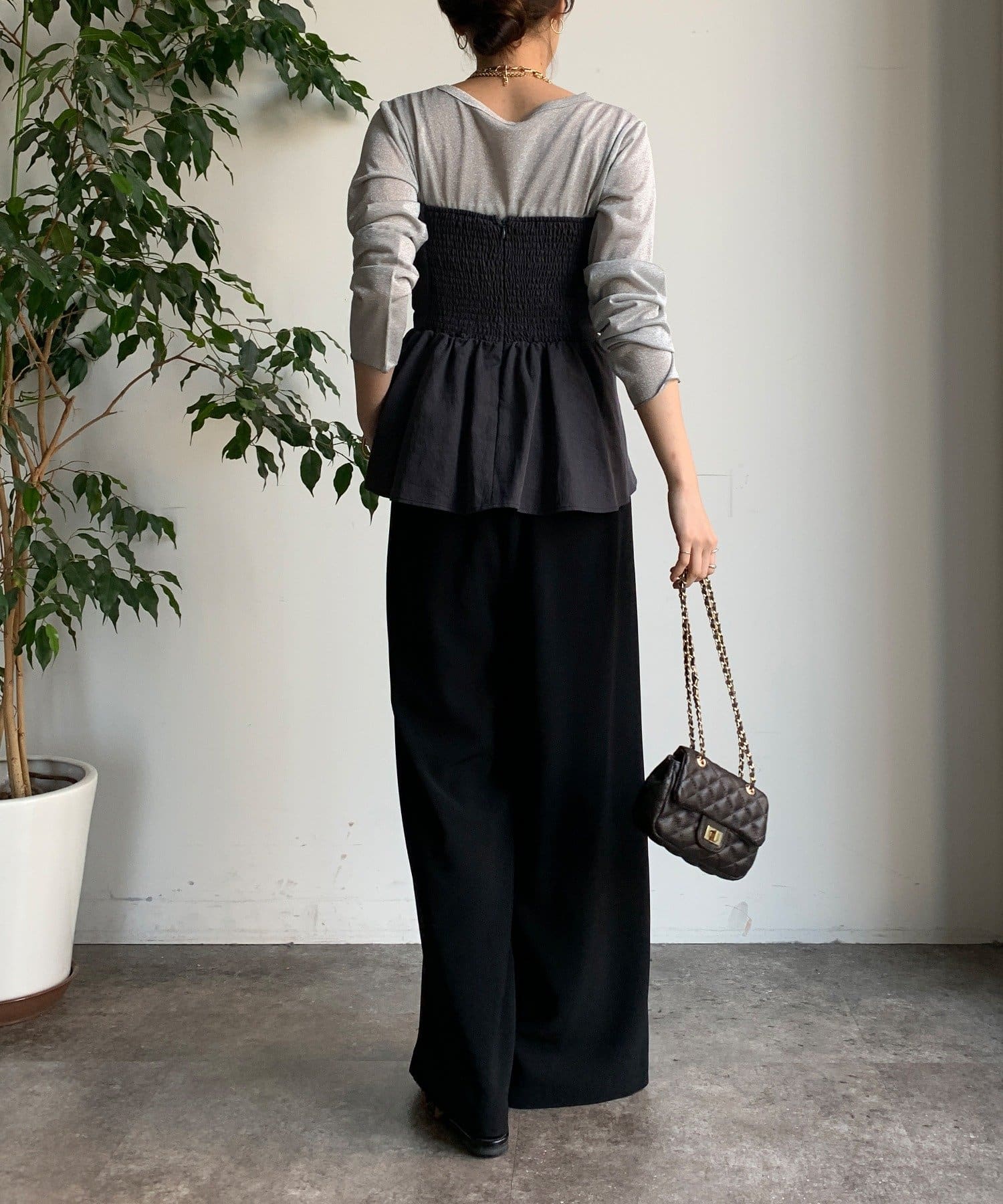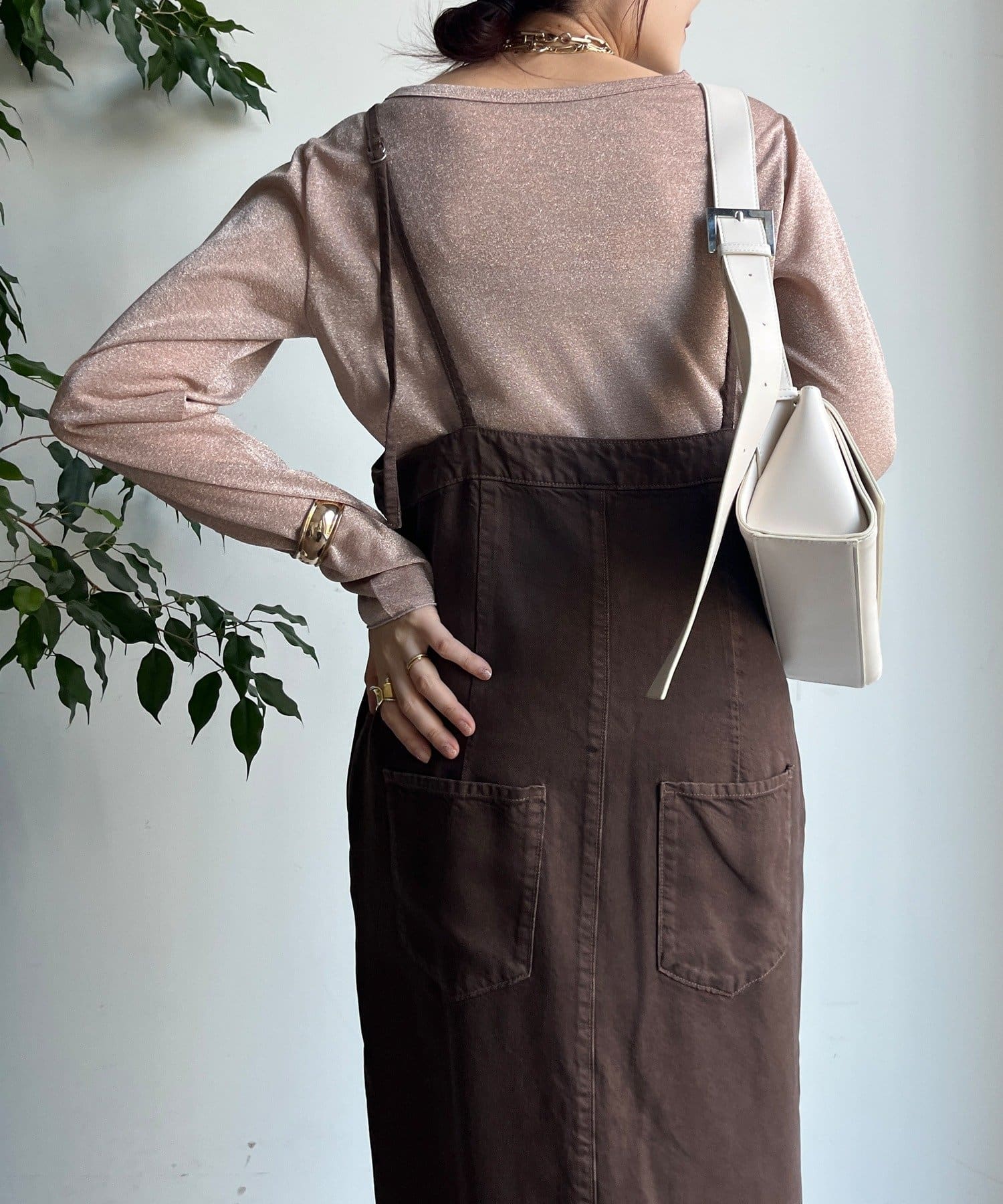 シンプルなデザインながらも、ラメの素材感がコーディネートに奥行きをプラス。