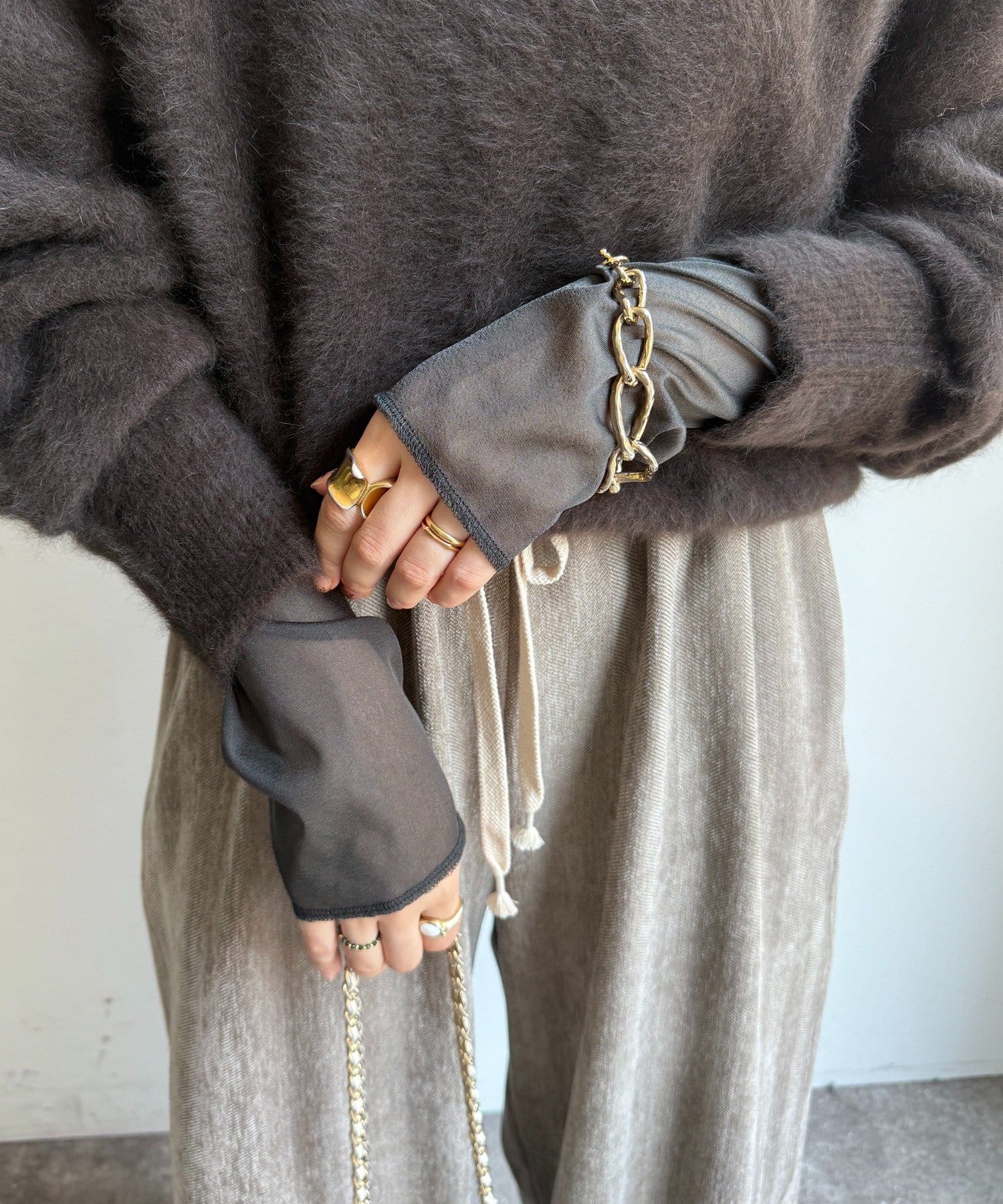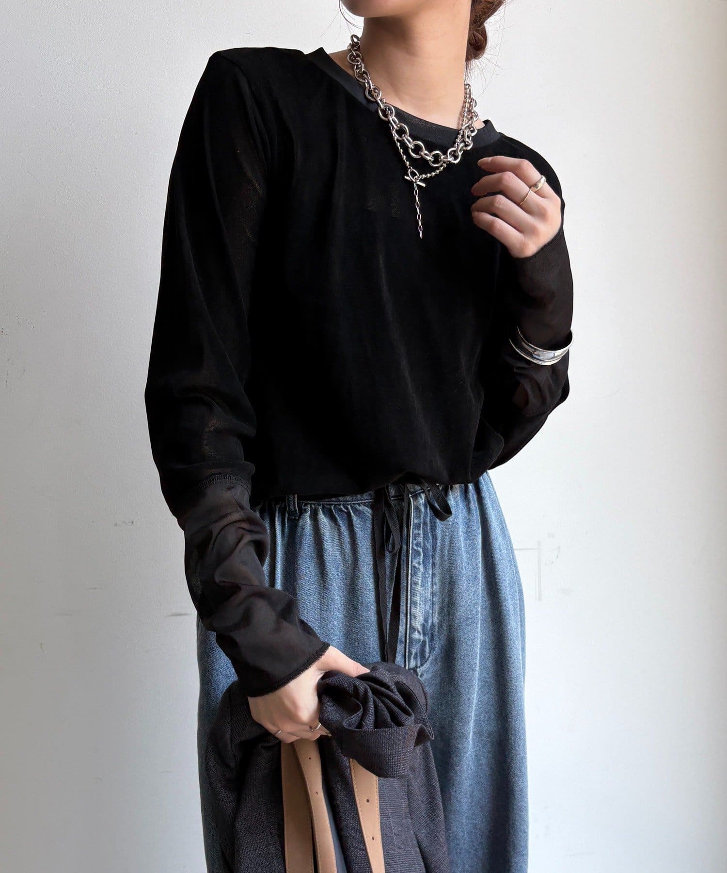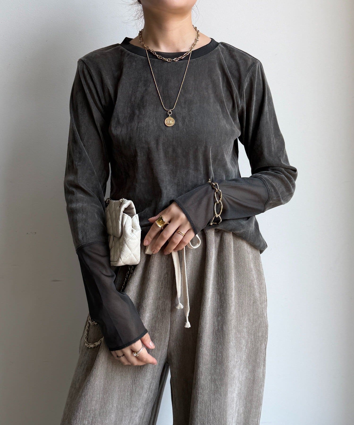 切替デザインでメリハリをつけてくれて、レイヤードスタイルもお洒落に!