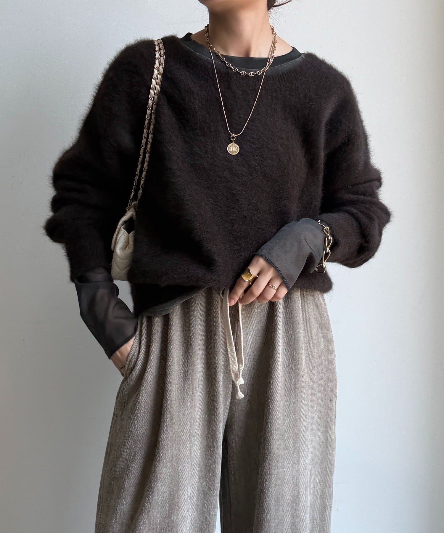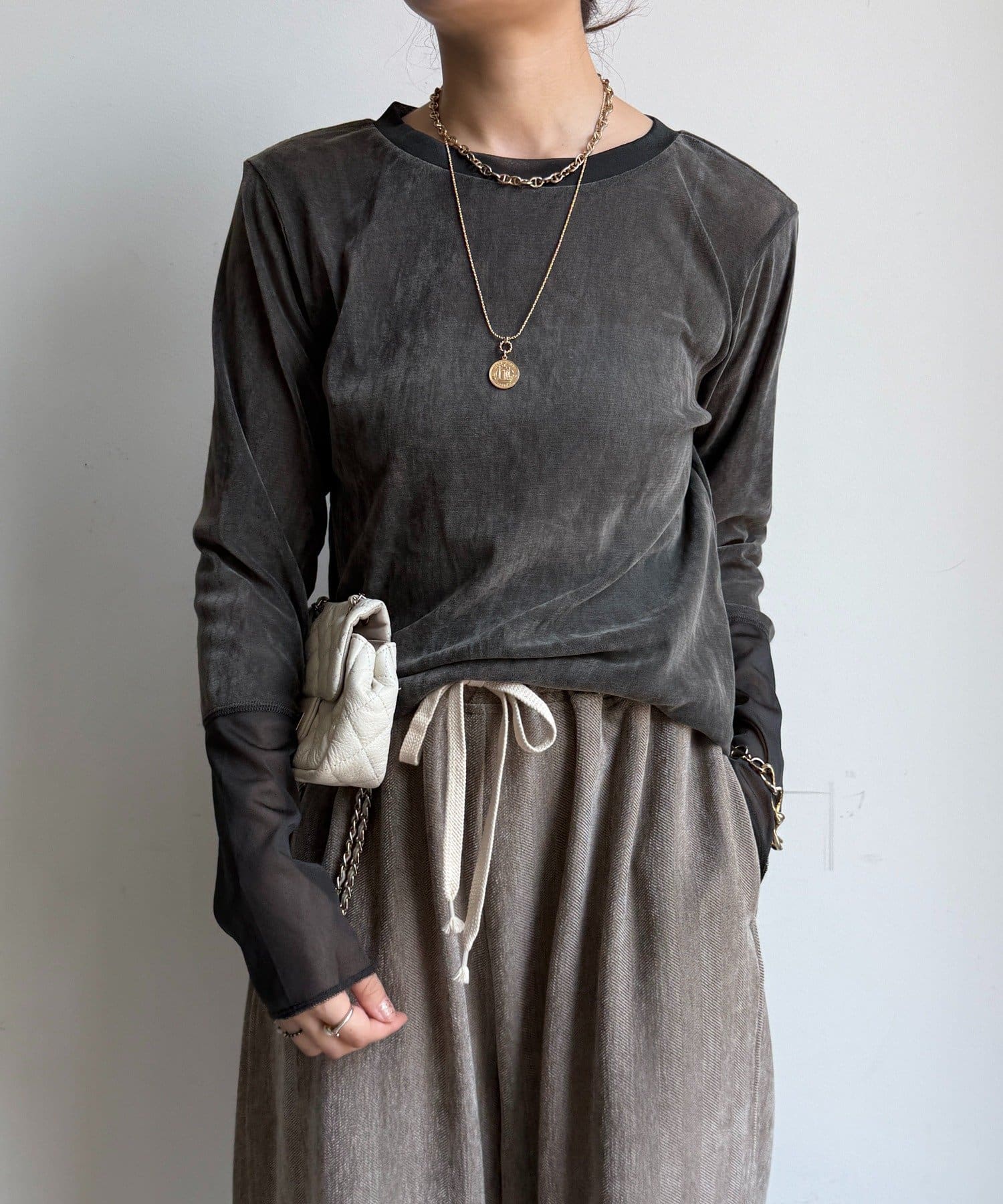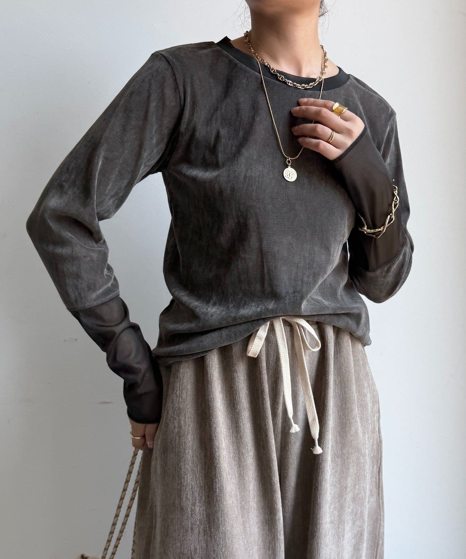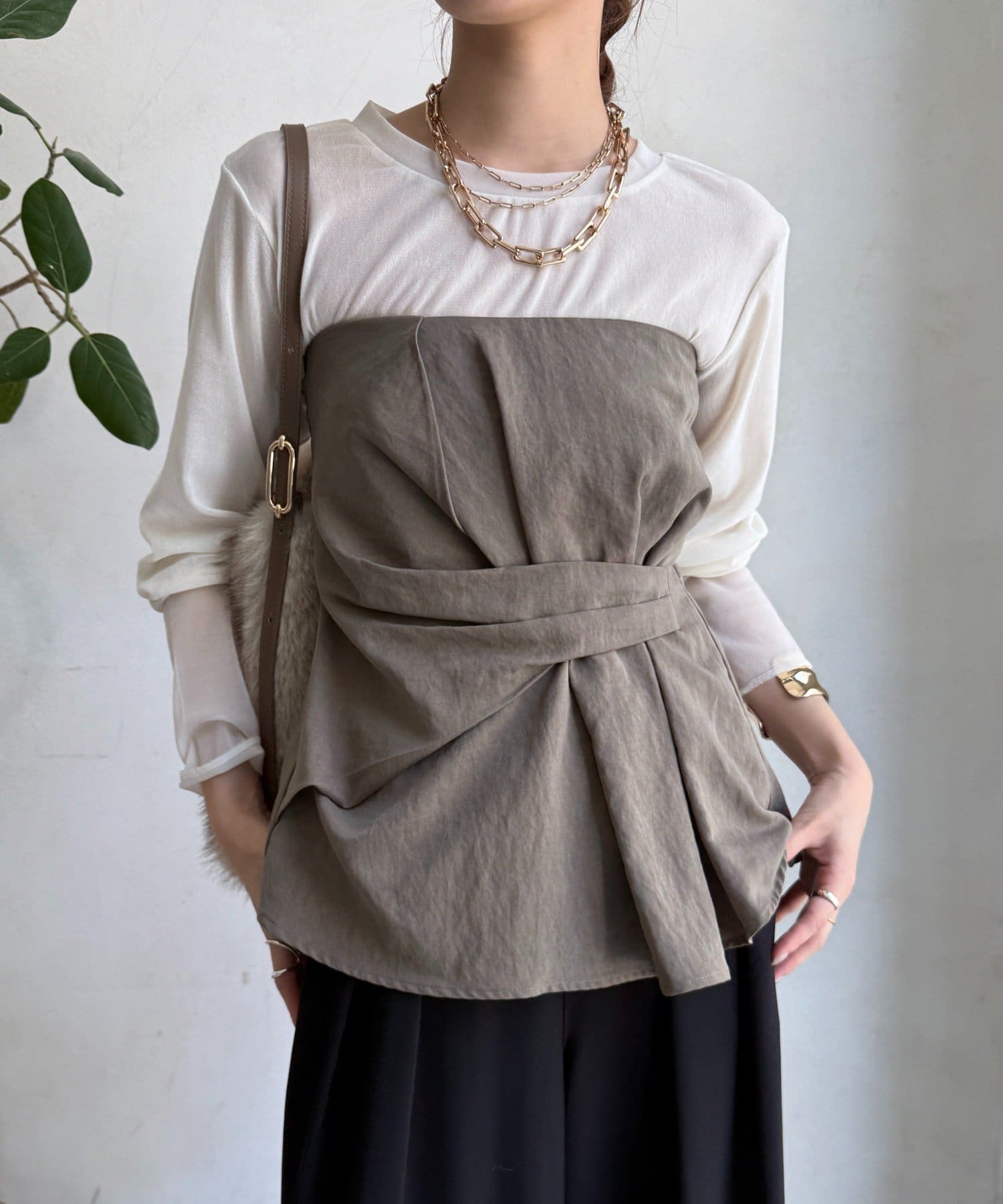 切替デザインでメリハリをつけてくれて、レイヤードスタイルもお洒落に!