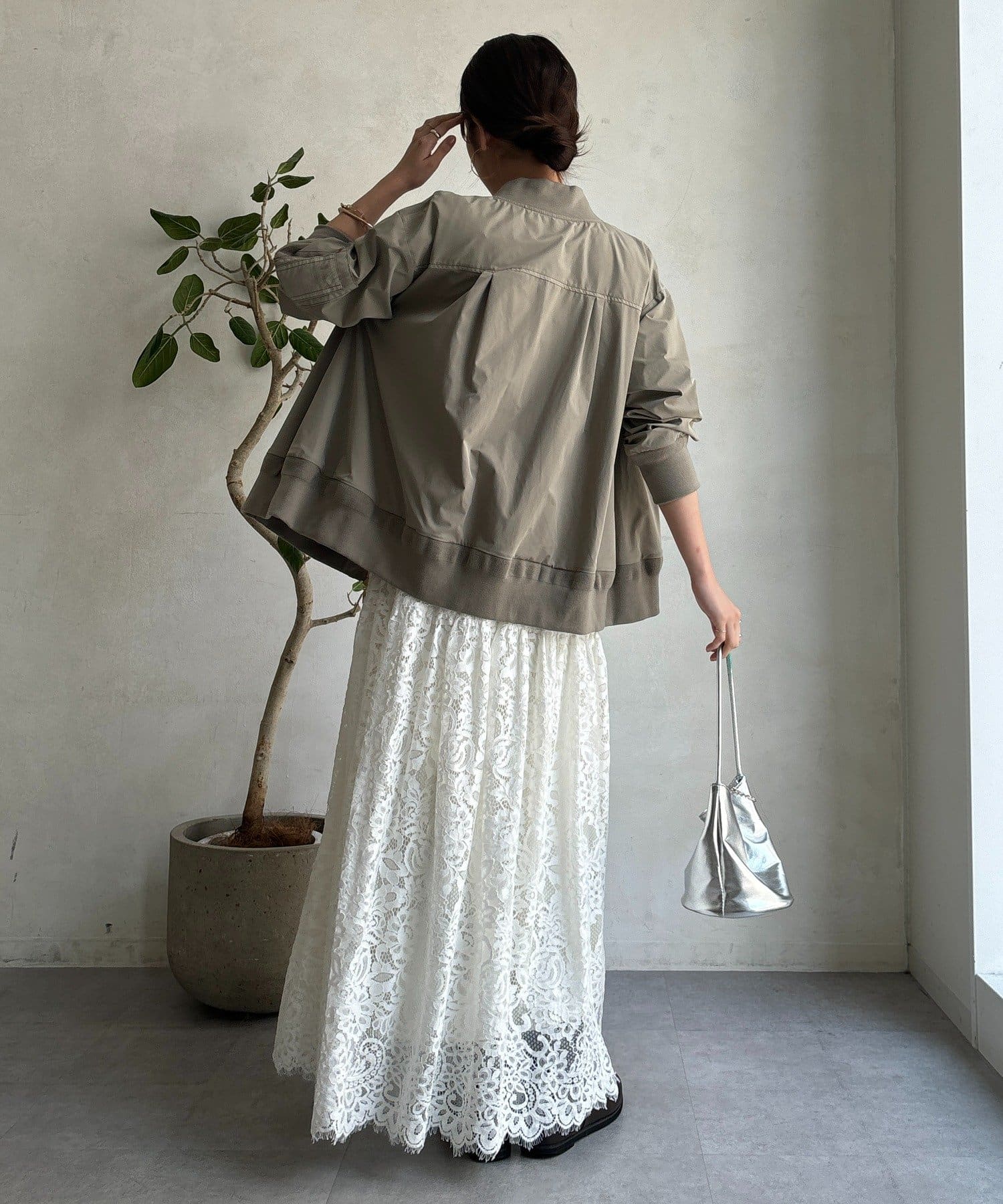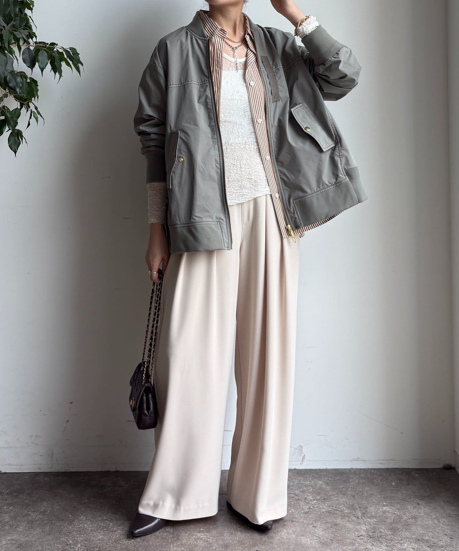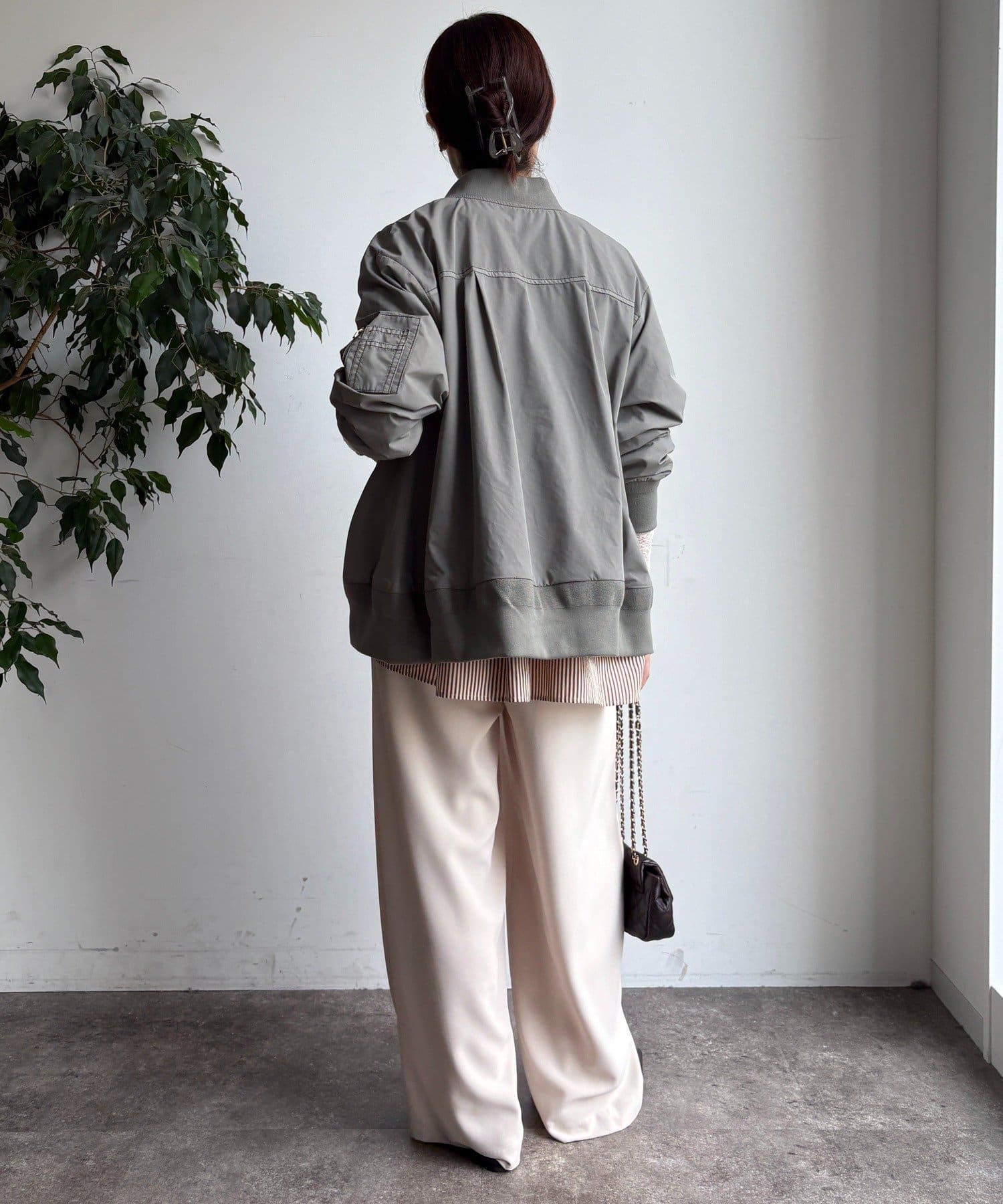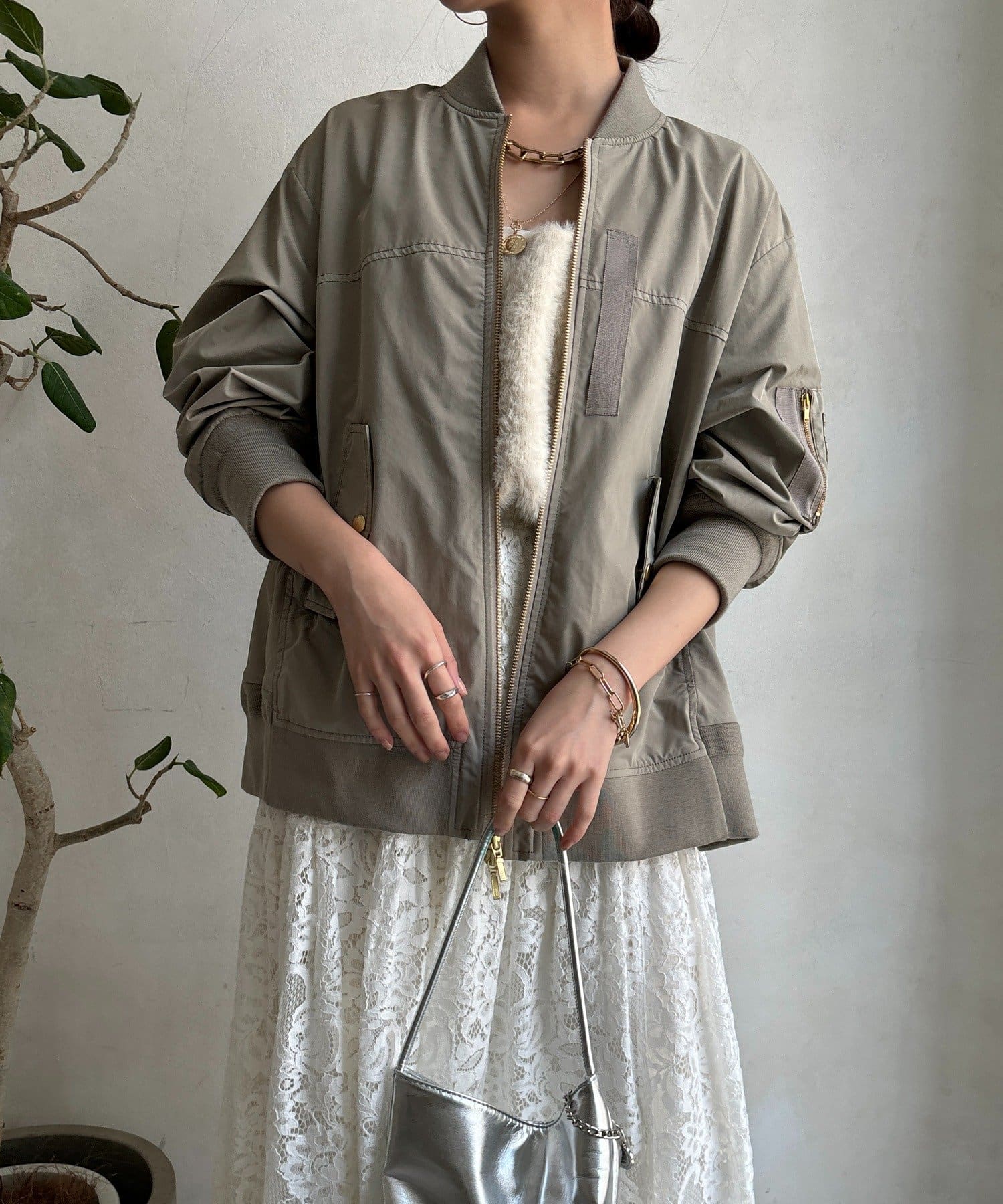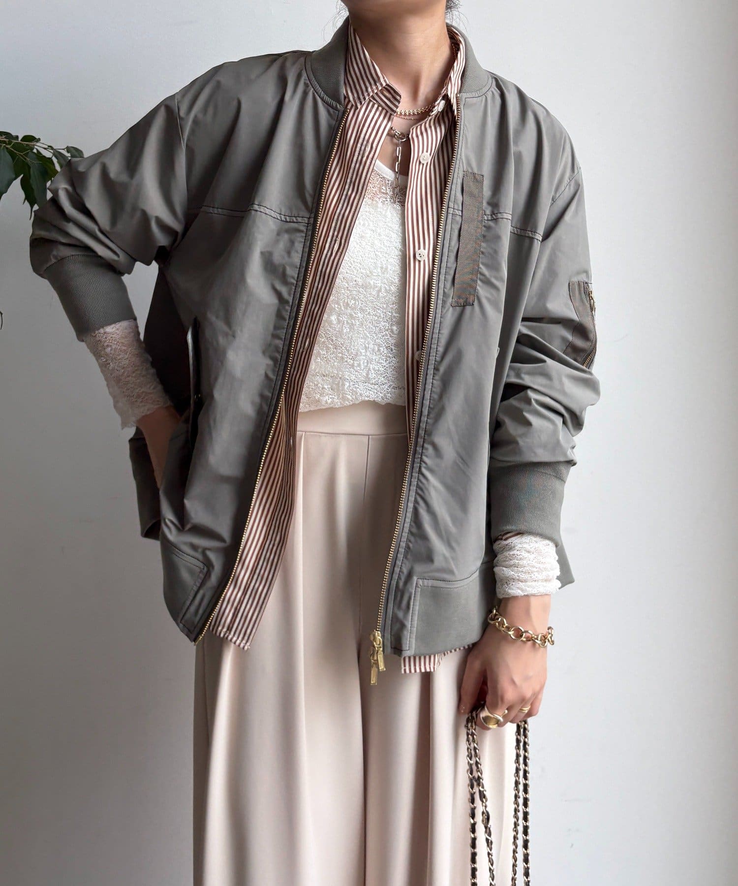 店舗で試着して気に入り購入しました。スカートやワイドパンツ とも合わせやすい丈感で、ダブルジップなのもアレンジしやすくて嬉しいです。カーキと言っても、淡い色合いなのでミリタリーっぽくならず、春でも使えそう!