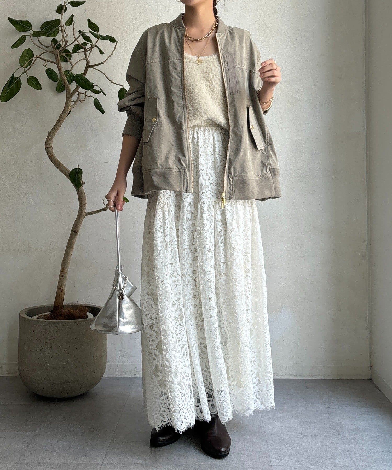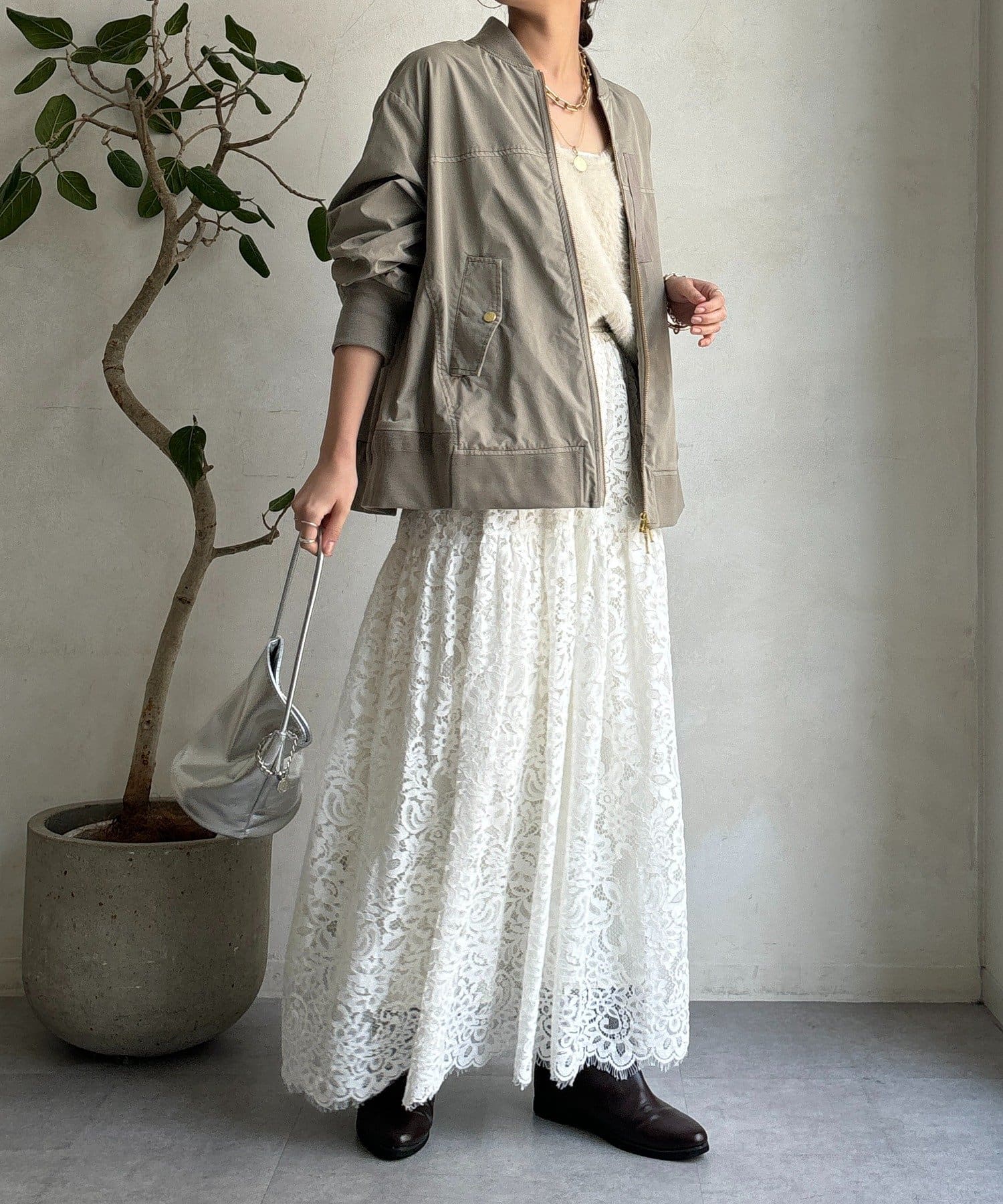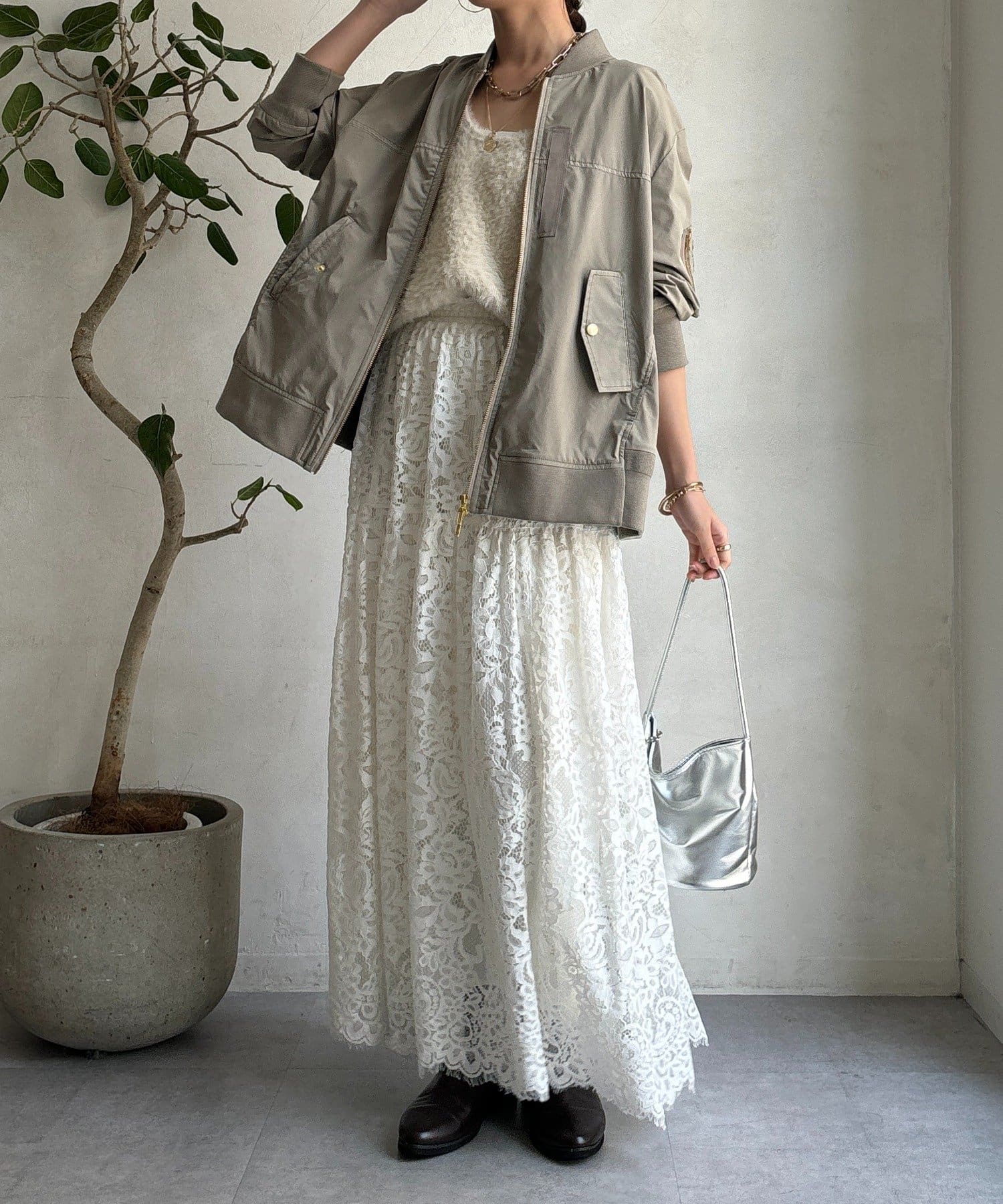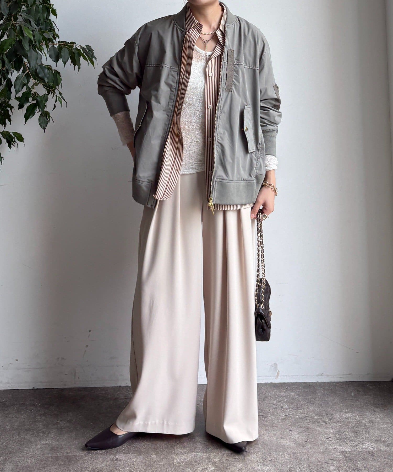 店舗で試着して気に入り購入しました。スカートやワイドパンツ とも合わせやすい丈感で、ダブルジップなのもアレンジしやすくて嬉しいです。カーキと言っても、淡い色合いなのでミリタリーっぽくならず、春でも使えそう!