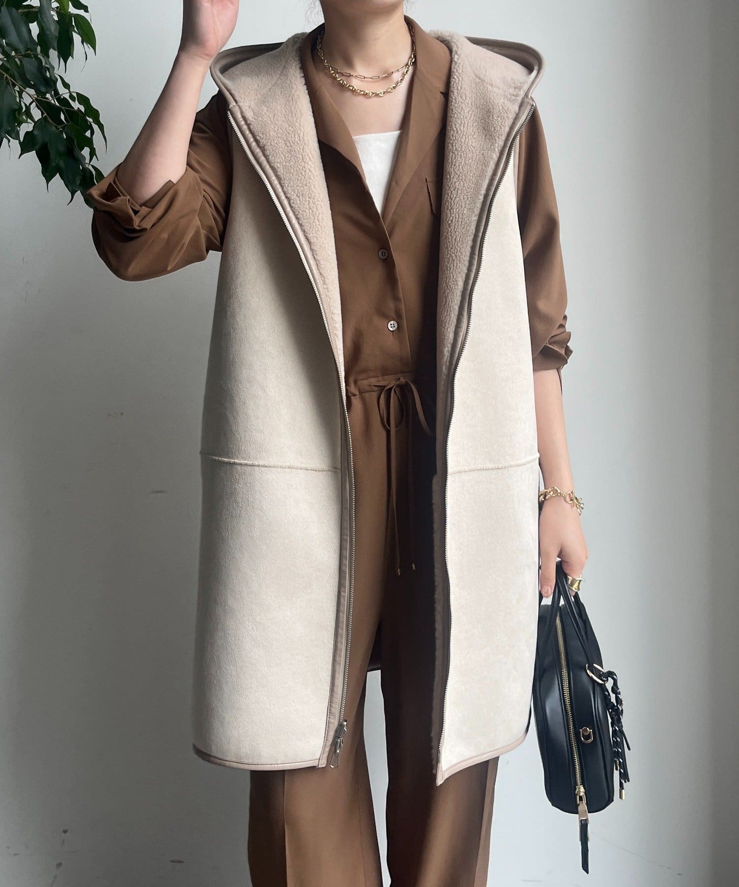 気分やスタイリングによってボアとフェイクスエードどちらも楽しめます!
