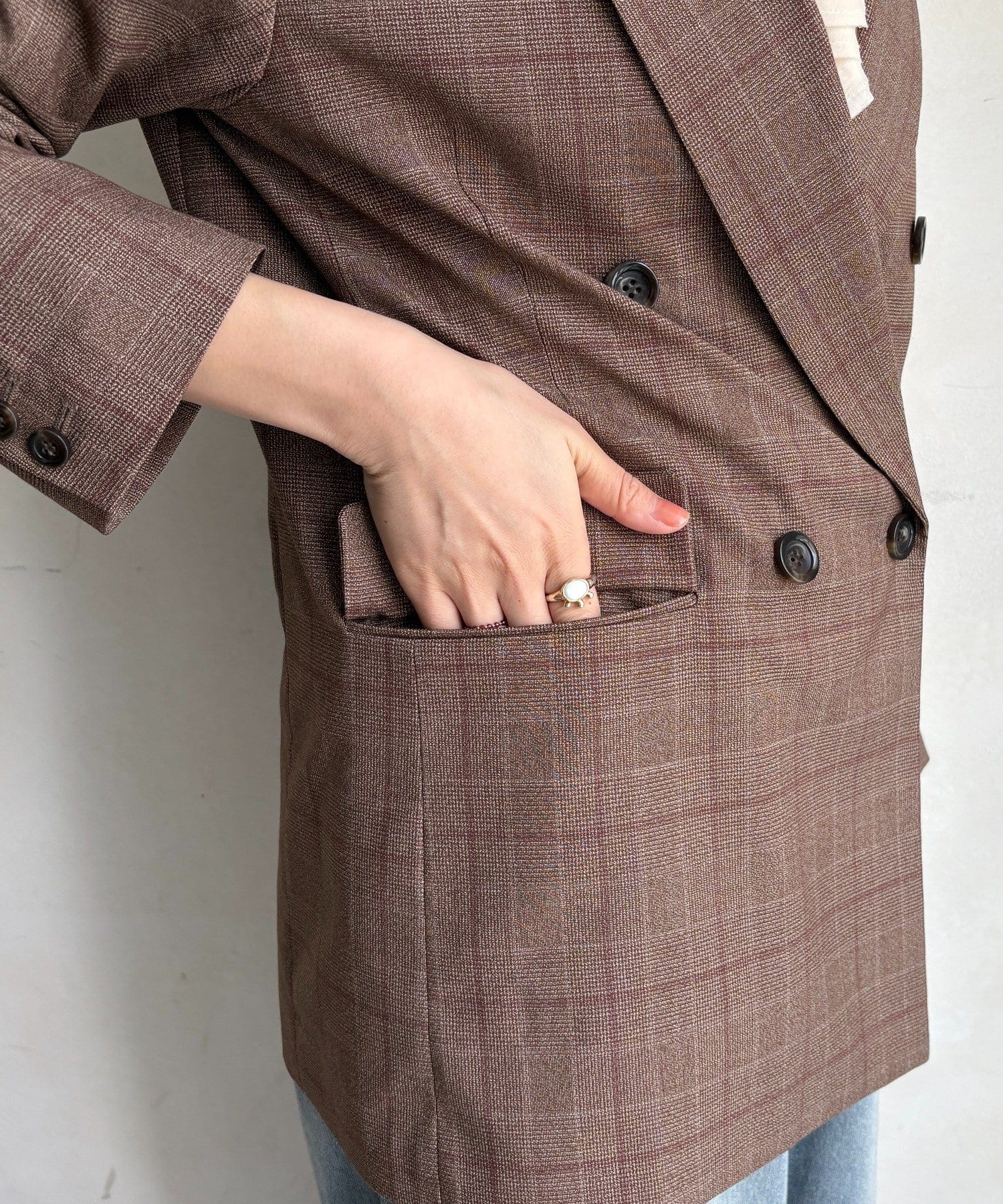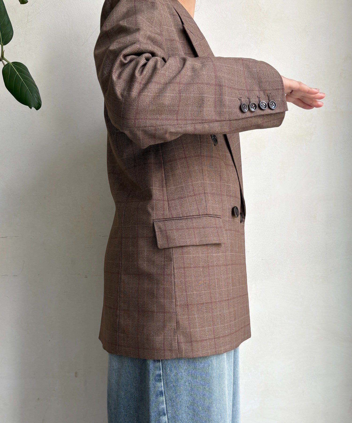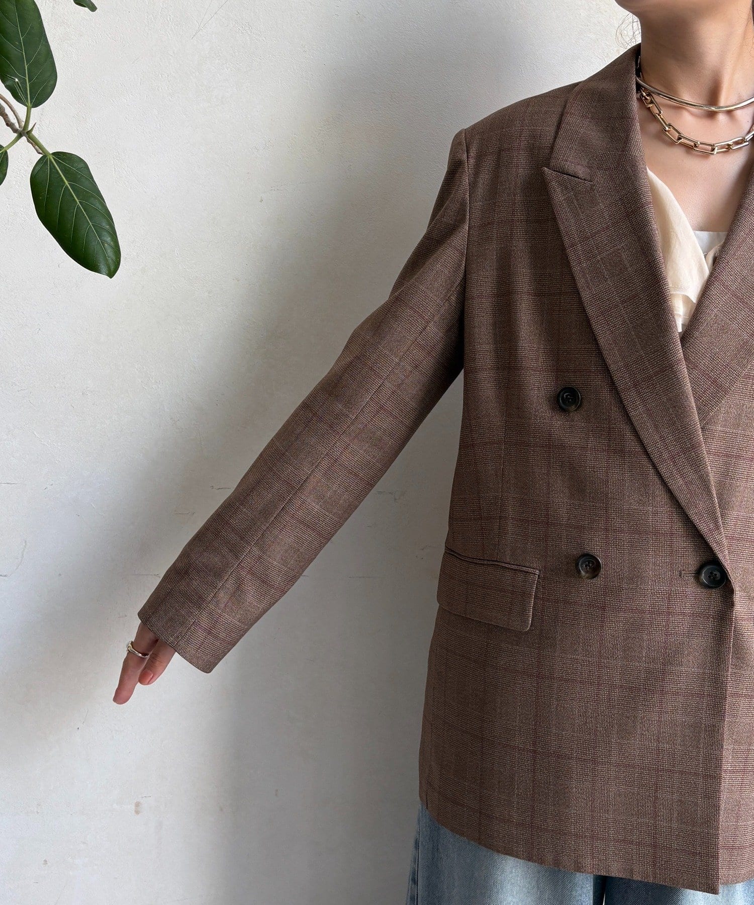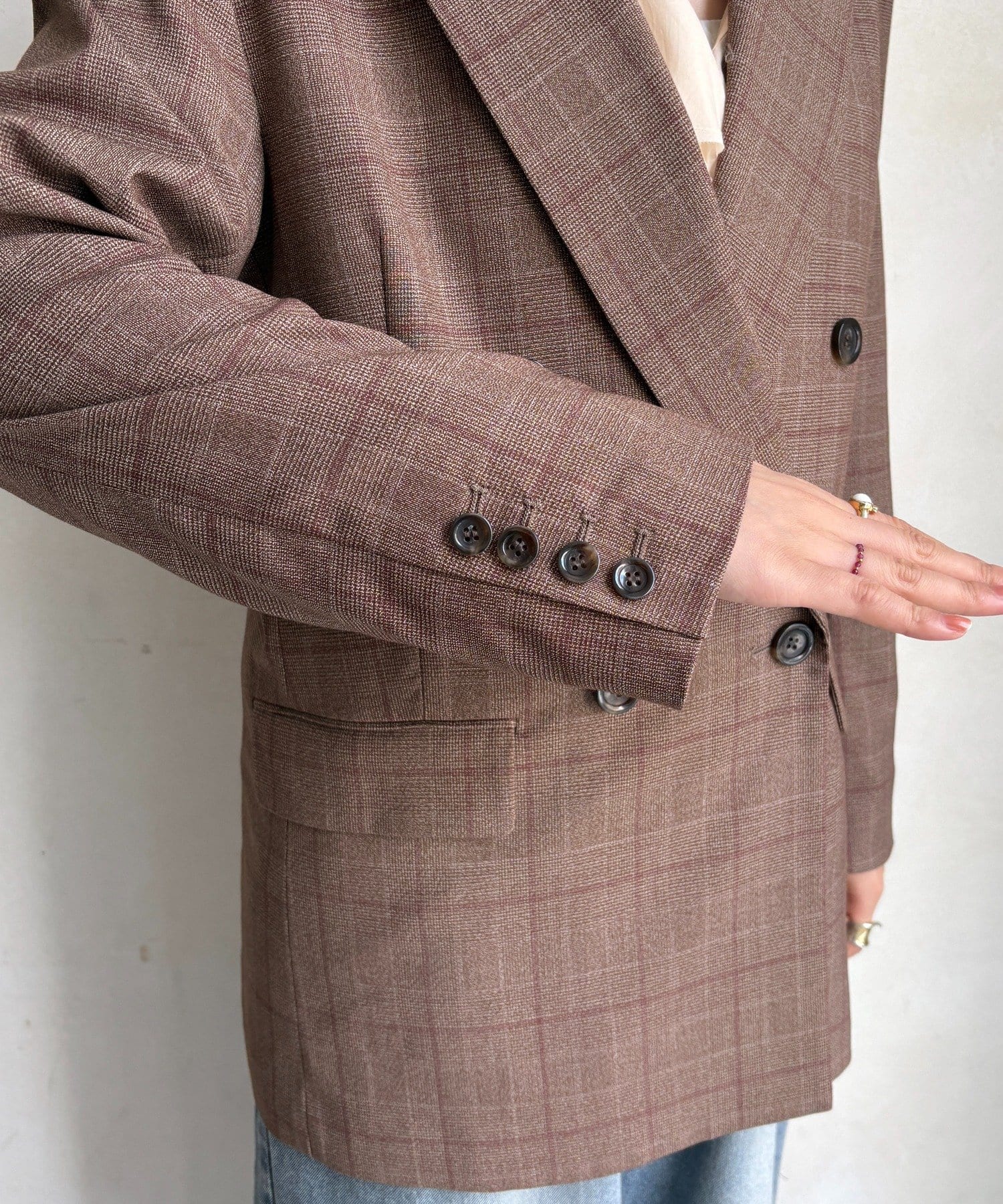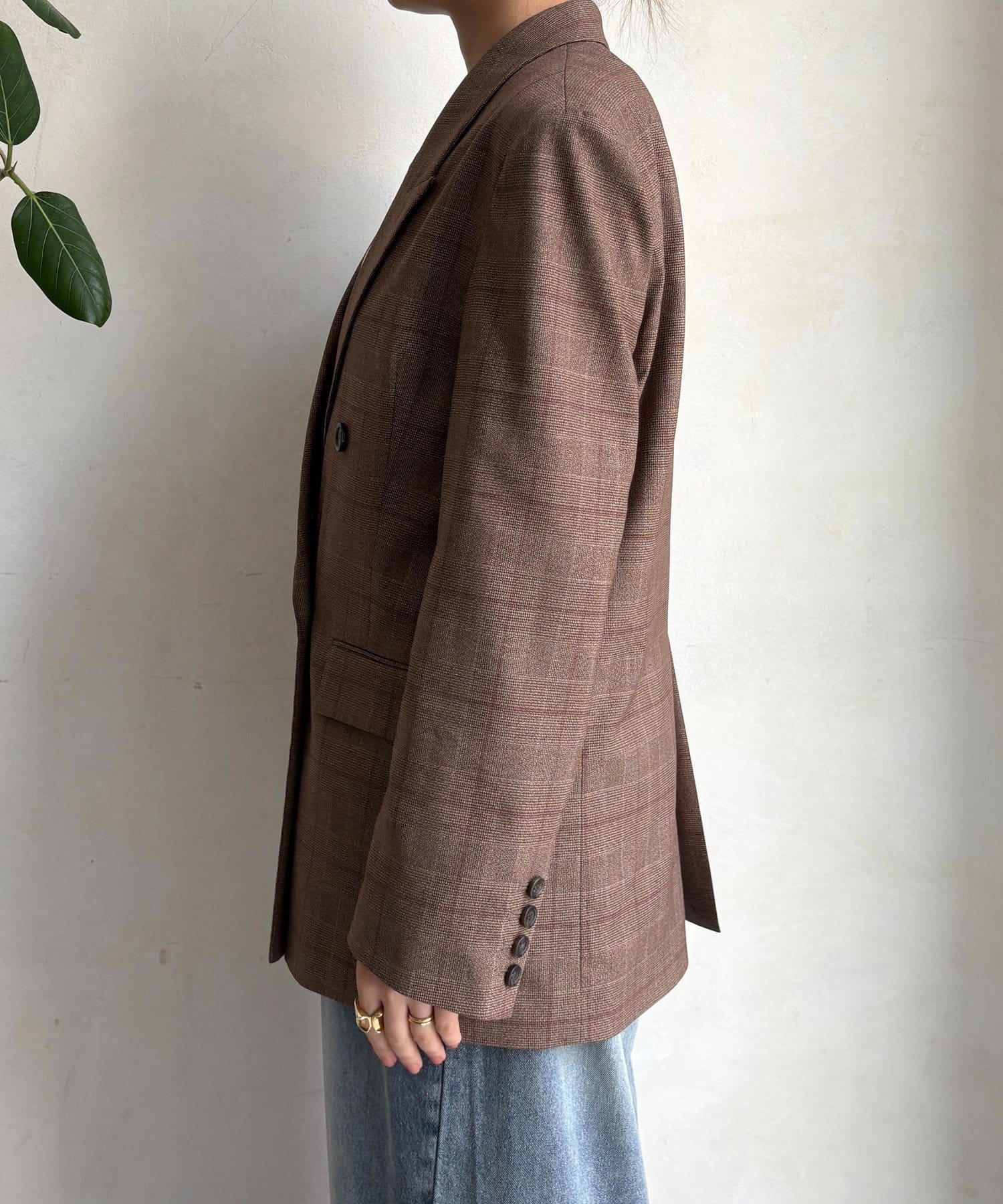 肩パッドチェックダブルジャケット
