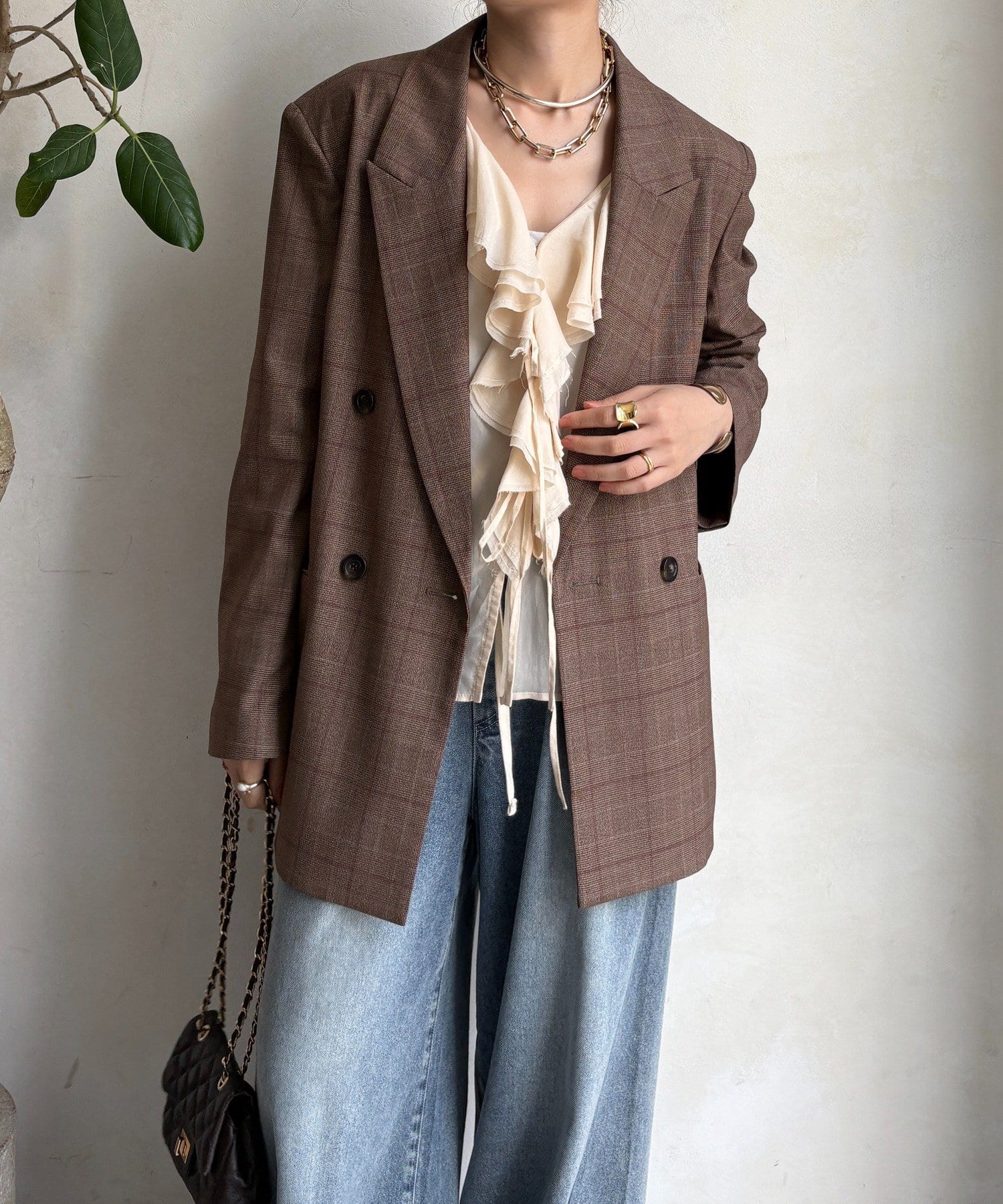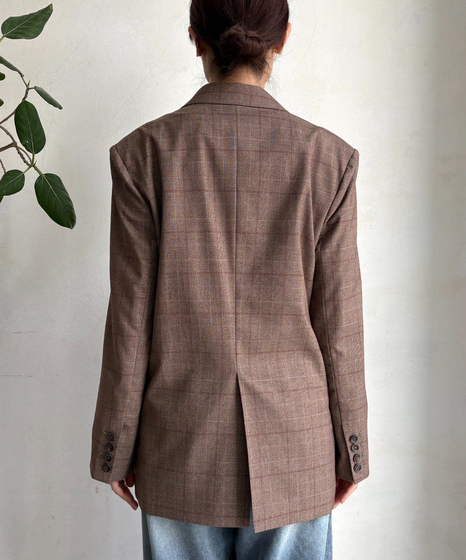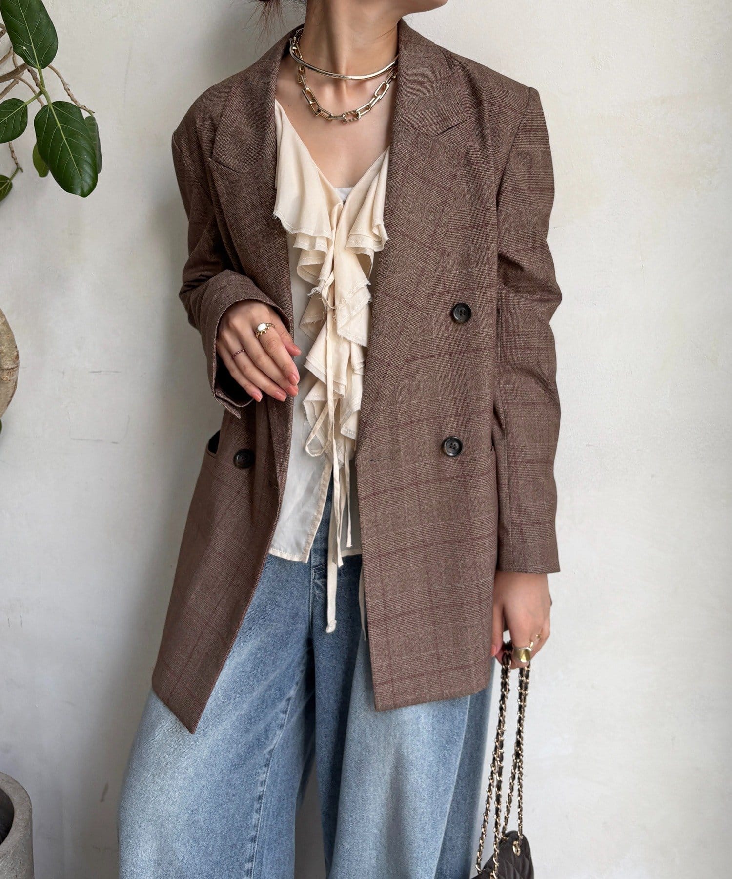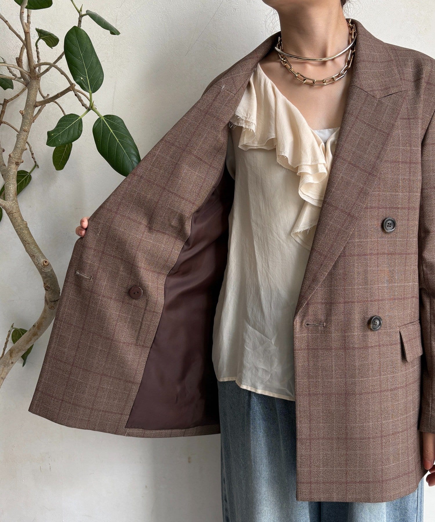 肩パッドチェックダブルジャケット