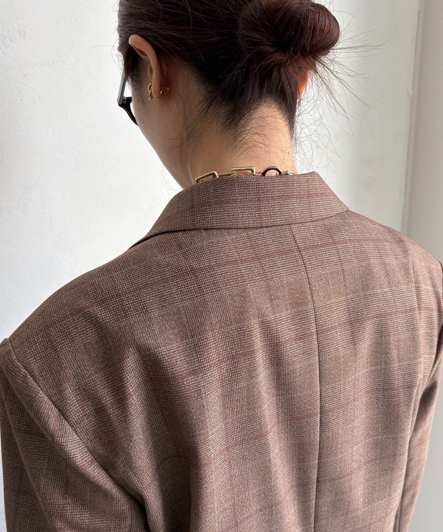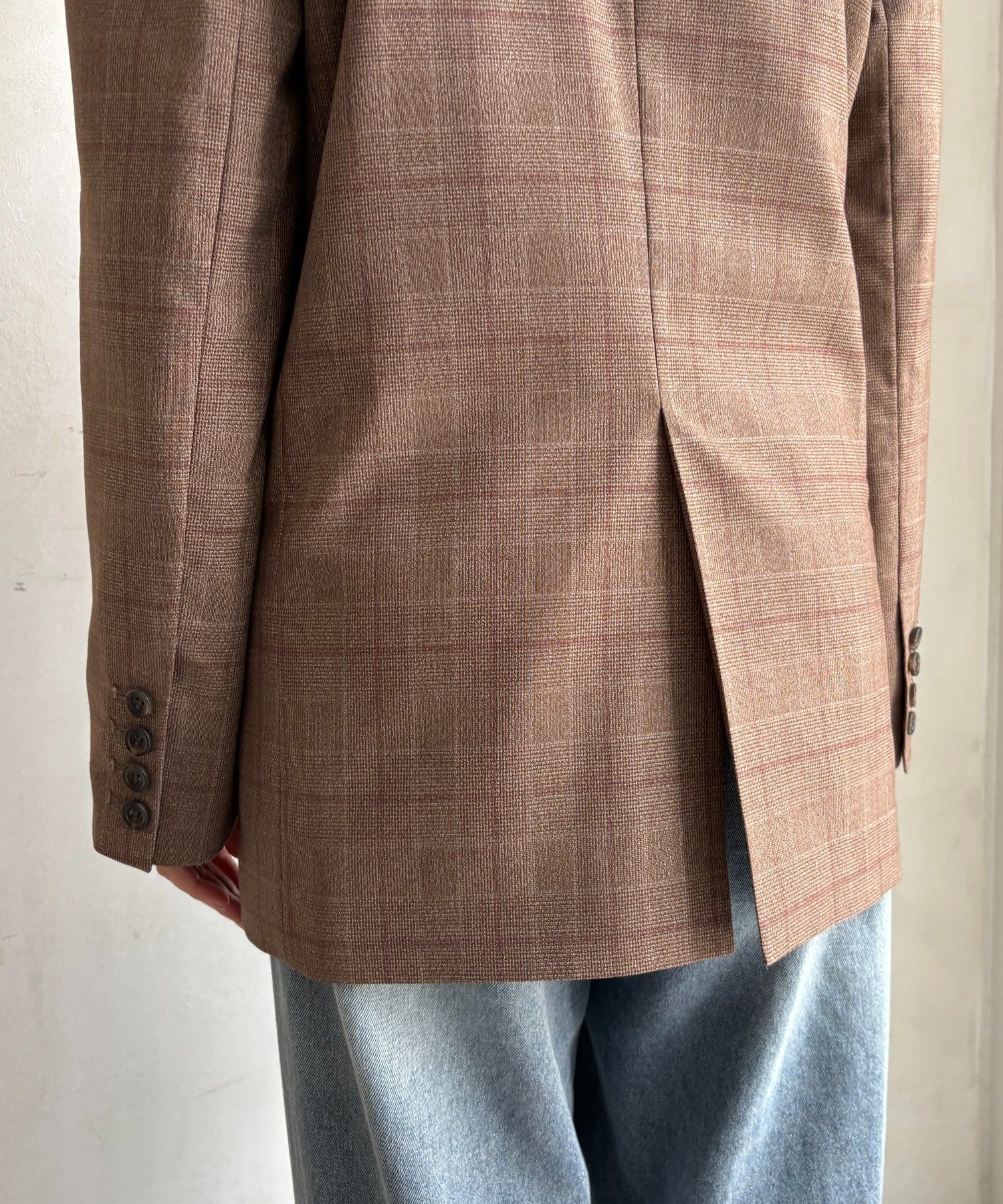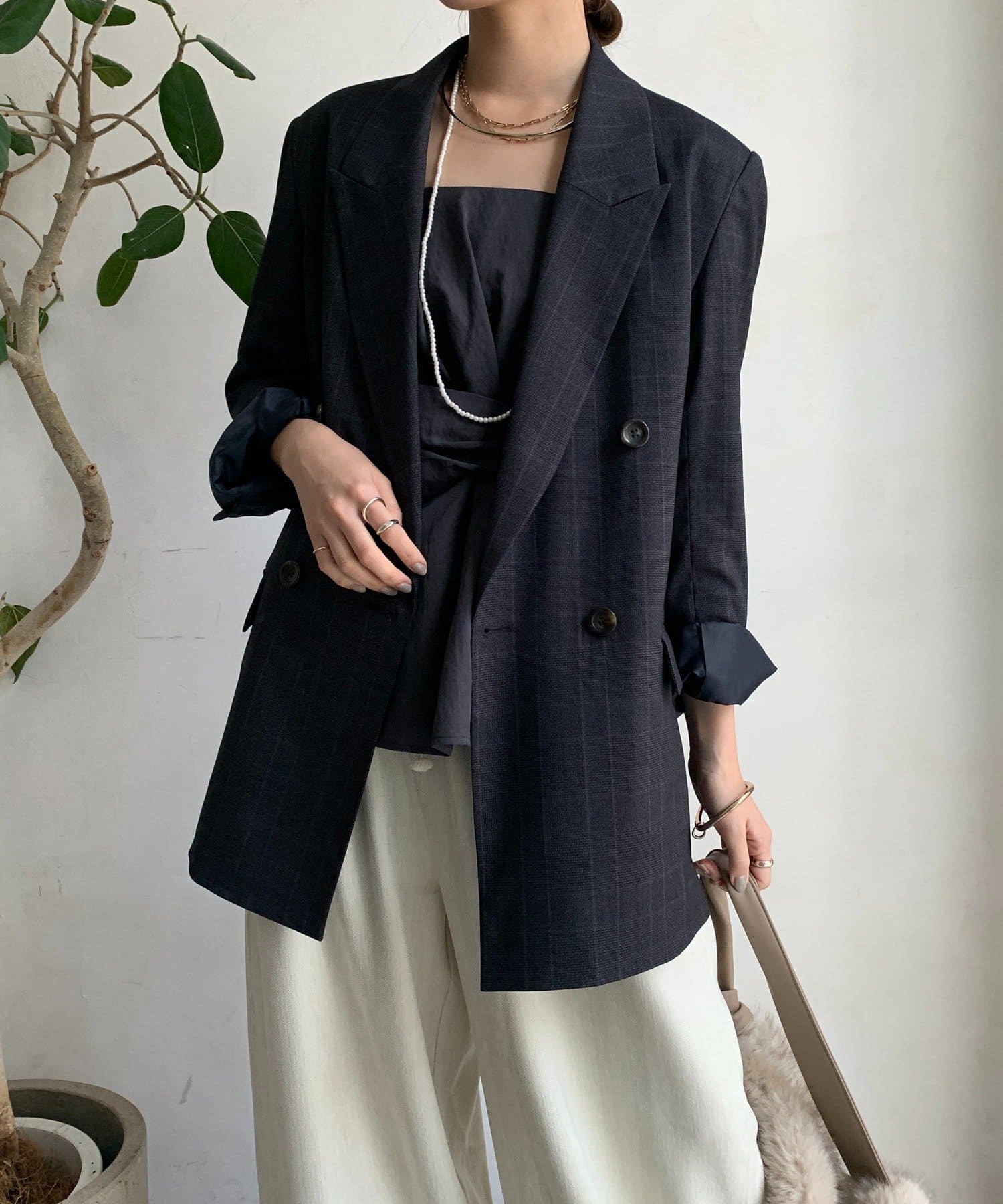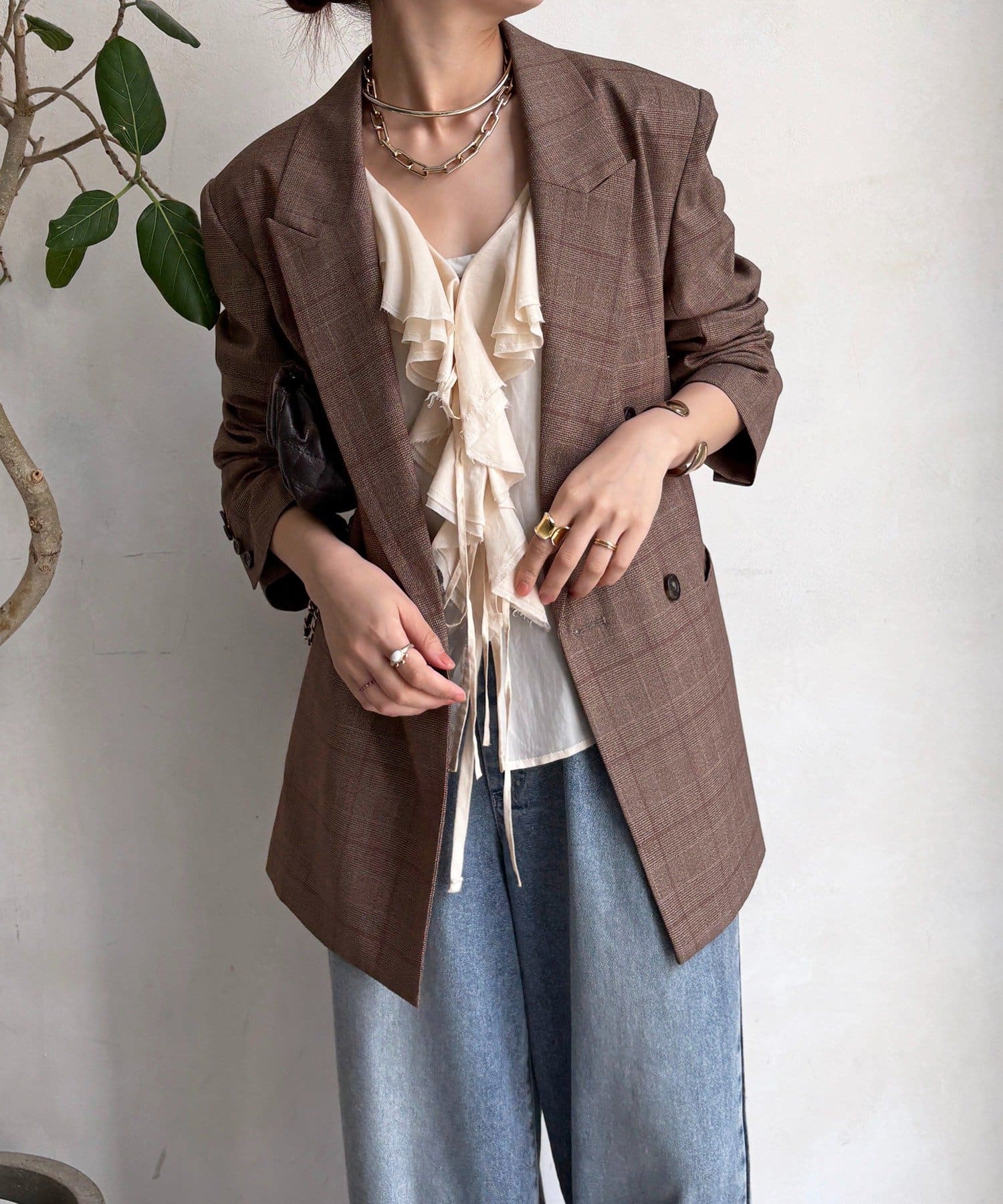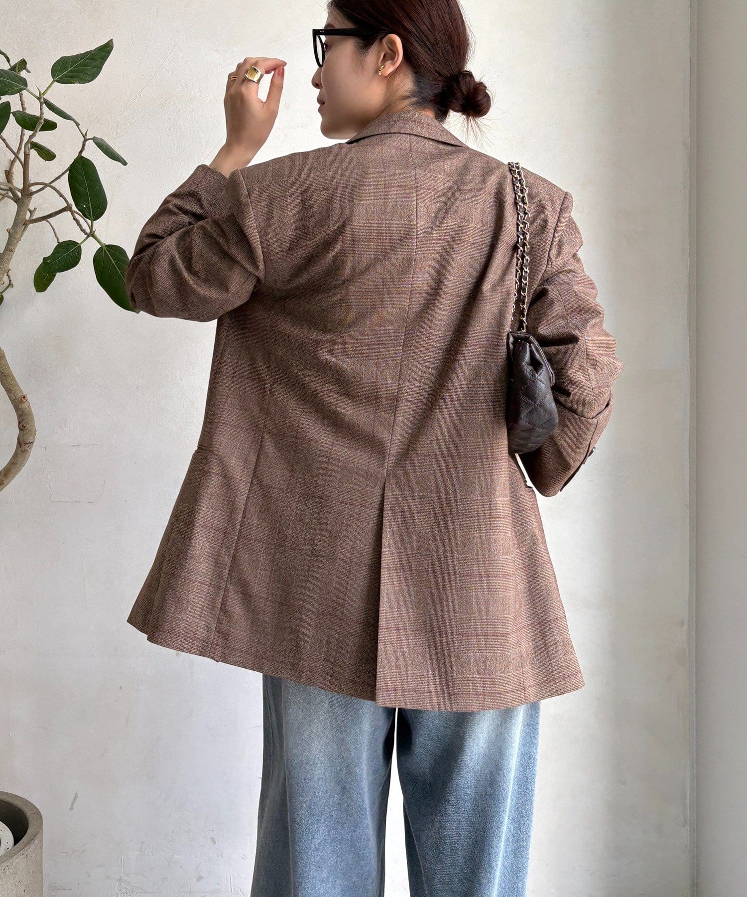 肩パッドチェックダブルジャケット