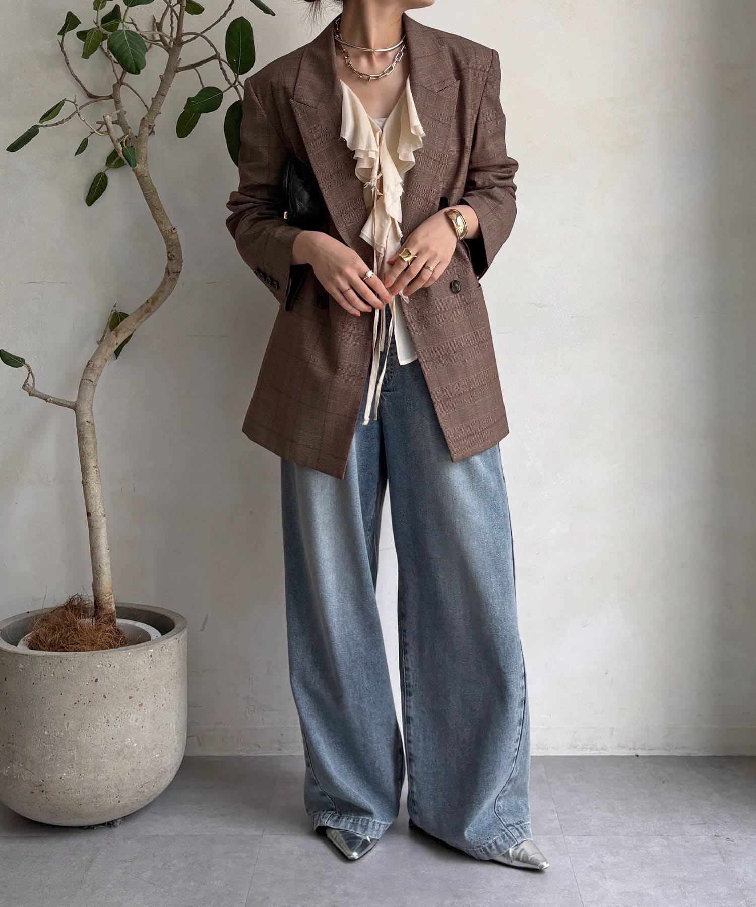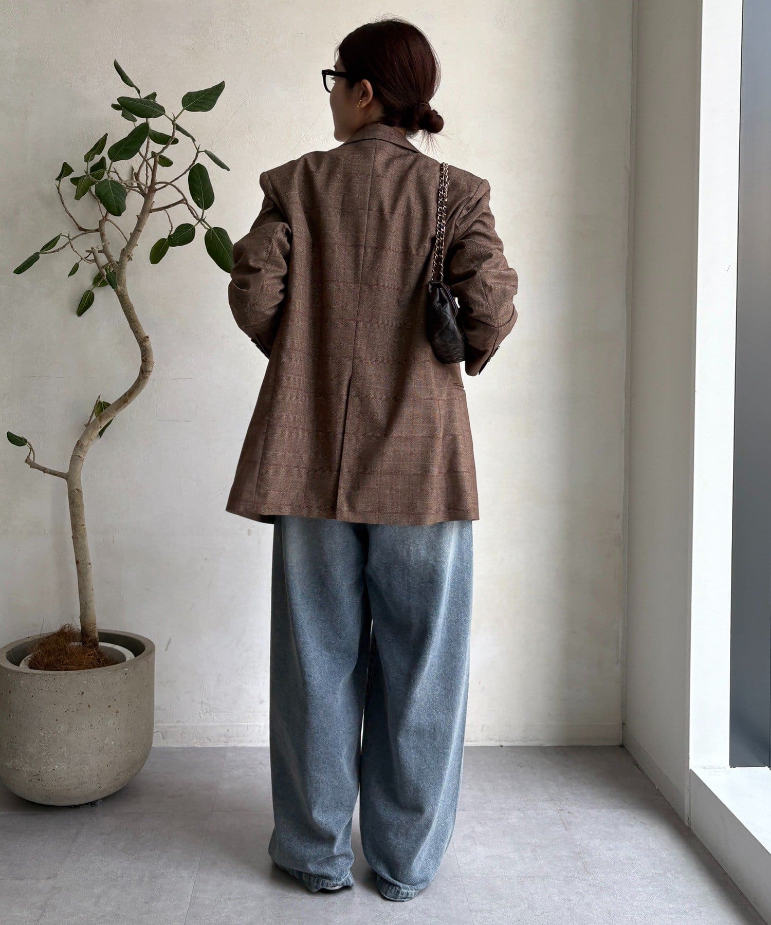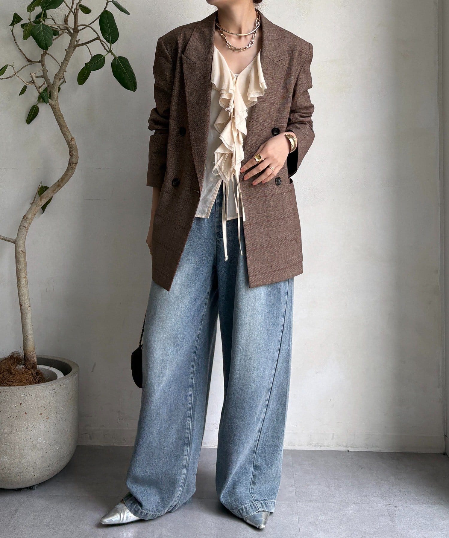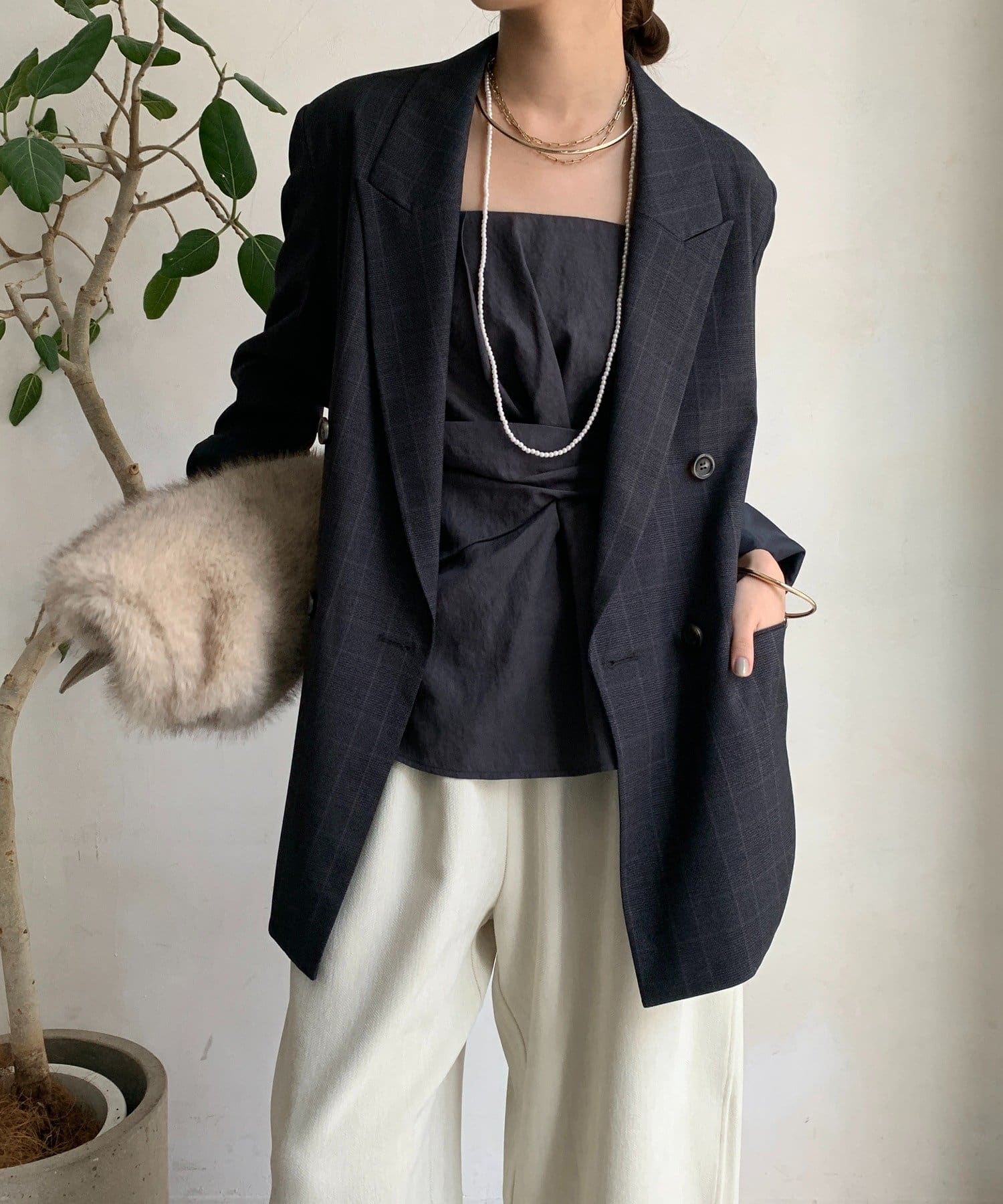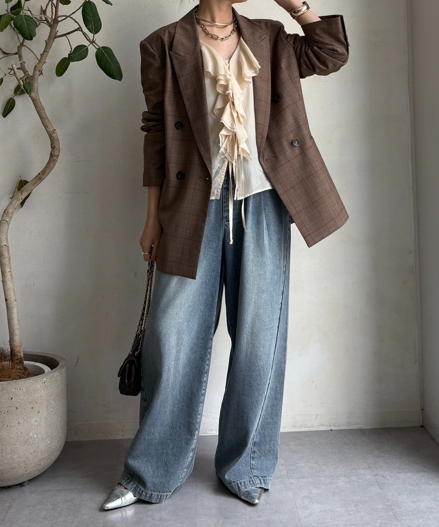 肩パッドチェックダブルジャケット