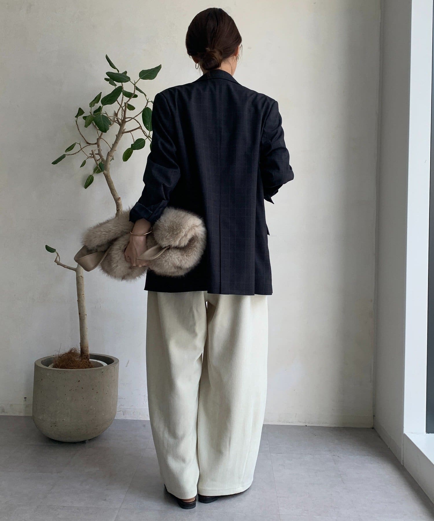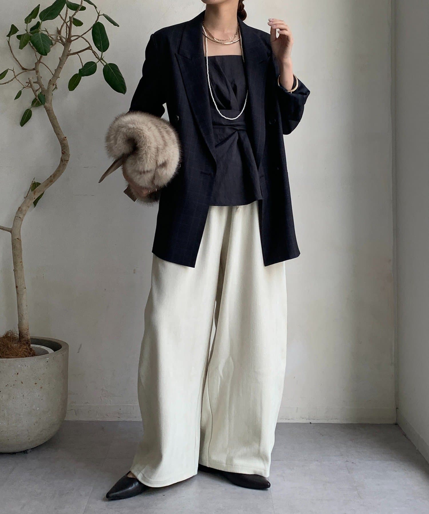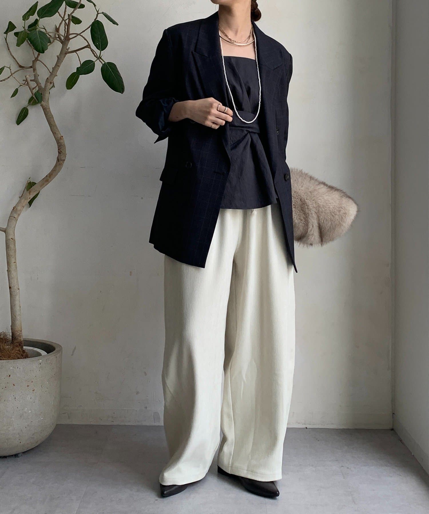 あえて肩パッドを入れることで、上半身のラインがキレイにみえ、スタイルアップも!