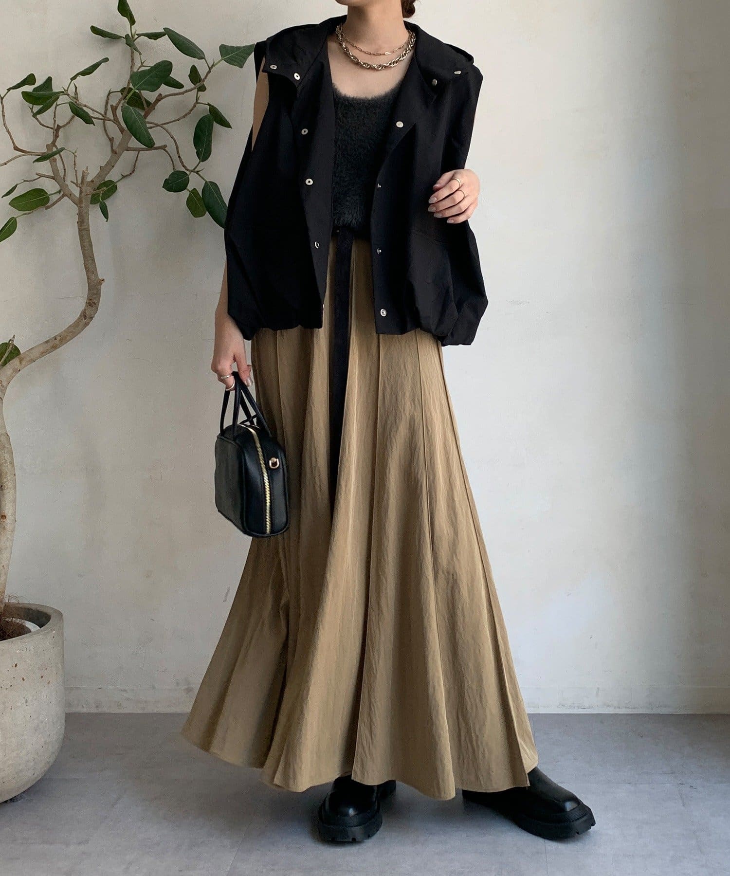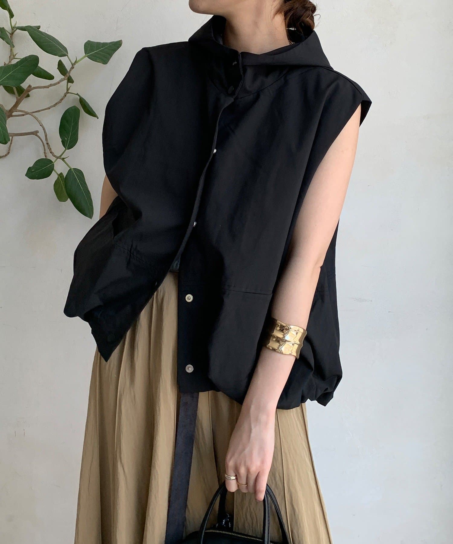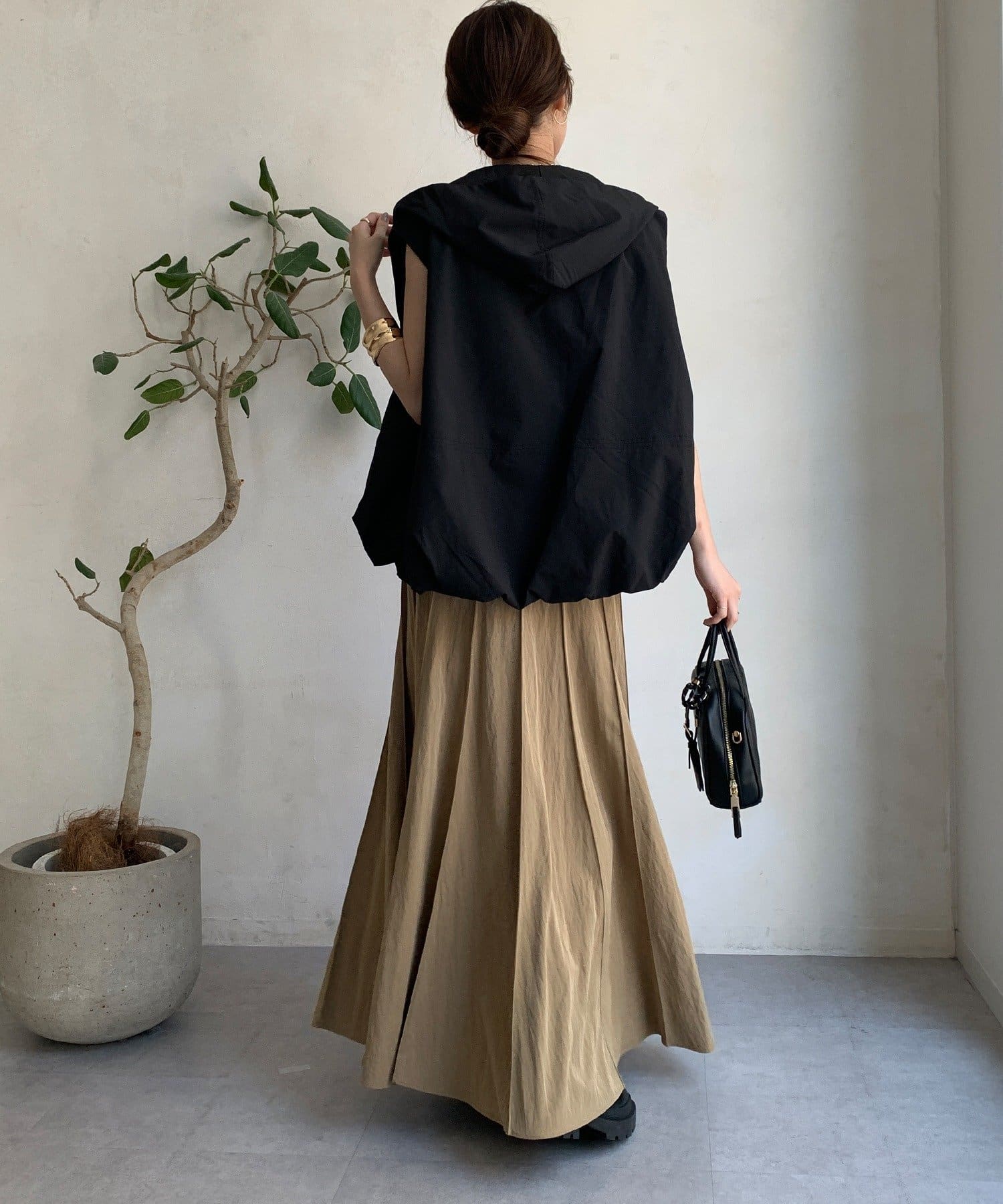 ノースリーブデザインなので、様々なアイテムとのレイヤードを楽しめます。